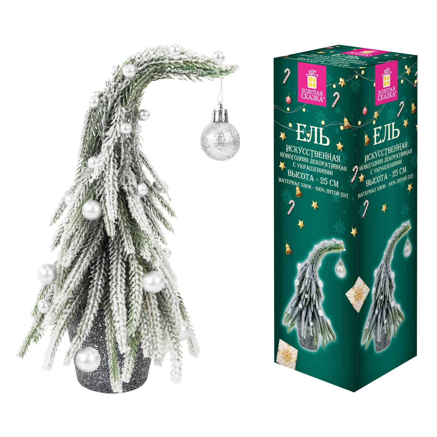 Ель новогодняя искусственная 25 см, "Елка-гном", заснеженная с декором, литой ПЭТ, ЗОЛОТАЯ СКАЗКА Код товара: 592515 812,5 ₽ Купить Производитель:ЗОЛОТАЯ СКАЗКА Елка-гном ЗОЛОТАЯ СКАЗКА станет прекрасным украшением для дома или офиса. Елка преобразит пространство и подарит ощущение праздника. Заснеженная ель высотой 25 см представляет собой конструкцию из пластикового каркаса и закрепленных к нему ветвей. Материал – 100% литой ПЭТ. Цвет хвои – зелёный. Иголки украшены искусственным белым снегом и декоративными пенопластовыми шариками диаметром 1-1,5 см и пластиковым шаром диаметром 2,5 см. Ель имеет оригинальную форму, напоминающую шапочку гномика. Подставка выполнена в виде пластикового горшочка. Высота ели – 25 см. Тип крепления ветвей к стволу – примотка. Такой тип крепления подразумевает, что ветви уже прикреплены к стволу и после покупки их необходимо самостоятельно расправить, чтобы ель приобрела нужную форму.Производство: КитайВысота: 0.25 мСерия: литой ПЭТДлина игл: 0.7 смДиаметр нижнего яруса: 0.14 мЦвет хвои: зеленый заснеженныйДекор: искусственный белый снег, пластиковый шар 2,5 см, серебряные пенопластовые шарики 1-1,5 смМатериал хвои: литой ПЭТМатериал подставки: пластикВес: 315 грРазмер упаковки: 10.1 × 30.2 × 10.1 смОбъём: 0.0038 м3Промежуточная упаковка: 18 штТранспортная упаковка: 18 штШтрих-код: 4606224504018 Файлы Сертификат-1.jpg Сертификат-2.jpg Сертификат-3.jpg Сертификат-4.jpg Сертификат-5.jpg Сертификат-6.jpg Сертификат-7.jpg Сертификат-8.jpg Сертификат-9.jpg Сертификат-10.jpg Сертификат-11.jpg Сертификат-12.jpg Сертификат-13.jpg Сертификат-14.jpg Сертификат-15.jpg Сертификат-16.jpg Сертификат-17.jpg Сертификат-18.jpg Сертификат-19.jpg Сертификат-20.jpg Сертификат-21.jpg Сертификат-22.jpg Сертификат-23.jpg Сертификат-24.jpg Сертификат-25.jpg Сертификат-26.jpg