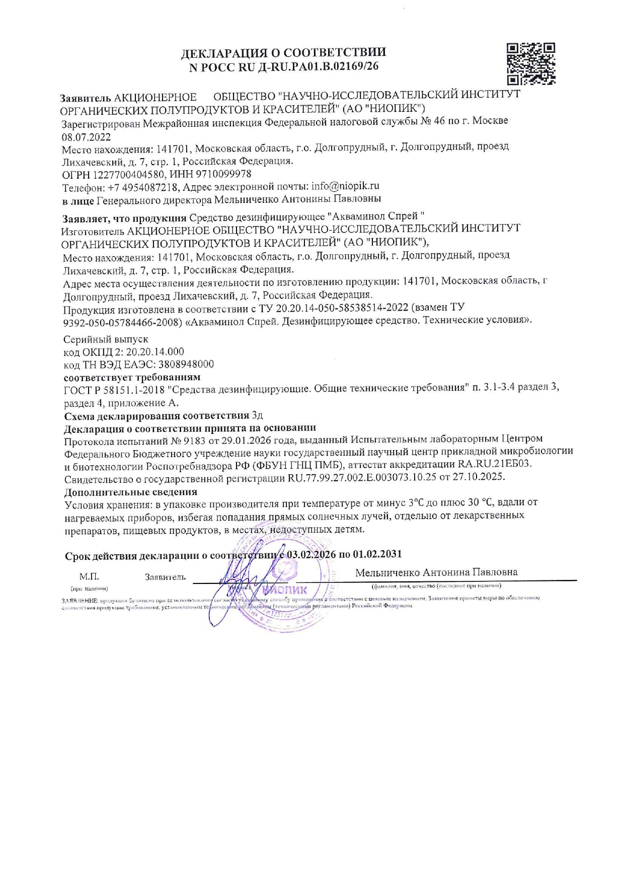 Дезинфицирующее средство АКВАМИНОЛ-СПРЕЙ предназначено для экстренной и эффективной дезинфекции:
