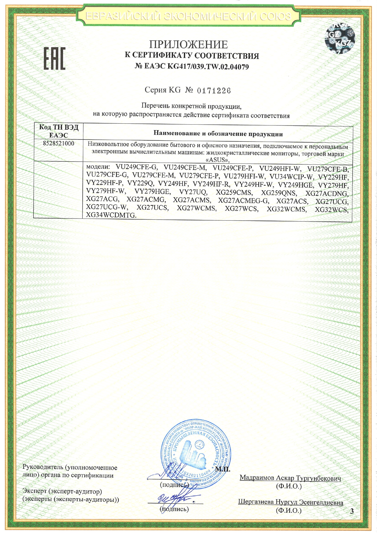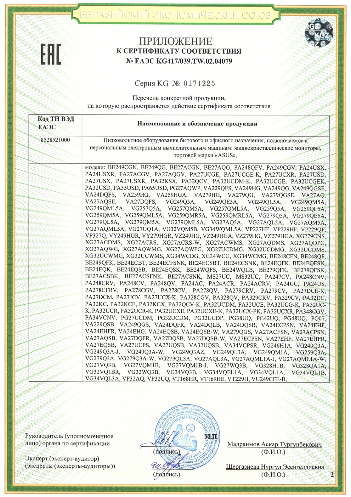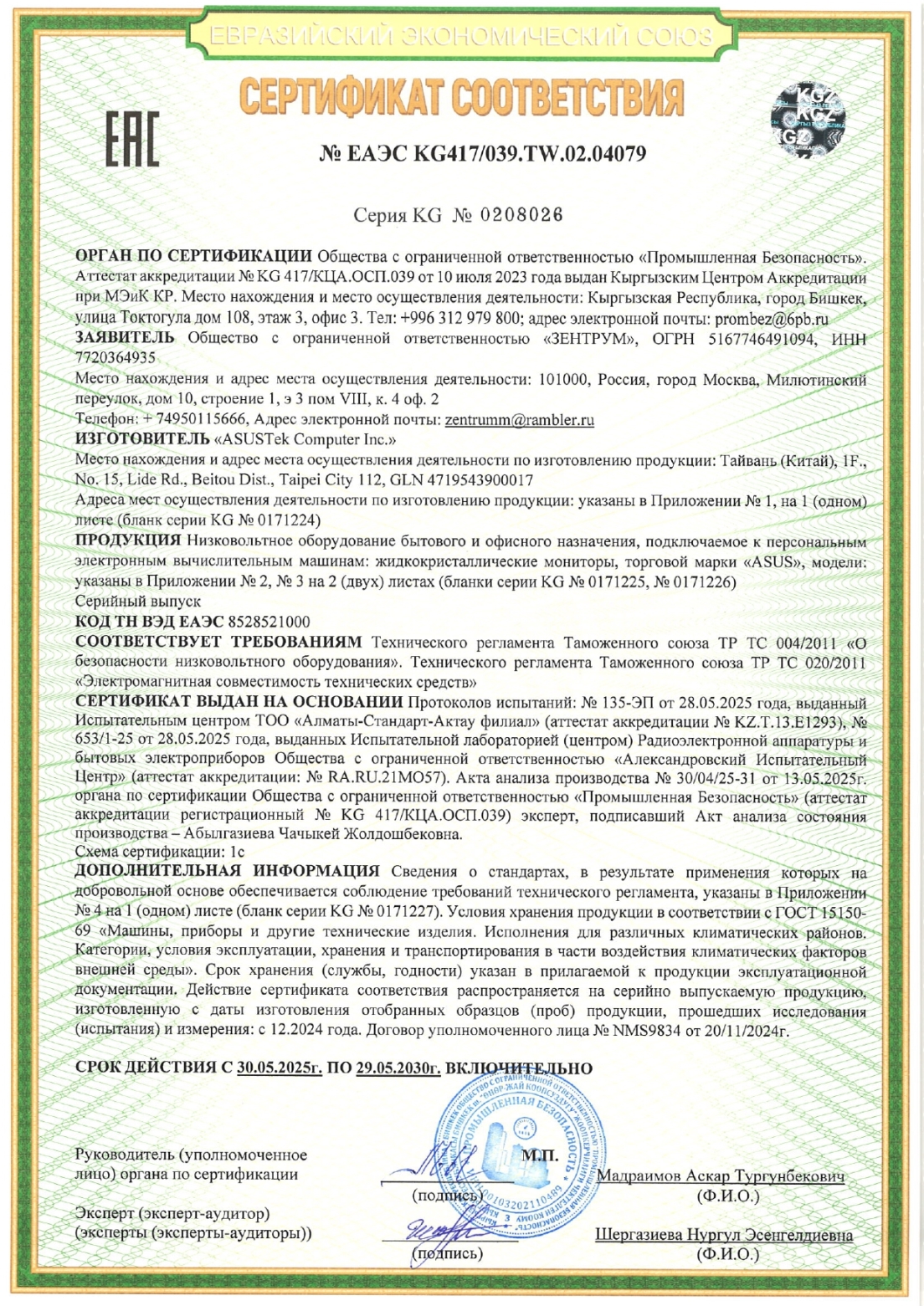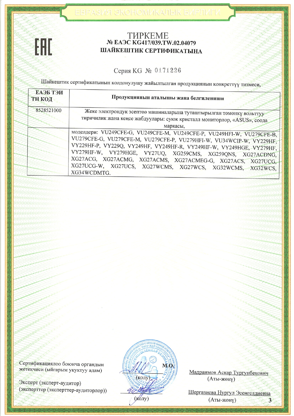Монитор ASUS VA27DQSB 27" (68,6 см)/1920x1080/16:9/IPS/5ms/250cd/DP/HDMI/VGA/Type-A/черный Код товара: 355096 21 301,82 ₽ Купить Производитель:ASUS ASUS VA27DQSB – гармоничное сочетание передовых технологий, универсальности и фирменного качества от мирового лидера в области компьютерной периферии. С диагональю 68,6 см и разрешением Full HD (1920х1080) в соотношении сторон 16:9, он обеспечивает насыщенную цветопередачу, высокую детализацию и комфортный просмотр благодаря матрице IPS. Благодаря широким углам обзора до 178°, изображение остаётся стабильно чётким и ярким даже при взгляде сбоку — идеально для совместной работы, видеоконференций или просмотра контента в компании. Яркость 250 кд/м2 и время отклика 5 мс (GTG) обеспечивают плавную визуализацию динамичных сцен, делая монитор подходящим как для офисных задач, так и для лёгкого гейминга или мультимедиа. Универсальные порты подключения – DisplayPort, HDMI и VGA – позволяют легко интегрировать монитор в любую систему: от современного ПК до устаревшего оборудования. Дополнительный USB Type-A порт упрощает подключение периферии: флешек, клавиатур, мышей или внешних накопителей — прямо через дисплей. Элегантный чёрный корпус с тонкими рамками не только подчёркивает современный дизайн, но и минимизирует визуальные отвлекающие факторы при использовании нескольких экранов. Монитор также поддерживает регулировку по высоте, наклону и повороту (в зависимости от комплектации), обеспечивая индивидуальный комфорт при длительной работе. Вся информация на сайте о товарах носит справочный характер и не является публичной офертой в соответствии с пунктом 2 статьи 437 ГК РФ. Производитель оставляет за собой право изменять характеристики товара, его внешний вид и комплектность без предварительного уведомления продавца.Производство: КитайДиагональ экрана: 27 "Разрешение экрана: 1920х1080 pxТип матрицы: IPSСоотношение сторон экрана: 16:9Поверхность экрана: матоваяЯркость: 250 кд/м2Статическая контрастность: 1000:1Динамическая контрастность: 100М:1Время отклика: 5 мсМаксимальная частота обновления: 75 ГцСветодиодная подсветка ЖК-панели: даУглы обзора по вертикали/горизонтали: 178/178Разъем DisplayPort: 1 шт.Разъем HDMI: 1 шт.Разъем VGA (D-Sub): 1 шт.Разъем DVI: 0 шт.Разъем MHL-HDMI: 0 ммРазъем mini jack 3.5 мм: 1 шт.Разъем USB 2.0: 2 шт.Разъем USB 3.0: 0 шт.Разъем USB Type-C: 0 шт.Размер VESA крепления: 100х100Поворотная подставка: даРегулировка по высоте: даРегулировка наклона: даПоворот на 90° (портретный режим): даКомплектация: инструкция, кабель HDMI, кабель питания, подставкаЦвет: черныйШирина без подставки: 611.9 ммВысота без подставки: 364.7 ммГлубина без подставки: 55.5 ммВес без подставки: 4.5 кгШирина с подставкой: 611.9 ммВысота с подставкой: 523.4 ммГлубина с подставкой: 226.3 ммВес с подставкой: 6.8 кгСерия: VA27DQSBВес: 8,72 кгРазмер упаковки: 15.4 × 79.6 × 46 смОбъём: 0.0564 м3Промежуточная упаковка: 1 штТранспортная упаковка: 1 штШтрих-код: 4718017756426 Файлы Сертификат-1.jpg Сертификат-2.jpg Сертификат-3.jpg Сертификат-4.jpg Сертификат-5.jpg Сертификат-6.jpg Сертификат-7.jpg Сертификат-8.jpg Сертификат-9.jpg Сертификат-10.jpg Сертификат-11.jpg Сертификат-12.jpg
