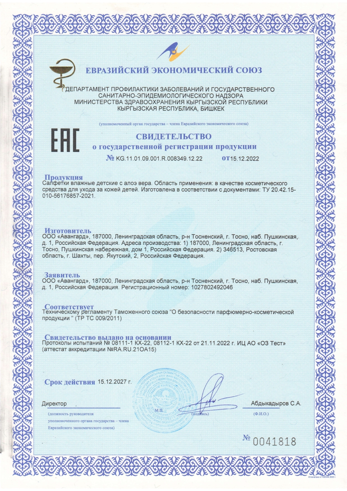Салфетки влажные детские 120 шт., АВАНГАРД, с экстрактом алоэ вера, крышка-клапан Код товара: 118745 116,6 ₽ Купить Производитель:АВАНГАРД Детские влажные салфетки АВАНГАРД с экстрактом алоэ вера. Отлично подходят для самых маленьких. Быстро и эффективно очищают и освежают кожу. В упаковке 120 штук. Размер салфетки в развернутом виде – 160х145 мм. Упаковка выполнена с удобным пластиковым клапаном с крышкой, предотвращающим высыхание салфеток.Производство: РоссияТип : гипоаллергенныеКоличество в комплекте: 120 шт.Без содержания спирта: даПодходят с первых дней жизни: даПодходят для ежедневного использования: даЭффект от использования: очищение, свежестьСодержат: экстракт алоэ вераСерия: АвангардОсобенность: детскиеДлина салфетки: 160 ммШирина салфетки: 145 ммПлотность: 40 г/м2Упаковка: пакет с пластиковым клапаномСрок годности: 30 месВес: 387 грРазмер упаковки: 7.1 × 16 × 9.6 смОбъём: 0.0012 м3Промежуточная упаковка: 20 штТранспортная упаковка: 20 штШтрих-код: 4610080720857 Файлы Сертификат-1.jpg Сертификат-2.jpg