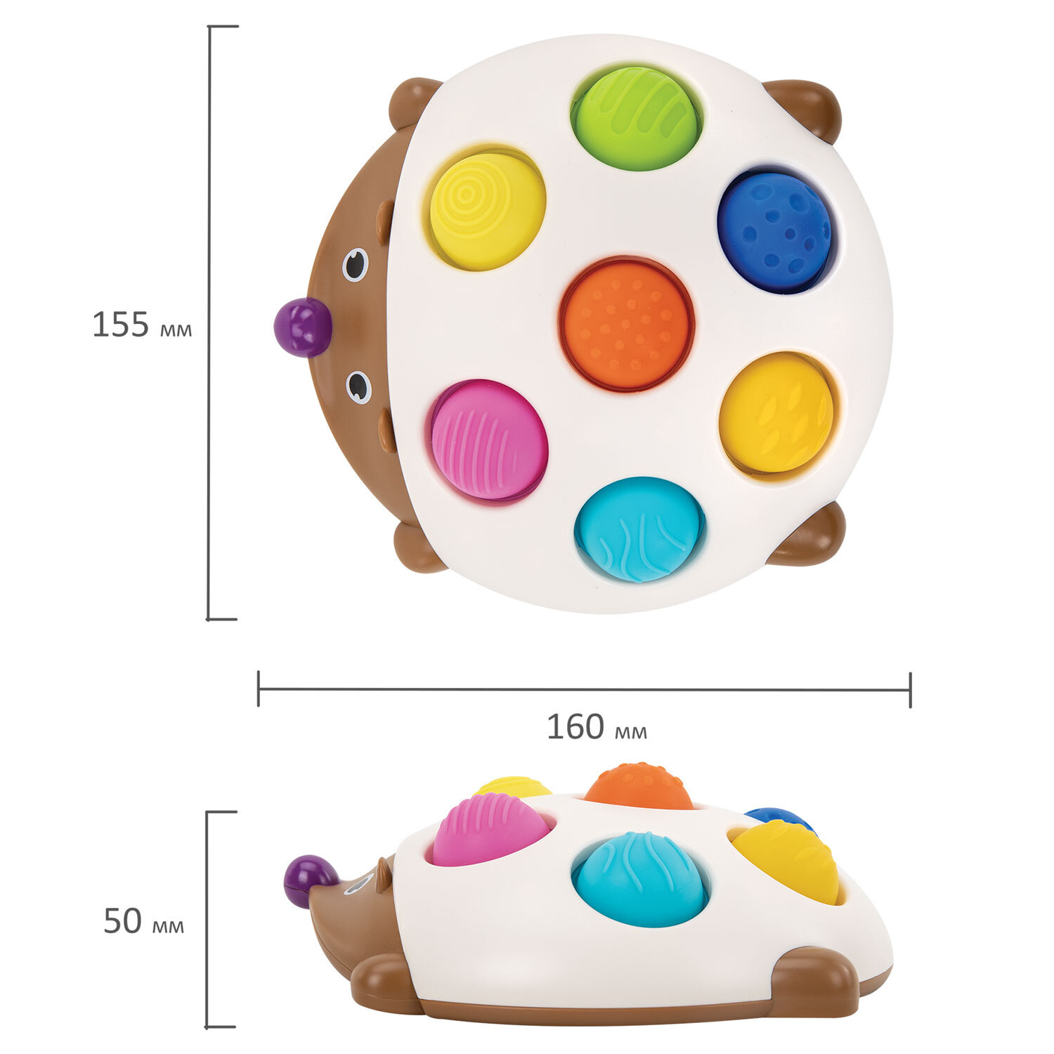 Тактильная игрушка "Ёжик", Pop it, сенсорная развивающая, ЭКО, BAMBOX BABY (БАМБОКС БЭБИ), 665910 Код товара: 665910 428,14 ₽ Купить Производитель:BAMBOX Тактильная сенсорная развивающая игрушка "Ёжик" BAMBOX BABY поможет самым маленьким познать окружающий мир при помощи сенсорики. Яркие кнопки разного цвета и диаметра помогут изучить малышу основные цвета в форме игры. Игрушка выполнена из безопасных и высококачественных материалов. Основание игрушки выполнено из прочного и качественного ABS-пластика. Яркие кнопки для нажатия в стиле Pop it выполнены из силикона. Разнообразие рельефных поверхностей каждой кнопки способствует развитию мелкой моторики малыша и его тактильного восприятия.Производство: КитайВид игрушки: тактильная игрушкаКоличество в комплекте: 1 шт.Возраст ребенка: от 3 месЦвет: разноцветныйОсобенности : Pop itСюжет: ЕжикСерия: тактильная развивающая игрушкаМатериал: пластик, силиконДлина: 16.5 смШирина: 16.5 смГлубина: 4.8 смУпаковка: подарочная коробкаВес: 175 грРазмер упаковки: 5.1 × 16.8 × 16.7 смОбъём: 0.0017 м3Промежуточная упаковка: 24 штТранспортная упаковка: 24 штШтрих-код: 4606224464688 Файлы Сертификат-1.jpg Сертификат-2.jpg Сертификат-3.jpg Сертификат-4.jpg