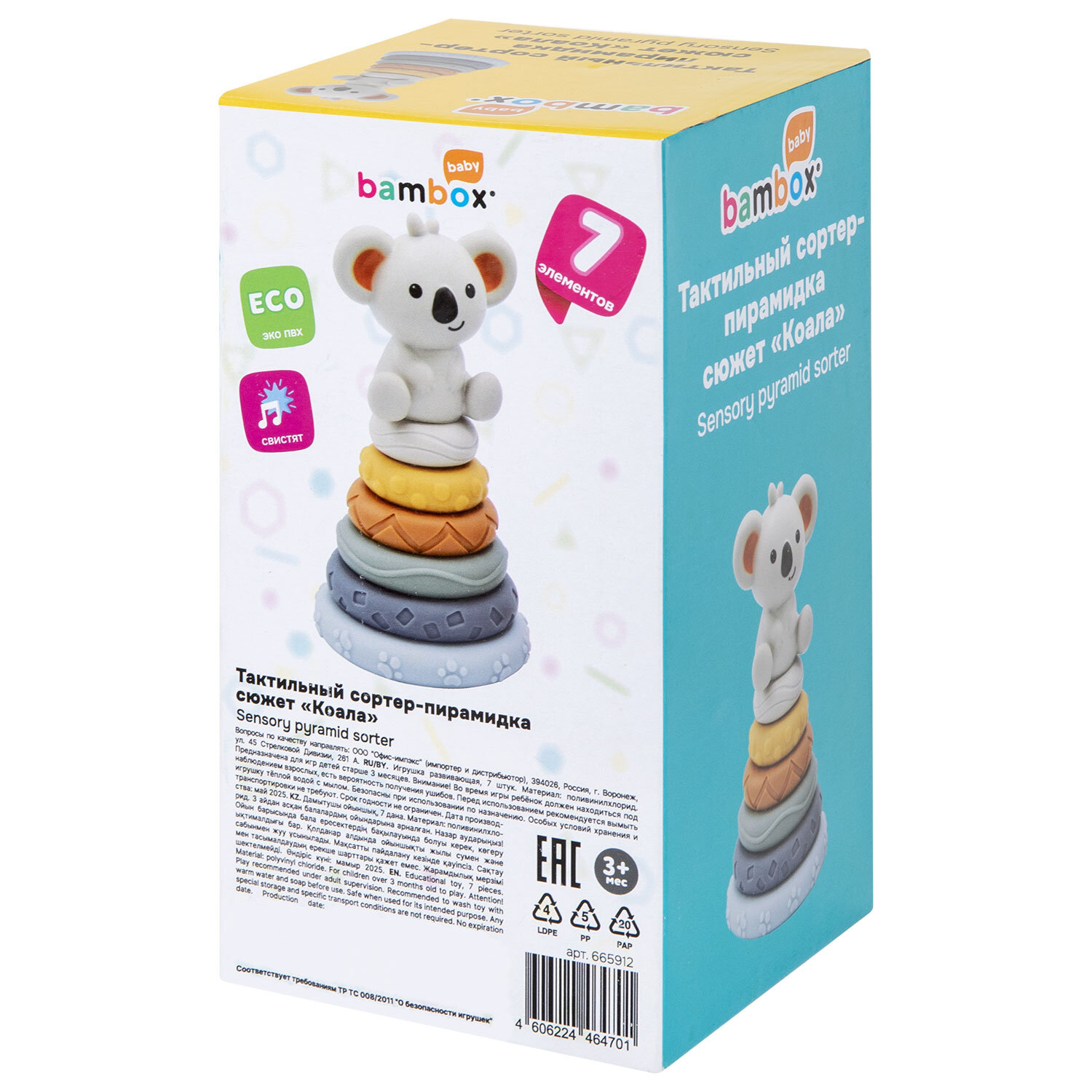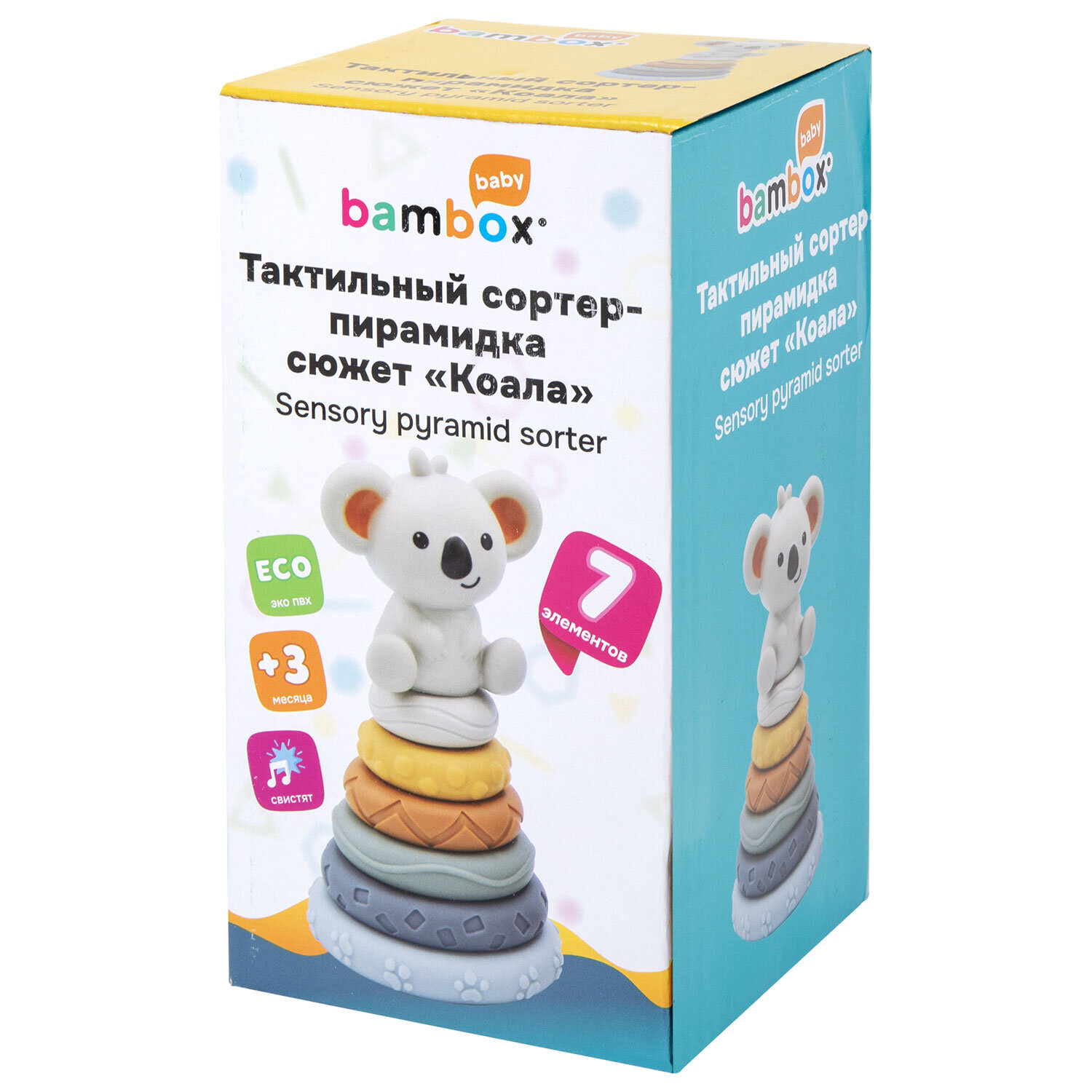 Тактильная игрушка сортер пирамидка Коала, 7 эл. сенсорная развивающая ЭКО, BAMBOX BABY (БАМБОКС БЭБИ), 665912 Код товара: 665912 398,45 ₽ Купить Производитель:BAMBOX Тактильная игрушка пирамидка - сортер Коала BAMBOX BABY в пастельных оттенках – замечательный подарок для малыша! Пирамидка выполнена из безопасного ПВХ, все детали приятные на ощупь. Пирамидка Коала - это сочетание увлекательной игры и развития! Игра с пирамидкой - сортером способствует развитию мелкой моторики, координации движений, пространственного мышления, снимает психологическое напряжение и дарит новые эмоции! Размер составляющих пирамидки позволяет малышу удобно держать их в маленькой ручке и соединять детали между собой. Каждое кольцо пирамидки отличается друг от друга размером, цветом и рельефной поверхностью. С такой пирамидкой ребёнок точно научится различать цвета и сравнивать размеры. Все детали пирамидки отлично подходят для игр на суше и в в воде. Ребёнок будет играть, собирать пирамидку и купаться, познавая окружающий мир с удовольствием! Пирамидка состоит из 7 элементов. Размер фигурки Коалы 8,1*4,1*7,7 см Диаметр самого большого кольца пирамидки 9,3 см. Диаметр самого маленького кольца пирамидки 4,5 см.Производство: КитайВид игрушки: пирамидкаКоличество в комплекте: 7 шт.Возраст ребенка: от 3 летЦвет: разноцветныйОсобенности : сортерСюжет: коалаСерия: тактильная развивающая игрушкаМатериал: ПВХДлина: 12.5 смШирина: 10.6 смГлубина: 10.6 смУпаковка: подарочная коробкаВес: 283 грРазмер упаковки: 10.6 × 10.6 × 12.5 смОбъём: 0.0018 м3Промежуточная упаковка: 12 штТранспортная упаковка: 12 штШтрих-код: 4606224464701 Сертификат-1.jpg Сертификат-2.jpg