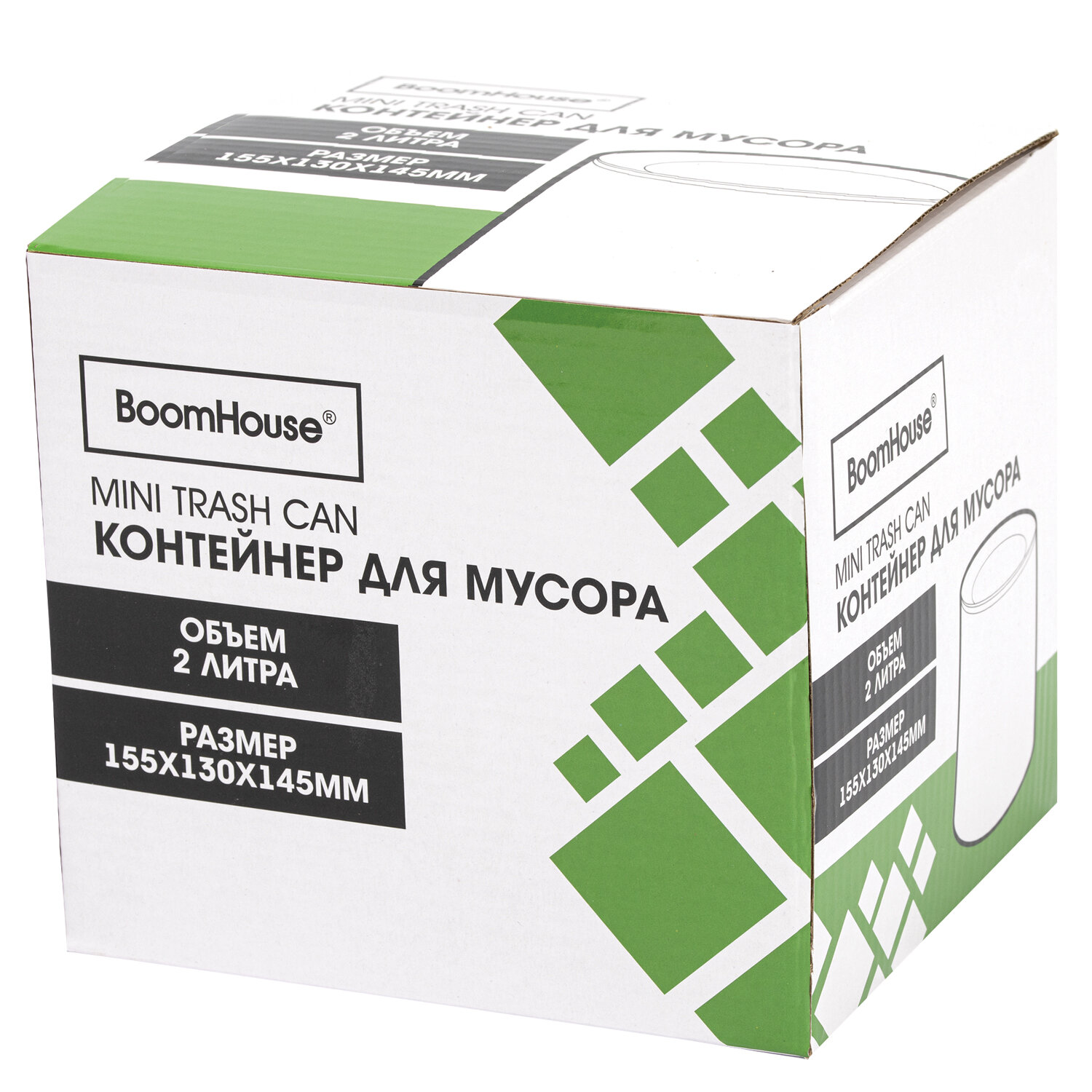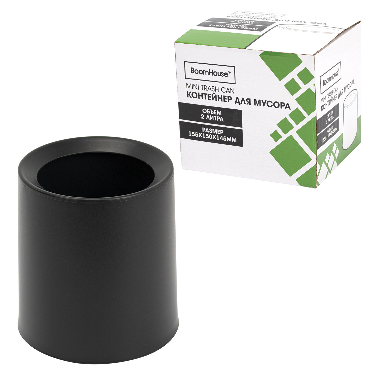 Контейнер, урна, ведерко для мусора НАСТОЛЬНОЕ без крышки 2 л, 155х130х145 мм, черный, BOOMHOUSE (БУМХАУС) Код товара: 238901 273,77 ₽ Купить Производитель:BoomHouse Компактный и вместительный контейнер для мусора BOOMHOUSE идеально подходит для использования в офисах, школах, различных учреждениях. Изготовлен из высококачественного пластика. Оснащен крышкой с механизмом микролифта. Легкость и компактность контейнера позволяют перемещать его с одного места на другое. Небольшой контейнер легко помещается на рабочем столе. Имеет размеры 15,5х13x14,5 см и объем 2 л.Производство: КитайТип товара: урнаОбъем: 2 лСъемный внутренний контейнер: даМатериал: пластикСерия: StandardВысота: 14.5 смШирина: 13 смГлубина: 15.5 смЦвет: черный матовыйТип упаковки: гофрокоробВес: 298 грРазмер упаковки: 15.1 × 15 × 16.6 смОбъём: 0.0042 м3Промежуточная упаковка: 48 штТранспортная упаковка: 48 штШтрих-код: 4606224486734 Сертификат-1.jpg Сертификат-2.jpg
