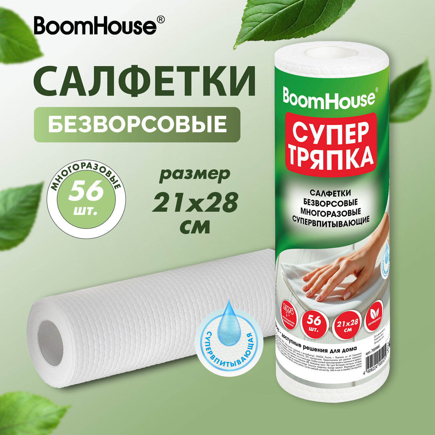 Салфетки БЕЗВОРСОВЫЕ 56 штук 21 х 28 см СУПЕРВПИТЫВАЮЩИЕ многоразовые ЦЕЛЛЮЛОЗНЫЕ, BoomHouse Код товара: 700988 222,97 ₽ Купить Производитель:BoomHouse Погрузитесь в мир чистоты и комфорта с нашими супервпитывающими многоразовыми безворсовыми салфетками BoomHouse. Используются как для влажной так и для сухой уборки, подойдут для любых задач в вашем доме! В рулоне 56 высококачественных целлюлозных салфеток. Супервпитывающие салфетки легко справятся с любыми жидкостями, быстро впитывая и оставляя поверхность сухой и чистой. Благодаря прочной структуре, салфетки можно использовать многократно, что делает их экономичным и экологически чистым выбором. Салфетки не оставляют остаточных волокон и ворсинок, что особенно важно при уборке стеклянных и зеркальных поверхностей. Практичная картонная втулка позволяет удобно хранить и использовать салфетки, а специальная перфорация между салфетками позволяет легко оторвать нужное количество. Размер салфетки - 28 х 21 см Кол-во салфеток в рулоне - 56 штук Цвет - белый Диаметр втулки - 35 ммПроизводство: КитайМатериал: целлюлоза/полипропиленПрименение: для влажной и сухой уборкиКоличество салфеток: 56 шт.Отрывная перфорация: даРазмер (ДхШ): 28х21 смЦвет: белыйСерия: нетПлотность: 65 г/м2Упаковка: термоусадкаВес: 279 грРазмер упаковки: 28 × 8.6 × 8.6 смОбъём: 0.0023 м3Промежуточная упаковка: 42 штТранспортная упаковка: 42 штШтрих-код: 4606224505121 Файлы Сертификат-1.jpg Сертификат-2.jpg Сертификат-3.jpg