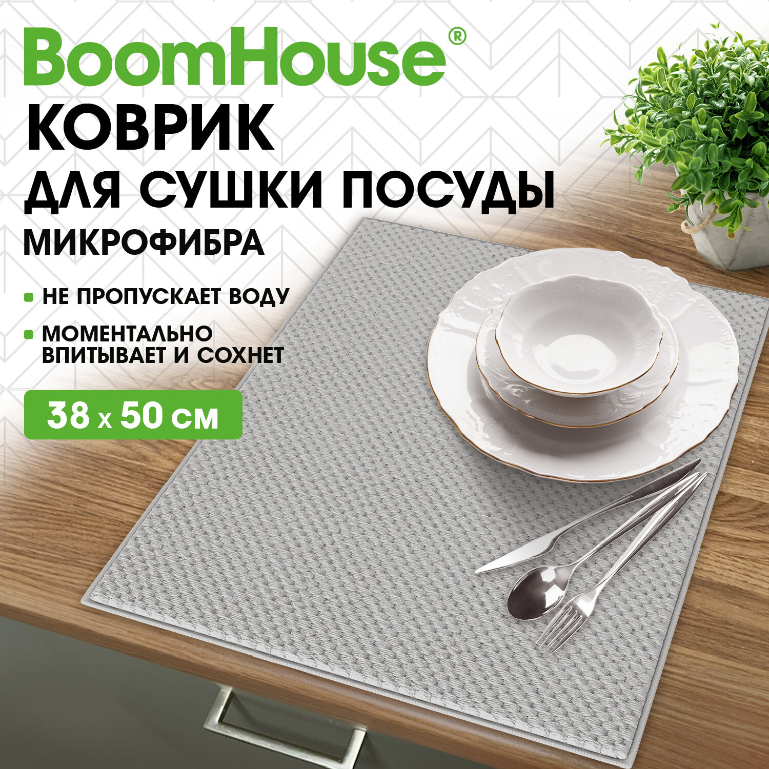 Коврик для сушки посуды из микрофибры, 38х50 см, "КЛЕТКА", сетка, СЕРЫЙ, 300 г/м2, BOOMHOUSE (БУМХАУС) Код товара: 701145 156,3 ₽ Купить Производитель:BoomHouse Коврик для сушки посуды BOOMHOUSE из микрофибры эффективно впитывает влагу и быстро сохнет, обеспечивая чистоту и порядок на кухне. Стильный и гигиеничный аксессуар идеально подойдёт для тех, кто заботится о собственном комфорте! Коврик для сушки посуды BOOMHOUSE – это современное гигиеничное решение для быстрой сушки любой посуды. Благодаря микрофибре и наличию внутренней прослойки из поролона коврик для сушки посуды BOOMHOUSE моментально впитывает всю влагу, гарантируя, что поверхность под ним и вокруг раковины останется идеально сухой, что предотвращает появление луж и размножение бактерий. Коврик быстро сохнет и прост в уходе. Внешние стороны коврика изготовлены из микрофибры с суммарной плотностью 300 г/м2. Одна из сторон имеет плетение в виде клетки, а другая представляет собой сетку для ускоренной сушки. Края обработаны оверлоком, что гарантирует долговечность и отсутствие распускания даже после многократных стирок. Толщина – 5 мм. Размер коврика (38x50 см) оптимален для размещения на ограниченном пространстве, но при этом позволяет сушить сразу несколько тарелок или крупную кухонную утварь. Форма коврика – прямоугольная. Каждый коврик BOOMHOUSE поставляется в индивидуальном пакете, а также имеет удобный пластиковый крючок для вывешивания на стойку.Производство: КитайТип коврика: ВлаговпитывающийНазначение: Для сушки посудыМатериал: Микрофибра, поролонРазмер: 38х50 смТолщина: 5 ммТип рисунка: плетение "Клетка"Цвет: серыйВес: 114 грРазмер упаковки: 2.1 × 39 × 17.4 смОбъём: 0.0016 м3Промежуточная упаковка: 48 штТранспортная упаковка: 48 штШтрих-код: 4606224506814 Файлы Сертификат-1.jpg Сертификат-2.jpg