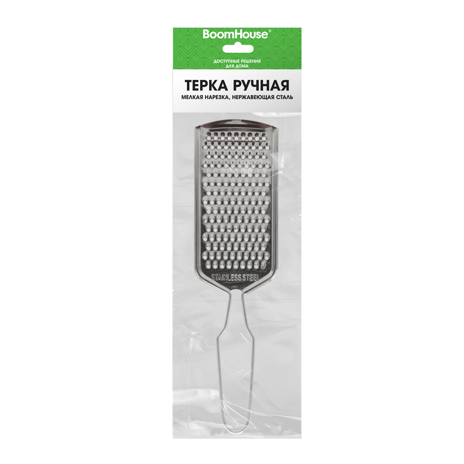 Терка ручная, мелкая нарезка, нержавеющая сталь, BOOMHOUSE Код товара: 702091 59,18 ₽ Купить Производитель:BoomHouse Ручная терка BOOMHOUSE – ваша незаменимая помощница на кухне. Благодаря острым лезвиям, прочной конструкции, компактному размеру и удобной ручке она легко справится с любыми продуктами и сделает приготовление блюд максимально простым и комфортным. Терки и овощерезки находятся в прямом контакте с пищевыми продуктами, поэтому важную роль играет материал, из которого сделан инструмент. Терка BOOMHOUSE изготовлена из качественного материала, который соответствует всем требованиям безопасности – это мартенситная нержавеющая сталь SUS410, отличающаяся высокой коррозионной стойкостью, прочностью и устойчивостью к окислению. Тёрка – это универсальный ручной кухонный прибор для обработки овощей, фруктов и других продуктов. Устройство оснащено функциональной поверхностью с прорезью: • Мелкая терка – отличается от стандартных лезвий терок уменьшенным размером отверстий (2 мм), что позволяет измельчать продукты в 2-3 раза сильнее. Является универсальным решением для работы абсолютно с любыми продуктами. Часто используется при создании салатов, закусок или кондитерских изделий, идеальна для измельчения сыра, чеснока, цедры, шоколада, орехов и овощей. Все лезвия превосходно заточены, что обеспечивает качественное и быстрое измельчение продуктов. Терку удобно держать использовать и хранить благодарю оптимальному размеру – 21,5х6х0,3 см. А легкий вес изделия (30 г) позволит вам не уставать при долгом использовании. Рекомендации по использованию: 1) Сразу после каждого использования терку следует очистить, тщательно вымыть и высушить. 2) При засорении отверстий не рекомендуется использовать абразивные средства или металлические скребки – можно воспользоваться щеткой, которой удобно очистить все поверхности. 3) Храните терку в сухом месте, вдали от агрессивных химикатов, которые могут вызвать коррозию, и металлических приборов, подверженных коррозии.Производство: КитайТип товара: терка ручнаяНазначение: универсальнаяКоличество типов лезвий: 1Тип лезвий: мелкиеМатериал граней: Нержавеющая стальМатериал ручки: Нержавеющая стальЦвет ручки: стальнойВысота: 21.5 смШирина: 6 смГлубина: 0.3 смСерия: -Упаковка: -Вес: 32 грРазмер упаковки: 0.3 × 21.5 × 7.5 смОбъём: 0.0001 м3Промежуточная упаковка: 250 штТранспортная упаковка: 250 штШтрих-код: 4606224519982 Файлы