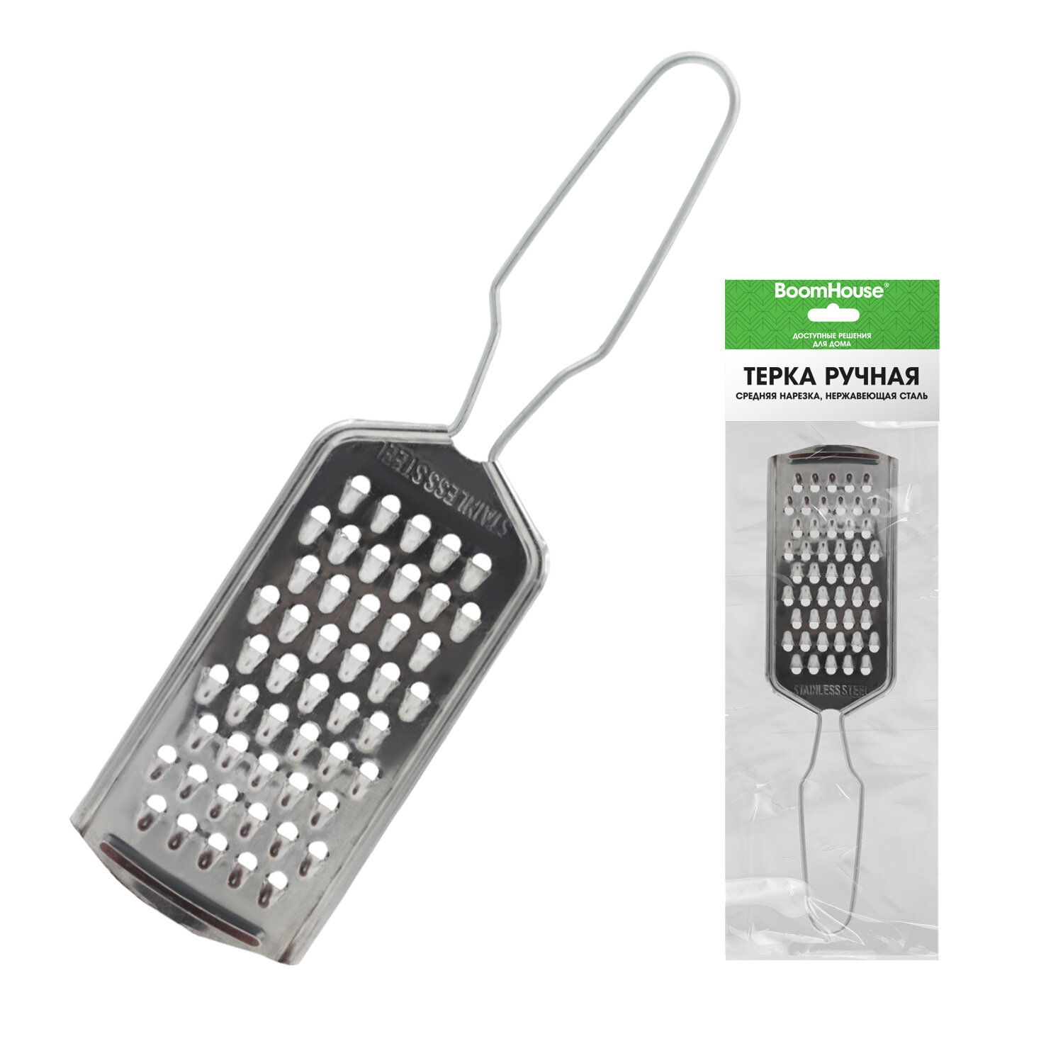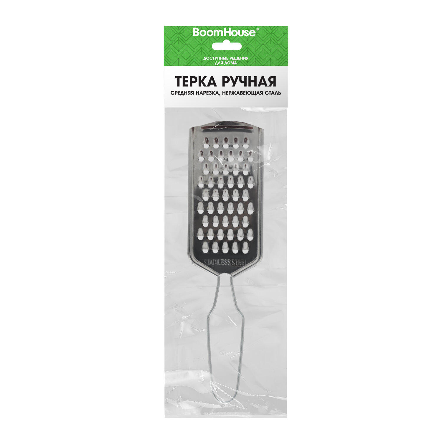 Терка ручная, средняя нарезка, нержавеющая сталь, BOOMHOUSE Код товара: 702092 59,18 ₽ Купить Производитель:BoomHouse Ручная терка BOOMHOUSE – ваша незаменимая помощница на кухне. Благодаря острым лезвиям, прочной конструкции, компактному размеру и удобной ручке она легко справится с любыми продуктами и сделает приготовление блюд максимально простым и комфортным. Терки и овощерезки находятся в прямом контакте с пищевыми продуктами, поэтому важную роль играет материал, из которого сделан инструмент. Терка BOOMHOUSE изготовлена из качественного материала, который соответствует всем требованиям безопасности – это мартенситная нержавеющая сталь SUS410, отличающаяся высокой коррозионной стойкостью, прочностью и устойчивостью к окислению. Тёрка – это универсальный ручной кухонный прибор для обработки овощей, фруктов и других продуктов. Устройство оснащено функциональной поверхностью с прорезью: • Средняя терка – отличается от стандартных лезвий терок уменьшенным размером отверстий (3 мм), что позволяет измельчать продукты в 2-3 раза сильнее. Является универсальным решением для работы абсолютно с любыми продуктами. Часто используется при создании салатов, закусок или кондитерских изделий, идеальна для измельчения сыра, цедры, шоколада, орехов и овощей. Все лезвия превосходно заточены, что обеспечивает качественное и быстрое измельчение продуктов. Терку удобно держать использовать и хранить благодарю оптимальному размеру – 21,5х6х0,3 см. А легкий вес изделия (30 г) позволит вам не уставать при долгом использовании. Рекомендации по использованию: 1) Сразу после каждого использования терку следует очистить, тщательно вымыть и высушить. 2) При засорении отверстий не рекомендуется использовать абразивные средства или металлические скребки – можно воспользоваться щеткой, которой удобно очистить все поверхности. 3) Храните терку в сухом месте, вдали от агрессивных химикатов, которые могут вызвать коррозию, и металлических приборов, подверженных коррозии.Производство: КитайТип товара: терка ручнаяНазначение: универсальнаяКоличество типов лезвий: 1Тип лезвий: средниеМатериал граней: Нержавеющая стальМатериал ручки: Нержавеющая стальЦвет ручки: стальнойВысота: 21.5 смШирина: 6 смГлубина: 0.3 смСерия: -Упаковка: -Вес: 32 грРазмер упаковки: 0.5 × 21.6 × 7.2 смОбъём: 0.0001 м3Промежуточная упаковка: 250 штТранспортная упаковка: 250 штШтрих-код: 4606224519999 Файлы
