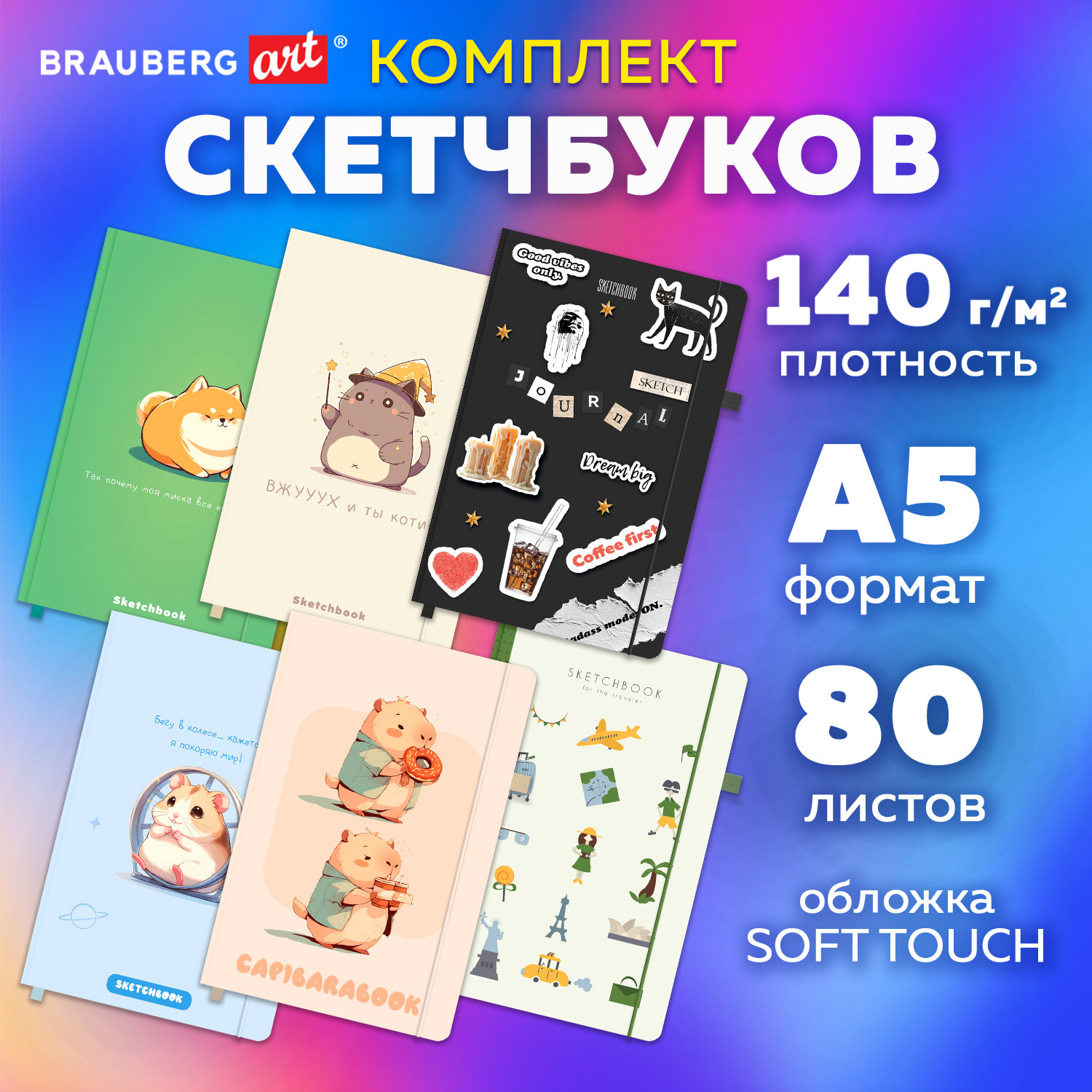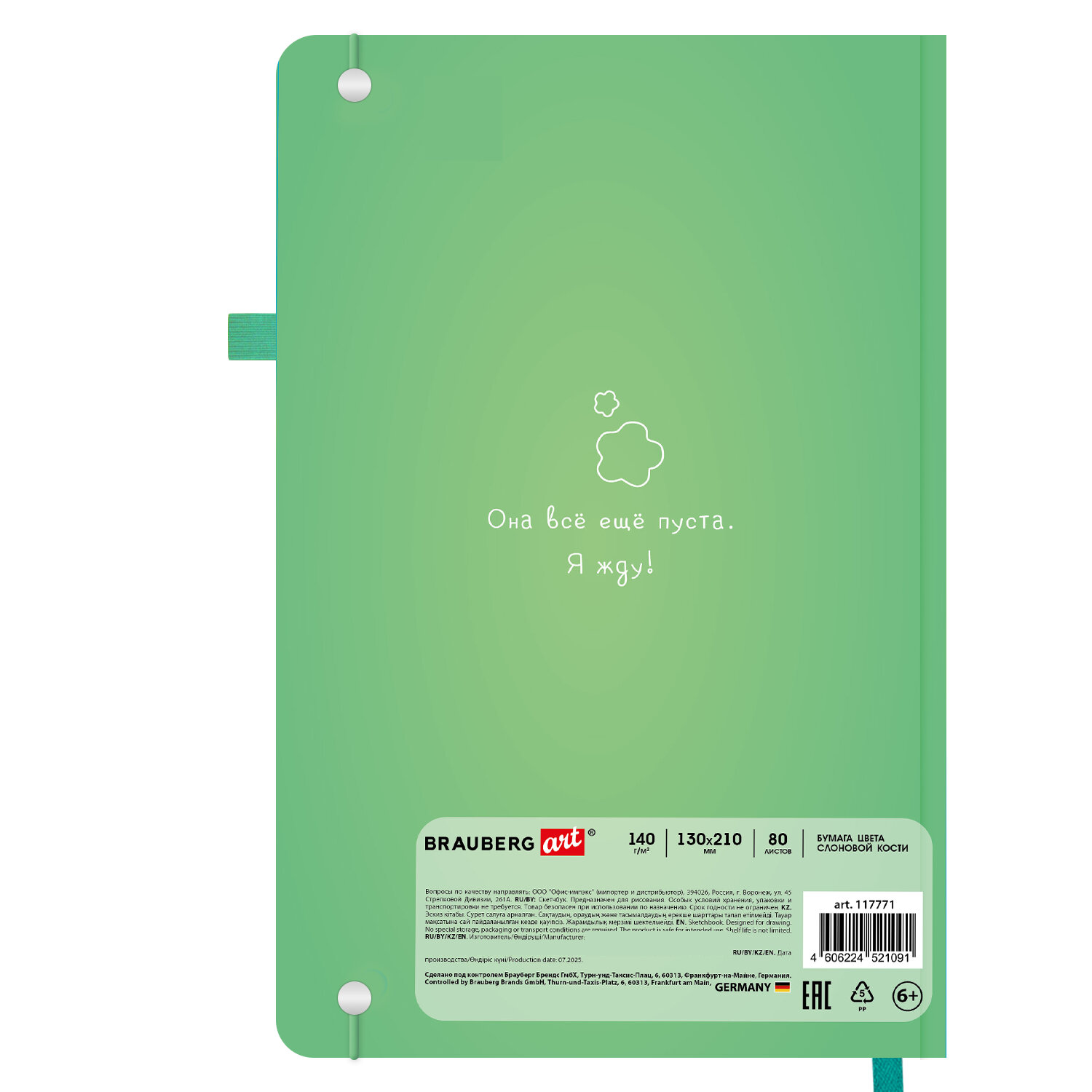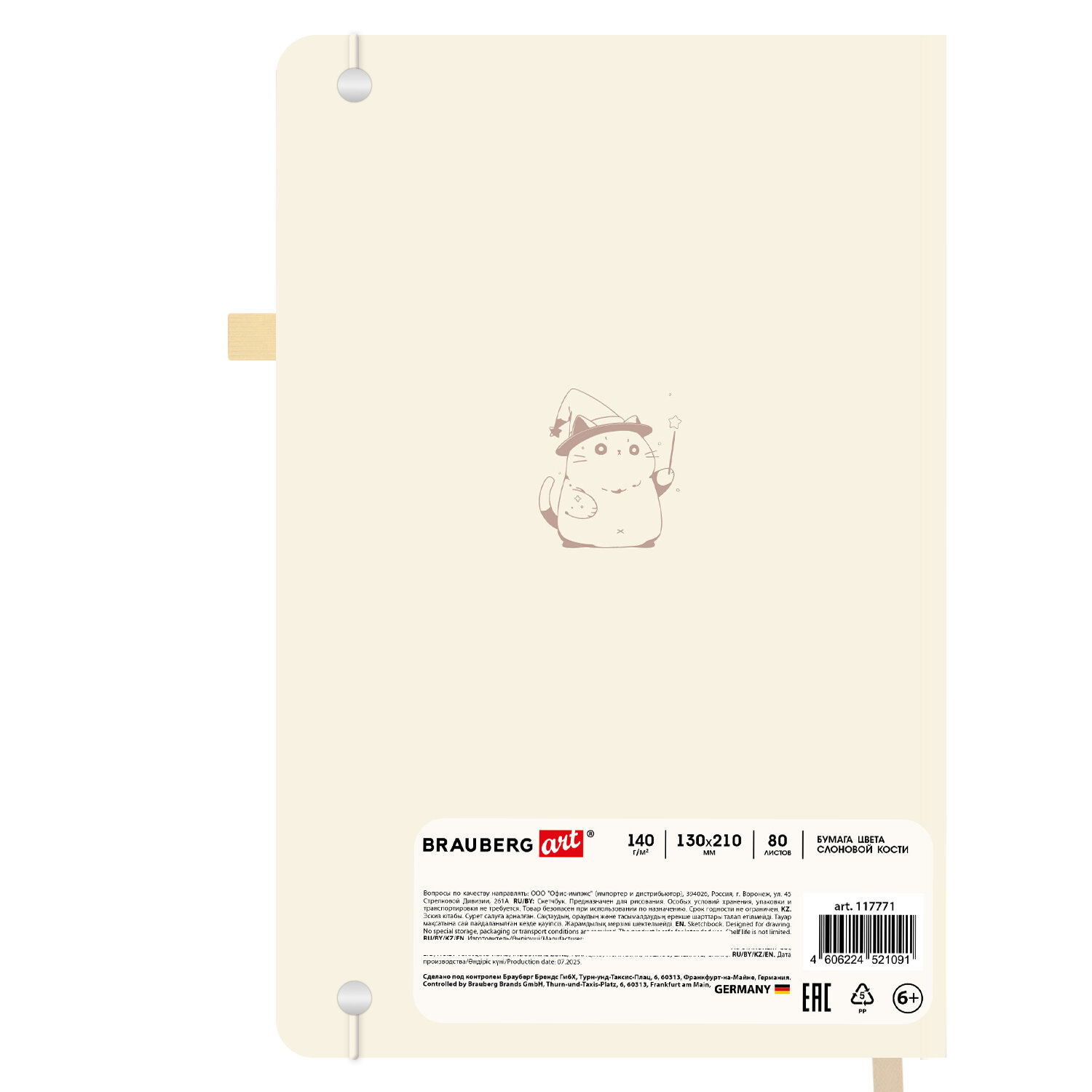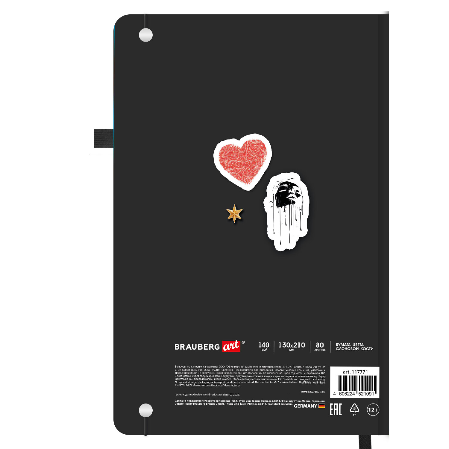 Скетчбук, слоновая кость 140 г/м2, 130х210 мм, 80 л., софт-тач, резинка, BRAUBERG ART CLASSIC, АССОРТИ Код товара: 117771 387,57 ₽ Купить Производитель:BRAUBERG ART Скетчбук BRAUBERG ART CLASSIC подходит для эскизов, графики, набросков, каллиграфии, леттеринга, скетчинга и ведения записей. Это компактный скетчбук с жесткой обложкой, покрытой матовой пленкой soft-touch. Внутренний блок – 80 листов специальной художественной тонированной бумаги цвета слоновой кости плотностью 140 г/м2. Подходит для работы с широким спектром графических материалов (ручки, карандаши, линеры). Благодаря компактному формату его можно носить с собой, а жесткая обложка станет верным подспорьем для рисования на весу. Дополнением является закладка-ляссе, с помощью которой при необходимости можно быстро открыть скетчбук на нужной странице, и держатель для письменных принадлежностей. Эластичная резинка надежно сбережет листы от замятия и случайного раскрытия. Скетчбук станет прекрасным выбором для любителей и профессионалов, студентов и школьников, художников и дизайнеров.Производство: КитайТип товара: блокнот/скетчбукСерия: ClassicВид работ: для зарисовок, эскизов, рисованияКоличество листов: 80Формат: А5Ширина: 130 ммДлина: 210 ммДизайн: ассортиОбложка: твердый переплетВнутренний блок: художественная бумагаЦвет внутреннего блока: слоновая костьПлотность внутреннего блока: 140 г/м2Жесткая подложка: даТип скрепления: книжный переплетБез кислот: даЦвет обложки: ассортиИндивидуальная упаковка: даВес: 422 грРазмер упаковки: 2 × 13 × 21 смОбъём: 0.0006 м3Промежуточная упаковка: 12 штТранспортная упаковка: 12 штШтрих-код: 4606224521091