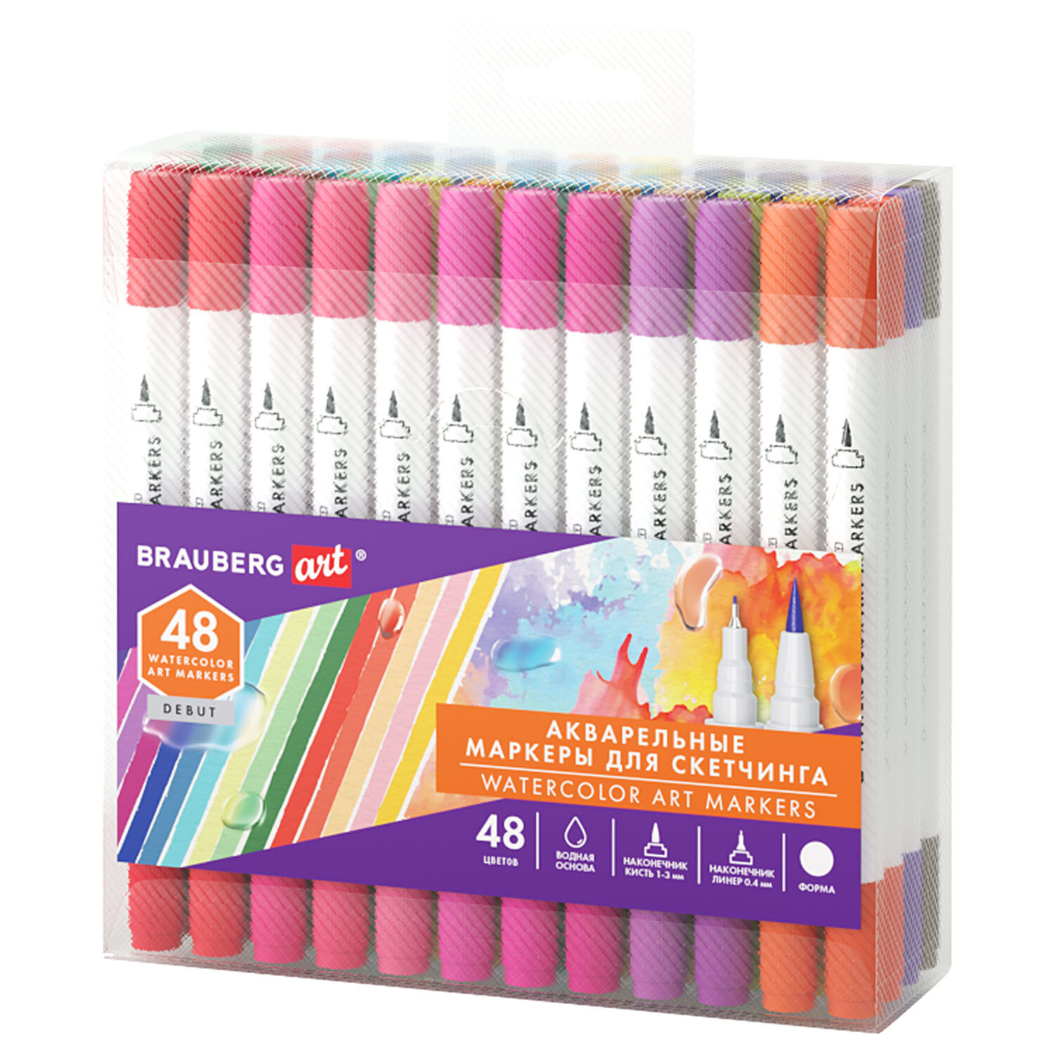 Маркеры акварельные для скетчинга двусторонние (кисть и линер) 48 цветов, BRAUBERG ART Код товара: 152667 674,88 ₽ Купить Производитель:BRAUBERG ART Набор акварельных маркеров для скетчинга BRAUBERG ART "DEBUT" – это возможность создавать шедевры каждый день. Набор двусторонних акварельных маркеров для скетчинга с круглой формой корпуса из пластика. Форма наконечника – кисть и линер. Толщина линии письма – 1-3 мм у наконечника кисти, 0,4 мм у наконечника линера. Благодаря водной основе чернила быстро размываются водой и создают эффект акварели. Износостойкий фетровый наконечник устойчив к повреждениям и обеспечивает экономный расход чернил. Изделие не перезаправляется. Плотно закрывается колпачком, что предотвращает высыхание наконечника и чернил. В наборе 48 цветов. Цвет колпачка соответствует цвету чернил. Маркеры акварельные для скетчинга пригодятся школьникам, студентам, участникам мастер-классов, ученикам художественных школ, студий и училищ, живописных мастерских. Эти маркеры используют любители для хобби и профессионалы, которые стремятся достичь такой же славы как Пабло Пикассо (Pablo Picasso), Казимир Малевич, Марк Шагал, Клод Моне (Claude Monet), Рембрандт (Rembrandt), Сальвадор Дали (Salvador Dali), Энди Уорхол (Andy Warhol), Андрей Рублев, Фрида Кало (Frida Kahlo), Винсент Ван Гог (Vincent van Gogh), Тициан (Tician), Анри Матисс (Henri Matisse), Леонардо да Винчи (Leonardo da Vinci) и другие популярные художники.Производство: КитайЦвет чернил: ассортиСерия: DEBUT Watercolor MarkerКоличество в наборе: 48 шт.Минимальная толщина линии письма: 0.4 ммМаксимальная толщина линии письма: 3 ммДвусторонний: даФорма корпуса: круглаяДиаметр корпуса: 12 ммМатериал корпуса: пластикОснова чернил: воднаяУпаковка: ПВХ-бокс с европодвесомСрок годности: 48 месВес: 596 грРазмер упаковки: 5.2 × 16.7 × 16.1 смОбъём: 0.0019 м3Промежуточная упаковка: 10 штТранспортная упаковка: 40 штШтрих-код: 4606224519159 Файлы