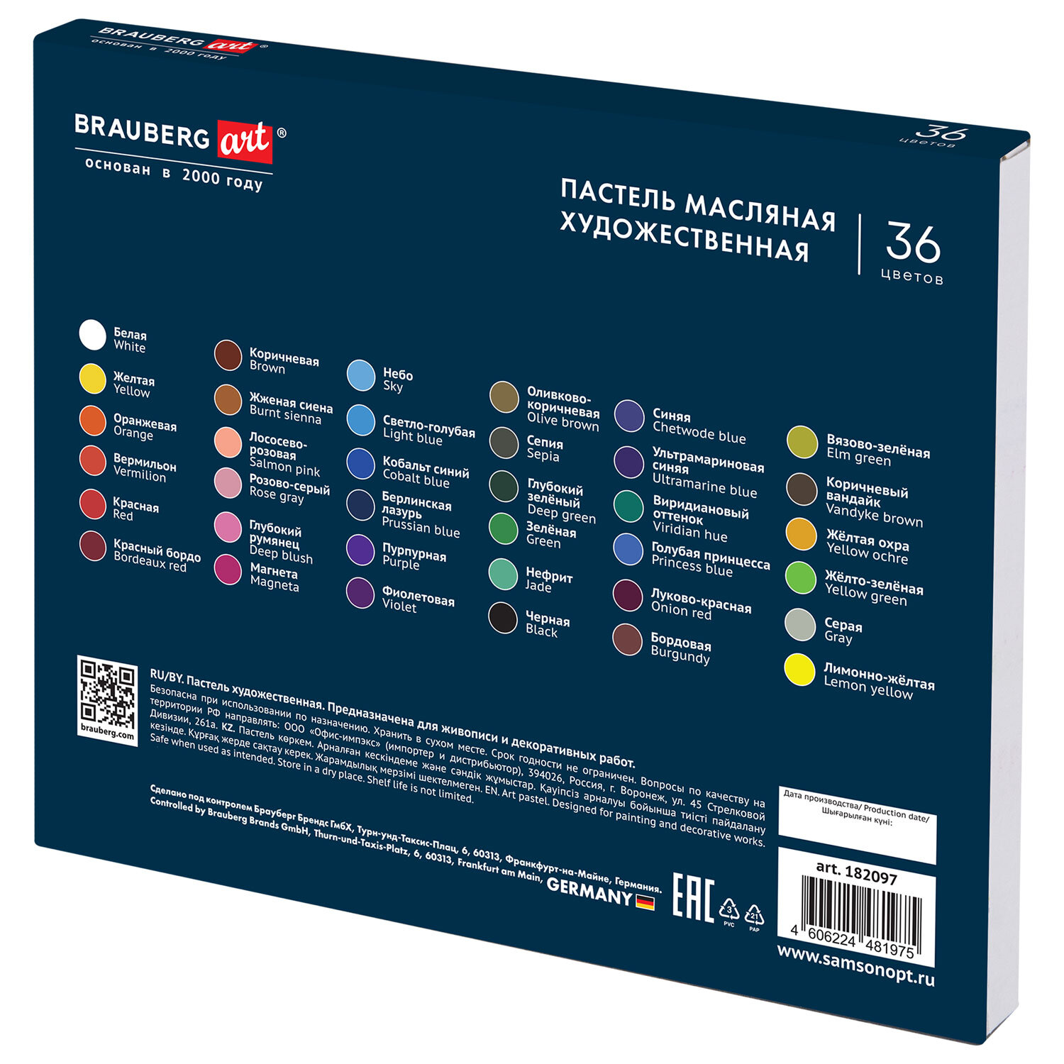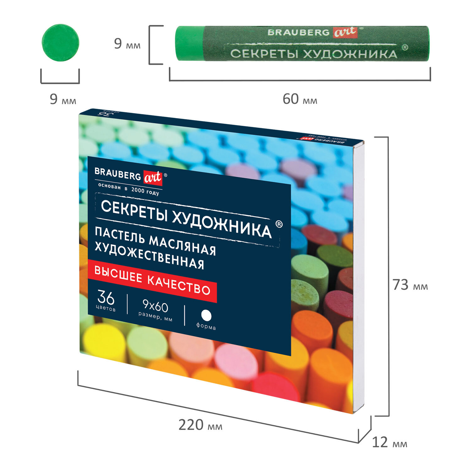 Масляная пастель легко ложится на различные фактуры цветной бумаги, бумагу для рисования, холст, картон, дерево, керамику. 36 цветов позволяют передать полную цветовую палитру. Высокое качество пигментов и связующего обеспечивает низкий расход материала, хорошую укрывистость и яркость цвета. Пастель имеет вид брусков с круглым сечением, обёрнутых в бумажную обёртку. Она позволяет сохранять руки и одежду чистыми. Не токсична и безопасна при использовании. Благодаря компактной упаковке удобно брать с собой.