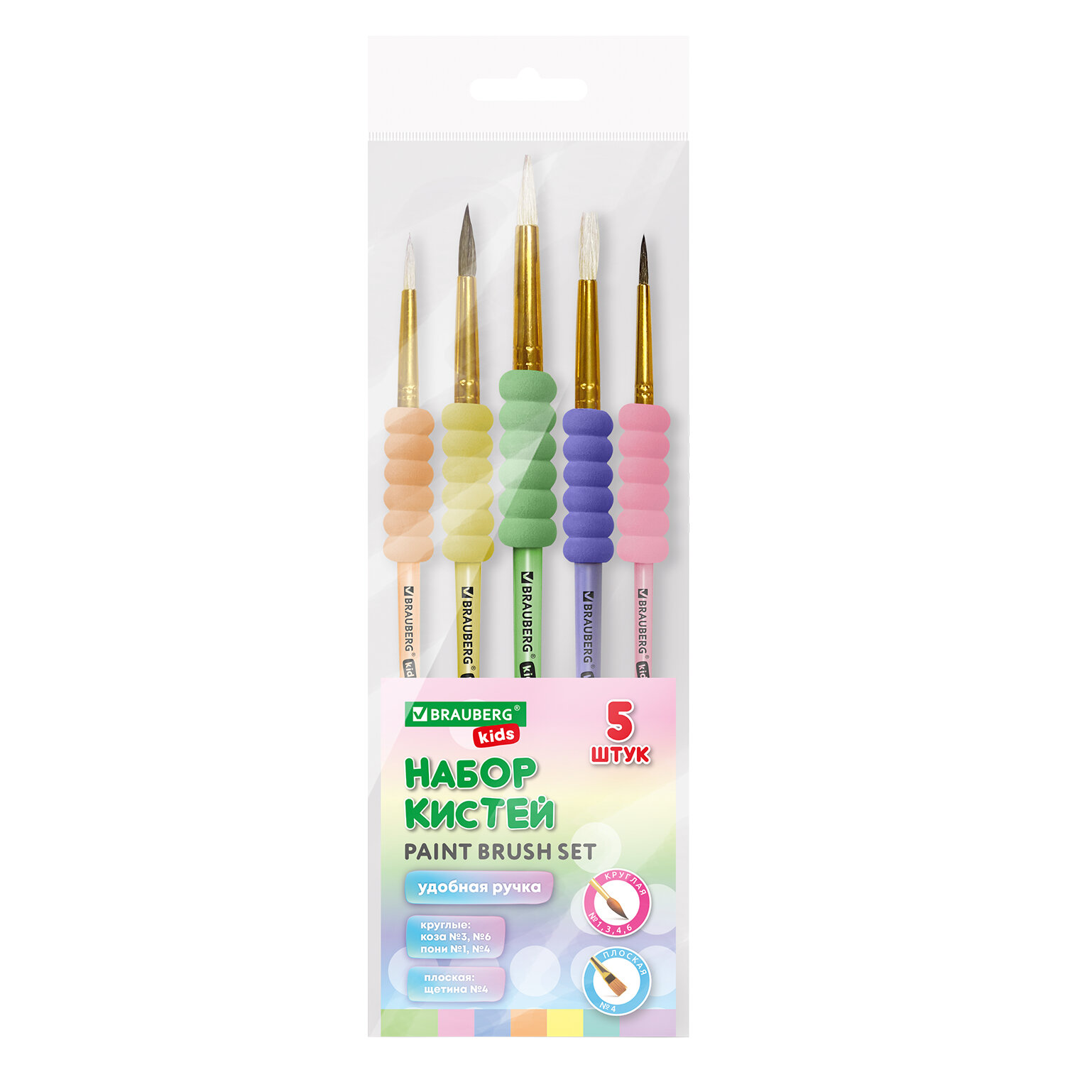 Кисти c EVA вставкой НАБОР 5 шт (ПОНИ круглые 1,4;КОЗА круглые 3,6;ЩЕТИНА плоская 4), BRAUBERG KIDS Код товара: 201091 165,8 ₽ Купить Производитель:BRAUBERG KIDS Набор из пяти кистей разного размера c мягкой EVA вставкой BRAUBERG KIDS позволяет начинающим художникам решать любые творческие задачи в детском саду, школе и дома. Кисти из волоса пони отлично впитывают и отдают краску, хорошо держат форму, долговечны и надежны. Благодаря кистям № 1, 3 и 4 ребенку будет комфортно прорисовывать мелкие детали. Кисть № 6 позволит делать более крупные мазки и линии. Пластиковую рукоятку c мягкой EVA вставкой удобно держать в руке.Производство: КитайКол-во кистей в наборе: 5 шт.Тип кисти: круглая, плоскаяНомер кисти: 1, 3, 4, 6Ворс: коза, пони, щетинаРучка: стандартнаяУпаковка: пакет с европодвесомСерия: -Вес: 35 грРазмер упаковки: 0.5 × 6.5 × 25 смОбъём: 0.0002 м3Промежуточная упаковка: 12 штТранспортная упаковка: 240 штШтрих-код: 4606224518152
