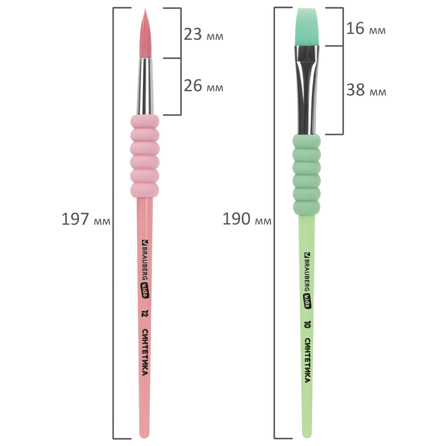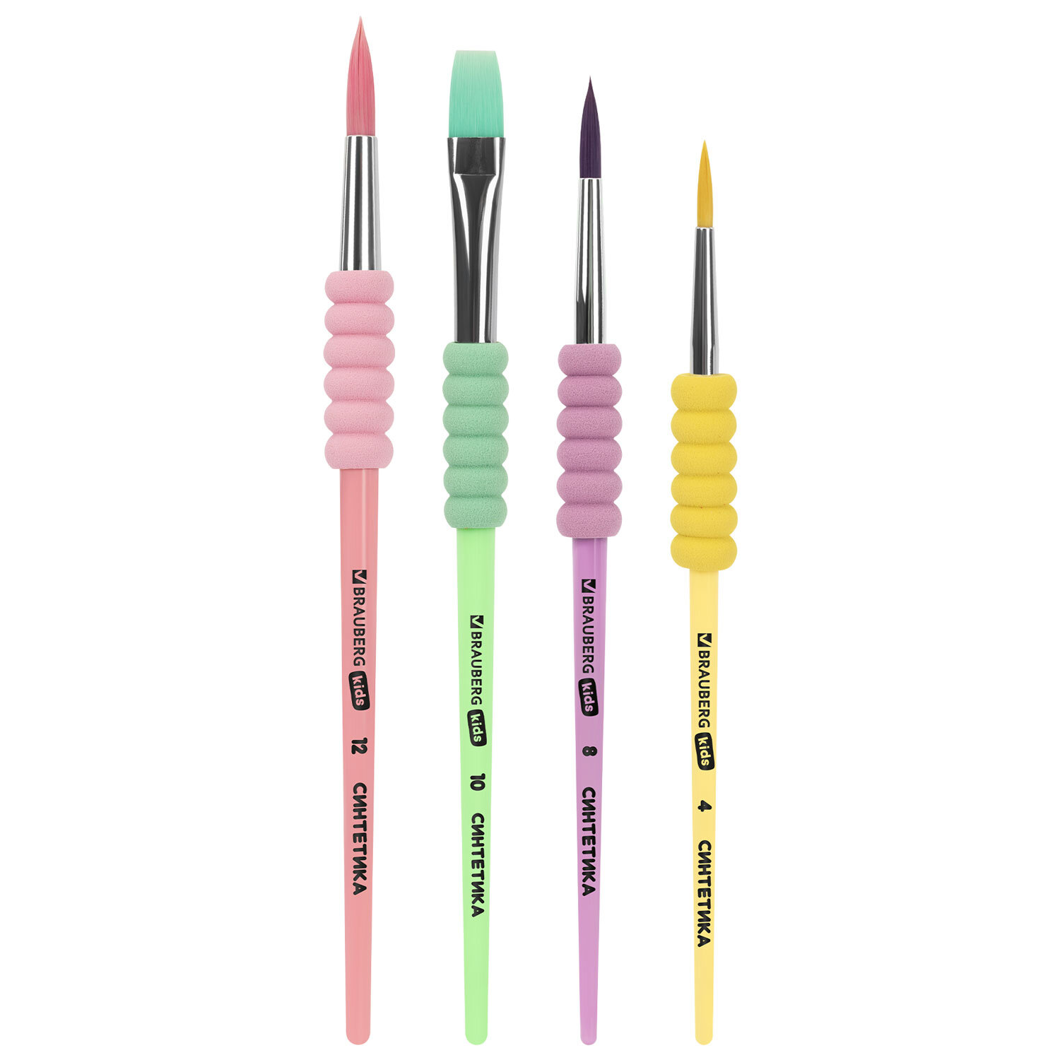 Кисти c EVA-вставкой НАБОР 4 шт. (синтетика круглые №4, 8, 12; плоская №10), блистер BRAUBERG KIDS Код товара: 201095 210,92 ₽ Купить Производитель:BRAUBERG KIDS Набор из четырёх кистей разного размера c мягкой EVA-вставкой BRAUBERG KIDS позволяет начинающим художникам решать любые творческие задачи в детском саду, школе и дома. Кисти из синтетики отлично впитывают и отдают краску, хорошо держат форму, долговечны и надежны. Благодаря кистям № 4, 8, и 12 ребенку будет комфортно прорисовывать мелкие детали. Кисть № 10 позволит делать более крупные мазки и линии. Пластиковую рукоятку c мягкой EVA вставкой удобно держать в руке.Производство: КитайКоличество кистей в наборе: 4 шт.Тип кисти: круглая, плоскаяНомер кисти: 10, 12, 4, 8Ворс: синтетикаРучка: стандартнаяУпаковка: блистер с европодвесомСерия: Кисти c EVA-вставкойЦвет: пастельный ассортиВес: 55 грРазмер упаковки: 1.3 × 25 × 8.4 смОбъём: 0.0004 м3Промежуточная упаковка: 12 штТранспортная упаковка: 288 штШтрих-код: 4606224518190 Файлы Сертификат-1.jpg Сертификат-2.jpg Сертификат-3.jpg