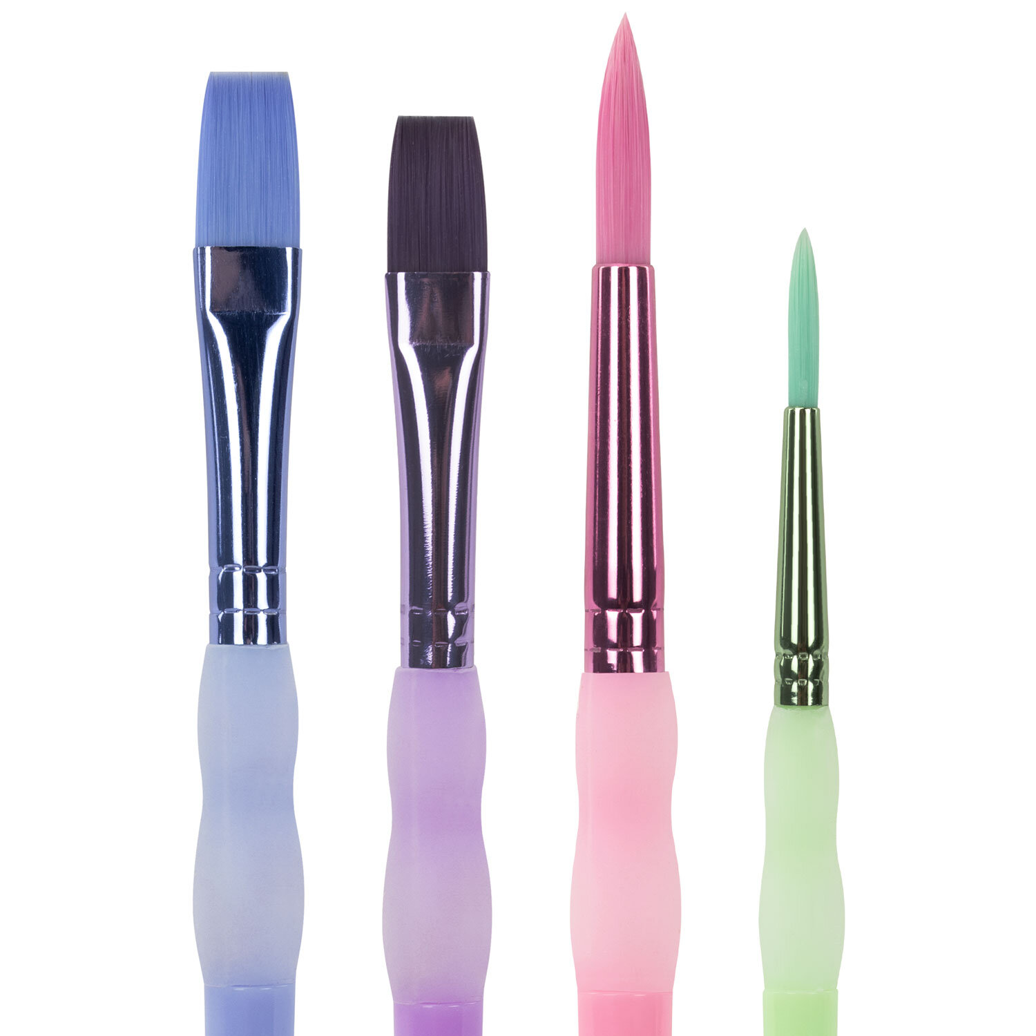 Кисти c силиконовой вставкой НАБОР 4 шт. (синтетика круглые №3, 10; плоские №10, 15), блистер, BRAUBERG KIDS Код товара: 201097 220,08 ₽ Купить Производитель:BRAUBERG KIDS Набор из четырёх кистей разного размера c мягкой силиконовой вставкой BRAUBERG KIDS позволяет начинающим художникам решать любые творческие задачи в детском саду, школе и дома. Кисти из синтетики отлично впитывают и отдают краску, хорошо держат форму, долговечны и надежны. Благодаря кистям № 3 и 10 ребенку будет комфортно прорисовывать мелкие детали. Кисти №10 и 15 позволят делать более крупные мазки и линии. Пластиковую рукоятку c мягкой силиконовой вставкой удобно держать в руке.Производство: КитайКоличество кистей в наборе: 4 шт.Тип кисти: круглая, плоскаяНомер кисти: 10, 15, 3Ворс: синтетикаРучка: стандартнаяУпаковка: блистер с европодвесомСерия: Кисти c силиконовой вставкойЦвет: пастельный ассортиВес: 54 грРазмер упаковки: 1.2 × 25.2 × 7.4 смОбъём: 0.0003 м3Промежуточная упаковка: 12 штТранспортная упаковка: 288 штШтрих-код: 4606224518213 Файлы Сертификат-1.jpg Сертификат-2.jpg Сертификат-3.jpg