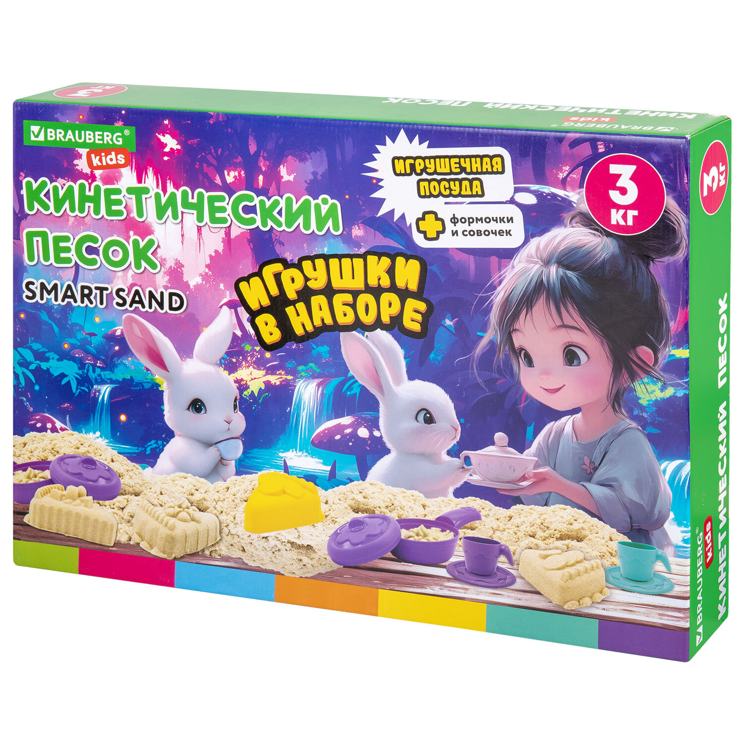 Набор кинетического песка 3 кг, "ВЕСЕЛОЕ ЧАЕПИТИЕ", песочница, игрушки, формочки, BRAUBERG KIDS Код товара: 666213 2 554,29 ₽ Купить Производитель:BRAUBERG KIDS Кинетический песок для лепки BRAUBERG KIDS идеально подойдет для детского творчества. Игры с кинетическим песком развивают мелкую моторику рук, у детей развивается тактильная чувствительность, а также творческие способности и воображение. Безопасный кинетический песок BRAUBERG KIDS по текстуре похож на влажный морской песок, но вместе с этим он абсолютно сухой, приятный на ощупь, воздушный и мягкий, прекрасно сохраняет форму во время лепки. Состав набора: кинетический песок песочного цвета – 3 кг, большая коробка-песочница – 1 шт., игрушечная посуда – 10 шт., совочек и 3 формочки для лепки. Цвета игрушечной посуды и формочек могут отличаться от представленных на фото. Прилагаемая песочница предназначена для игры песком в любом месте. Любимый сыпучий материал не будет рассыпаться по дому, теряться и пачкать всё вокруг. Тематические элементы в наборе сделают игру еще более интересной и помогут выстроить сюжетно-ролевые сказочные сценарии, развивая фантазию ребенка. Песок сертифицирован, безопасен и не токсичен. Игры с песком рекомендованы в развивающих занятиях с детьми для получения благоприятного терапевтического эффекта. Предназначен для детей старше 3-х лет.Производство: РоссияКоличество цветов: 1Серия: Кинетический песок с песочницейТематика: ВЕСЕЛОЕ ЧАЕПИТИЕКоличество формочек для лепки: 3 шт.Свойства: держит форму, не прилипает к рукам, не токсичен, отлично лепитсяВозрастная группа от: 3 летЦвет: песочныйУпаковка: красочная коробкаВес: 3000 гСрок годности: 60 месРазмер упаковки: 9.7 × 55.3 × 39.3 смОбъём: 0.0238 м3Промежуточная упаковка: 3 штТранспортная упаковка: 3 штШтрих-код: 4606224506142 Файлы Сертификат-1.jpg Сертификат-2.jpg Сертификат-3.jpg Сертификат-4.jpg