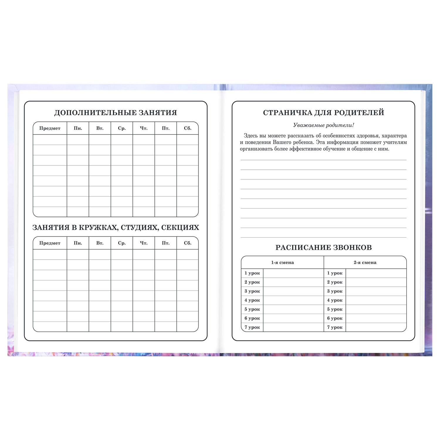Дневник 1-4 класс 48 л., твердый, BRAUBERG, глянцевая ламинация, с подсказом, "Princess" Код товара: 107590 302,45 ₽ Купить Производитель:BRAUBERG Школьный дневник BRAUBERG помогает своевременно фиксировать оценки и домашние задания, замечания по поведению и прилежанию, а также позволяет общаться учителям и родителям. Предназначен для учащихся начальных классов. Твердая обложка надежно защищает бумагу и долго сохраняет привлекательный внешний вид. Изображения с помощью спецэффекта "глянцевая ламинация" становятся более яркими и насыщенными, исключается возможное истирание рисунка. Внутренний блок содержит 48 листов и состоит из офсетной белой бумаги плотностью 60 г/м2. В справочном материале собраны основные подсказки для учащихся.Производство: РоссияТип изделия: дневникТип обложки: твердая обложка 7БЦТип спецэффектов на обложке: глянцевая ламинацияОсновной цвет обложки: с дизайномСерия: PrintДизайн: PrincessПол ребенка: девочкаВнутренний блок: офсетПлотность внутренного блока: 60 г/м2Цвет внутреннего блока: белыйСправочный материал: даВес: 194 грРазмер упаковки: 0.8 × 21.8 × 17.3 смОбъём: 0.0003 м3Промежуточная упаковка: 28 штТранспортная упаковка: 28 штШтрих-код: 4606224542249 Сертификат-1.jpg Сертификат-2.jpg Сертификат-3.jpg