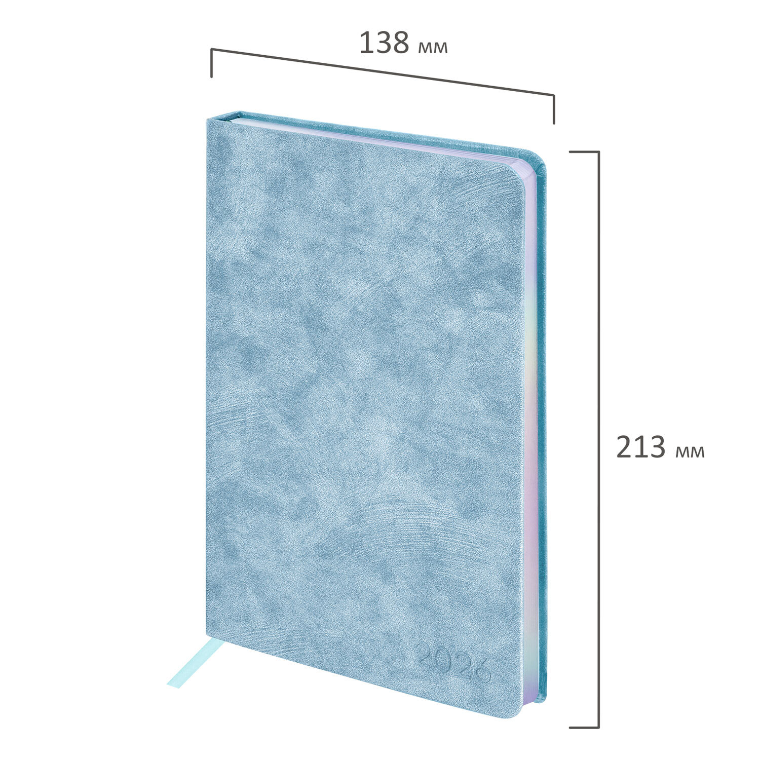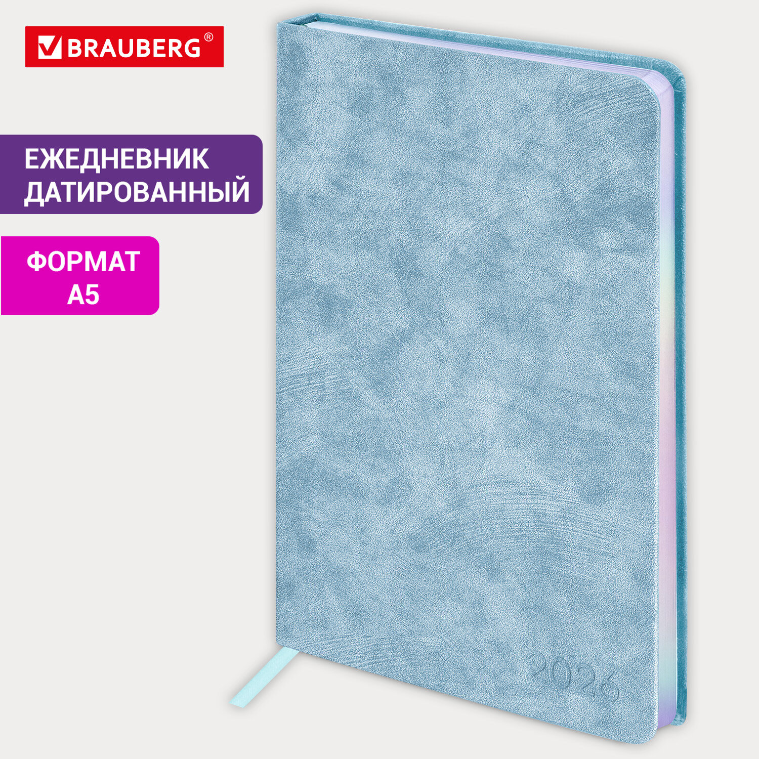 Ежедневник датированный 2026, А5, 138х213 мм, BRAUBERG "Ice", под кожу, голубой Код товара: 117389 503,82 ₽ Купить Производитель:BRAUBERG Ежедневник датированный BRAUBERG "Ice" создан для тех, кому планирование дороже, чем импровизация. Внутренний блок включает 168 листов белой бумаги плотностью 70 г/м2. Каждая страничка имеет перфорированный угол. Благодаря стандартному формату А5 (138х213 мм) датированный ежедневник удобно использовать как в офисе, так и на выездных деловых встречах. Твердая обложка стилизована под текстурную кожу с шиммером. Подходит для горячего тиснения. Дополнением является закладка-ляссе, с помощью которой при необходимости можно быстро открыть ежедневник на нужной странице. Ежедневник снабжен справочным материалом. В конце есть 4 страницы для записей и заметок.Производство: КитайТип ежедневника: датированныйФормат: А5Обложка: под текстурную кожуВид обложки: твердаяКоличество листов: 168 шт.Особенности: закладка-ляссе, перфорация уголков, скругленные углы, справочная информацияСерия: IceГод: 2026Тип застежки: нетОсновной цвет обложки: голубойДополнительный цвет обложки: нетЦвет среза: голографическийЦвет внутреннего блока: белыйПлотность внутреннего блока: 70 г/м2Высота строки для записи: 4 ммТип крепления: сшивкаПечать блока: 2 краскиПодходит для блинтового тиснения: даПодходит для тиснения фольгой: даДлина: 213 ммШирина: 138 ммТолщина: 20 ммВес: 449 грРазмер упаковки: 2.4 × 21.6 × 13.9 смОбъём: 0.0009 м3Промежуточная упаковка: 20 штТранспортная упаковка: 20 штШтрих-код: 4606224489728 Файлы Сертификат-1.jpg Сертификат-2.jpg Сертификат-3.jpg Сертификат-4.jpg Сертификат-5.jpg Сертификат-6.jpg Сертификат-7.jpg Сертификат-8.jpg Сертификат-9.jpg Сертификат-10.jpg Сертификат-11.jpg Сертификат-12.jpg Сертификат-13.jpg Сертификат-14.jpg Сертификат-15.jpg Сертификат-16.jpg Сертификат-17.jpg Сертификат-18.jpg Сертификат-19.jpg Сертификат-20.jpg Сертификат-21.jpg Сертификат-22.jpg Сертификат-23.jpg Сертификат-24.jpg Сертификат-25.jpg Сертификат-26.jpg