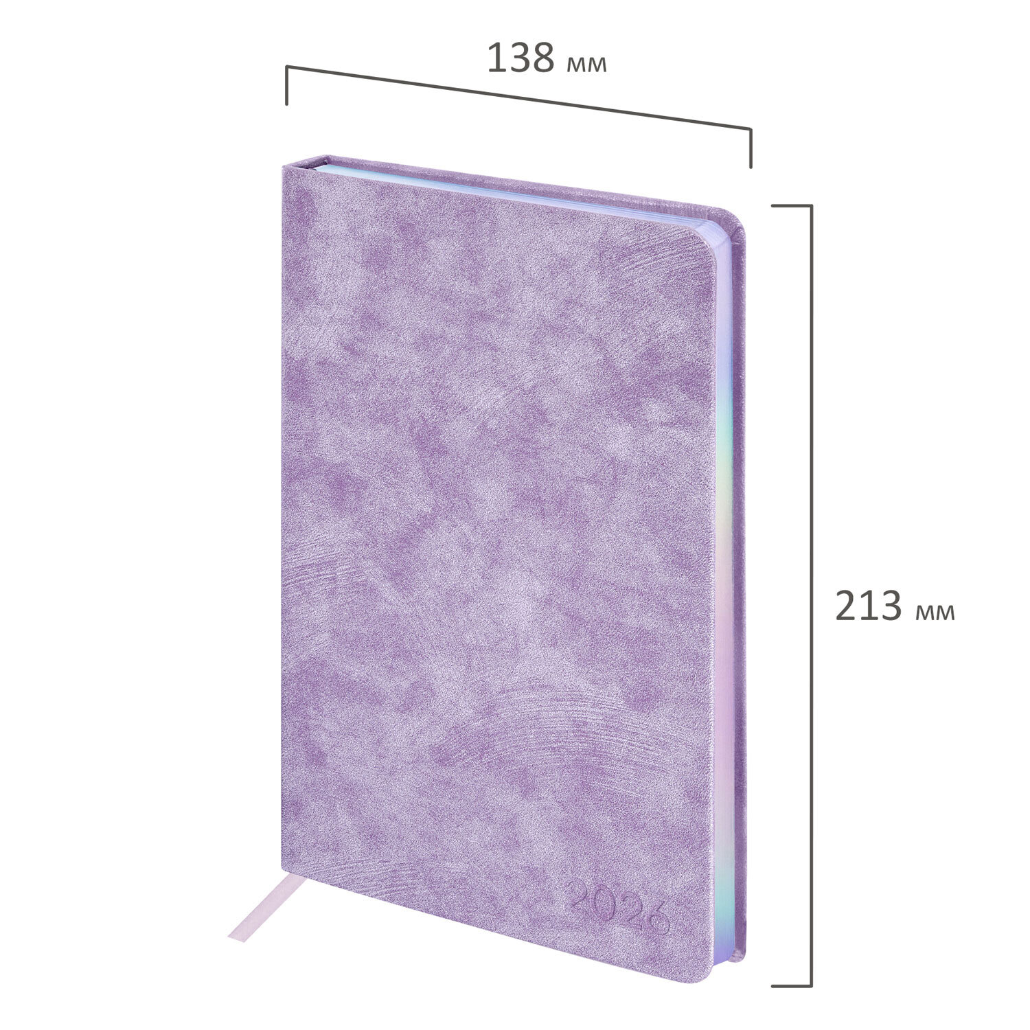 Ежедневник датированный 2026 А5 138х213 мм, BRAUBERG "Ice", под кожу, сиреневый Код товара: 117392 503,82 ₽ Купить Производитель:BRAUBERG Ежедневник датированный BRAUBERG "Ice" создан для тех, кому планирование дороже, чем импровизация. Внутренний блок включает 168 листов белой бумаги плотностью 70 г/м2. Каждая страничка имеет перфорированный угол. Благодаря стандартному формату А5 (138х213 мм) датированный ежедневник удобно использовать как в офисе, так и на выездных деловых встречах. Твердая обложка стилизована под текстурную кожу с шиммером. Подходит для горячего тиснения. Дополнением является закладка-ляссе, с помощью которой при необходимости можно быстро открыть ежедневник на нужной странице. Ежедневник снабжен справочным материалом. В конце есть 4 страницы для записей и заметок.Производство: КитайТип ежедневника: датированныйФормат: А5Обложка: под текстурную кожуВид обложки: твердаяКоличество листов: 168 шт.Особенности: закладка-ляссе, перфорация уголков, скругленные углы, справочная информацияСерия: IceГод: 2026Тип застежки: нетОсновной цвет обложки: сиреневыйДополнительный цвет обложки: нетЦвет среза: голографическийЦвет внутреннего блока: белыйПлотность внутреннего блока: 70 г/м2Высота строки для записи: 4 ммТип крепления: сшивкаПечать блока: 2 краскиПодходит для блинтового тиснения: даПодходит для тиснения фольгой: даДлина: 213 ммШирина: 138 ммТолщина: 20 ммВес: 452 грРазмер упаковки: 2.6 × 21.6 × 14.1 смОбъём: 0.0009 м3Промежуточная упаковка: 20 штТранспортная упаковка: 20 штШтрих-код: 4606224489759 Файлы Сертификат-1.jpg Сертификат-2.jpg Сертификат-3.jpg Сертификат-4.jpg Сертификат-5.jpg Сертификат-6.jpg Сертификат-7.jpg Сертификат-8.jpg Сертификат-9.jpg Сертификат-10.jpg Сертификат-11.jpg Сертификат-12.jpg Сертификат-13.jpg Сертификат-14.jpg Сертификат-15.jpg Сертификат-16.jpg Сертификат-17.jpg Сертификат-18.jpg Сертификат-19.jpg Сертификат-20.jpg Сертификат-21.jpg Сертификат-22.jpg Сертификат-23.jpg Сертификат-24.jpg Сертификат-25.jpg Сертификат-26.jpg