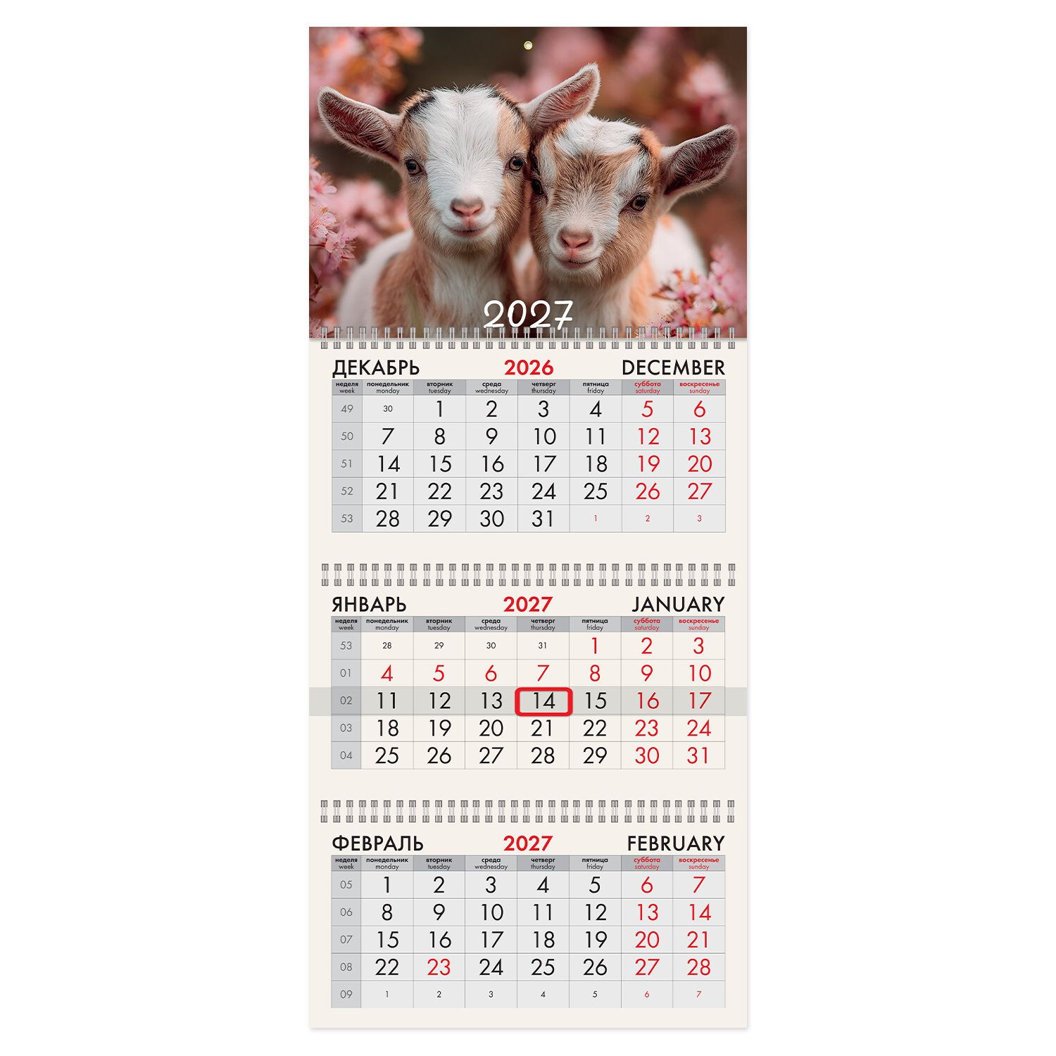 Календарь квартальный 2027г, 3 блока 3 гребня, бегунок, офсет, BRAUBERG, "Козочки" Код товара: 118248 298,35 ₽ Купить Производитель:BRAUBERG Квартальный календарь BRAUBERG "Козочки" предназначен для делового планирования. Офисный календарь на 2027 год на 3 гребнях. Состоит из 3 блоков с календарными сетками на три месяца – предыдущий, текущий и последующий. Блок календаря напечатан на офсетной бумаге плотностью 65 г/м2. Подложка изготовлена из мелованного картона плотностью 250 г/м2. Курсор-бегунок выделяет текущую дату. Вертикальный формат. Размер – 29,5х68,2 см. Поставляется в индивидуальной упаковке (полибег) с европодвесом и прокладкой из гофрокартона, что обеспечивает дополнительную защиту товара.Производство: РоссияТип календаря: квартальный на 3 гребняхГод: 2027Тип скрепления: гребеньРазмер: 29,5х68,2 смВнутренний блок: офсетная бумагаПлотность внутреннего блока: 65 г/м2Подложка: мелованный картонПлотность подложки: 250 г/м2Курсор: даПикколо: даДизайн: КозочкиКалендарная сетка: с разбивкой на 3 месяцаИндивидуальная упаковка: даВес: 250 грРазмер упаковки: 2 × 29.7 × 22.5 смОбъём: 0.0016 м3Промежуточная упаковка: 40 штТранспортная упаковка: 40 штШтрих-код: 4606224527321 Файлы