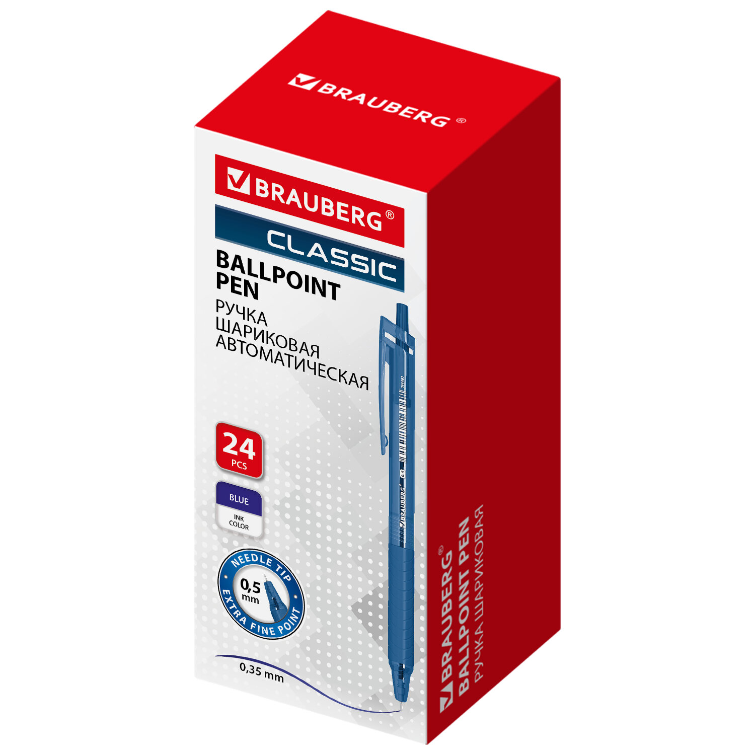 Ручка шариковая автоматическая с грипом BRAUBERG "CLASSIC", СИНЯЯ, пишущий узел 0,5 мм, линия письма 0,35 мм Код товара: 144467 16,24 ₽ Купить Производитель:BRAUBERG Автоматическая шариковая ручка BRAUBERG "CLASSIC" – стильная и функциональная ручка для работы и учебы! Автоматическая шариковая ручка BRAUBERG "CLASSIC" представлена в тонированном тонком синем корпусе. Ручка оснащена удлиненным резиновым держателем для надежного захвата и уверенного письма. Игольчатый наконечник диаметром 0,5 мм обеспечивает точную и аккуратную линию письма толщиной 0,35 мм.Производство: КитайЦвет чернил: синийТолщина линии письма: 0.35 ммДиаметр пишущего узла: 0.5 ммФорма наконечника: игольчатыйДлина сменного стержня: 107 ммЧернила на масляной основе: даКоличество в комплекте: 1 шт.Эргономичная зона захвата: резиновый держательЦвет корпуса: синийДлина письма: 700 мСерия: ClassicДизайн: нетФорма корпуса: круглаяПокрытие корпуса: -Для левшей: даУпаковка: картонная коробкаСрок годности: 60 месВес: 8 грРазмер упаковки: 1 × 14 × 1.4 смПромежуточная упаковка: 24 штТранспортная упаковка: 1152 штШтрих-код: 4606224480947 Сертификат-1.jpg Сертификат-2.jpg
