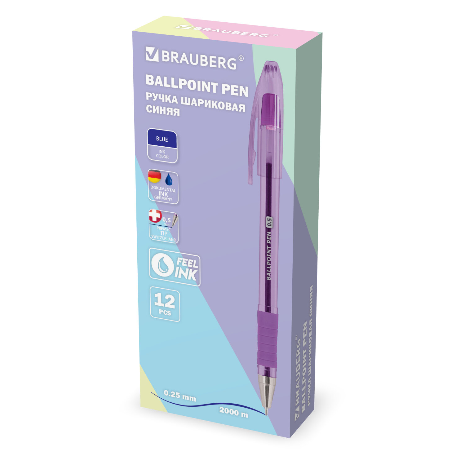 Ручка шариковая масляная с грипом, кросс-серия PASTEL, BRAUBERG, СИНЯЯ, стандартный узел 0,5 мм, линия письма 0,25 мм Код товара: 144488 35,14 ₽ Купить Производитель:BRAUBERG Ручка шариковая масляная BRAUBERG – надежный пишущий инструмент, который идеально подойдет для ведения записей в школе, университете или офисе. Корпус представлен в четырех эстетичных дизайнах пастельных оттенков. Модель изготовлена из высококачественных материалов, сменный стержень длиной 140 мм снабжен швейцарским стандартным наконечником фирмы PREMEC и заправлен немецкими чернилами на масляной основе DOKUMENTAL синего цвета. Удобная прорезиненная зона захвата. Специальная технология FEEL INK гарантирует легкое и четкое письмо без каких-либо усилий. Диаметр стандартного пишущего узла 0,5 мм создает тонкую линию письма, равную 0,25 мм. Благодаря грипу удобство использования ручки возрастает в десятки раз. Тонированный корпус позволяет контролировать уровень чернил.Производство: КитайЦвет чернил: синийКоличество в комплекте: 1 шт.Толщина линии письма: 0.25 ммДиаметр пишущего узла: 0.5 ммЧернила на масляной основе: даФорма наконечника: стандартныйДлина сменного стержня: 140 ммСерия: PASTELСтиль: для офиса и учебыЭргономичная зона захвата: резиновый держательЦвет корпуса: пастельный ассортиДлина письма: 1500 мДизайн: PastelФорма корпуса: круглаяПокрытие корпуса: -Упаковка: картонная коробкаСрок годности: 60 месВес: 10 грРазмер упаковки: 1.1 × 15.1 × 1.5 смПромежуточная упаковка: 12 штТранспортная упаковка: 1728 штШтрих-код: 4606224482460 Сертификат-1.jpg Сертификат-2.jpg