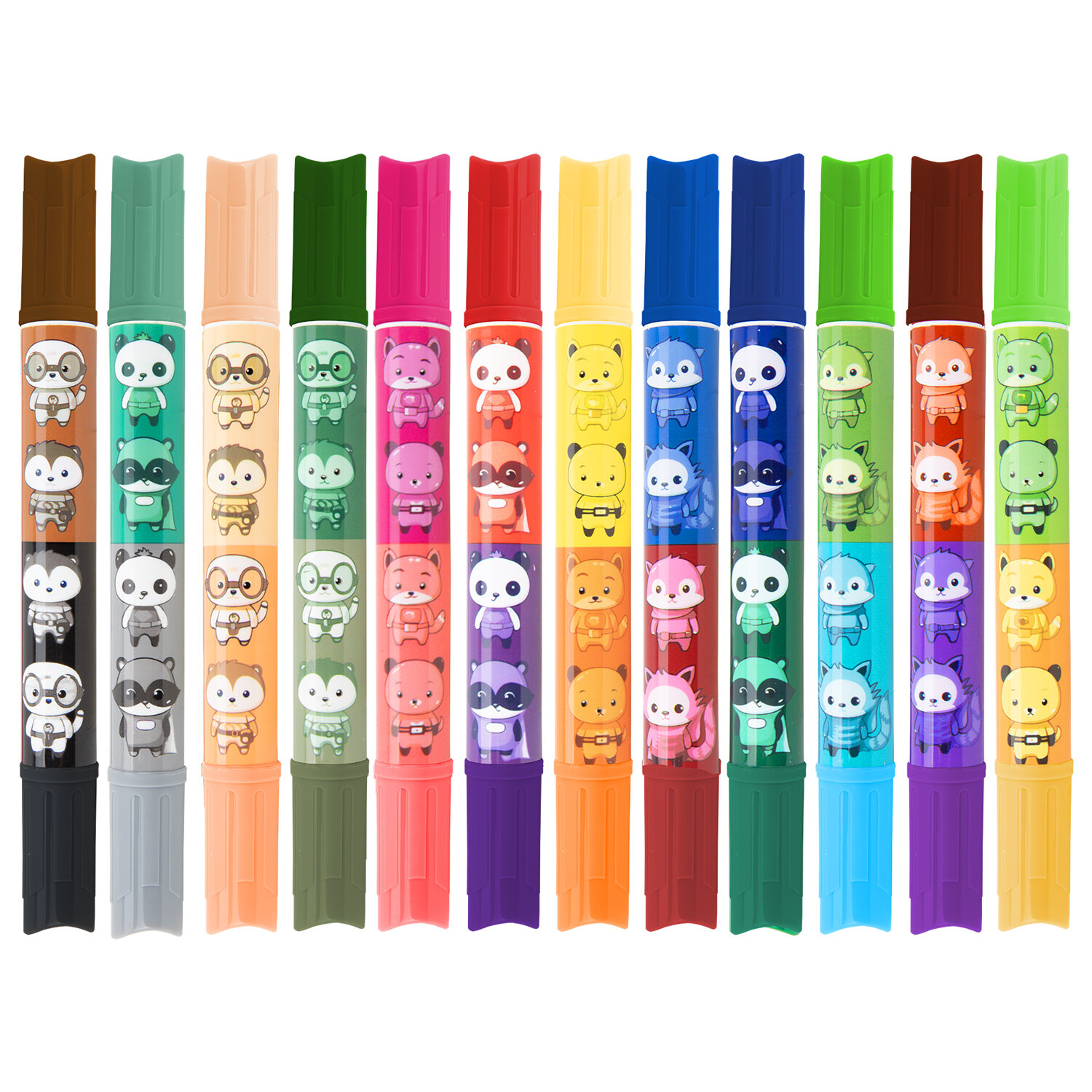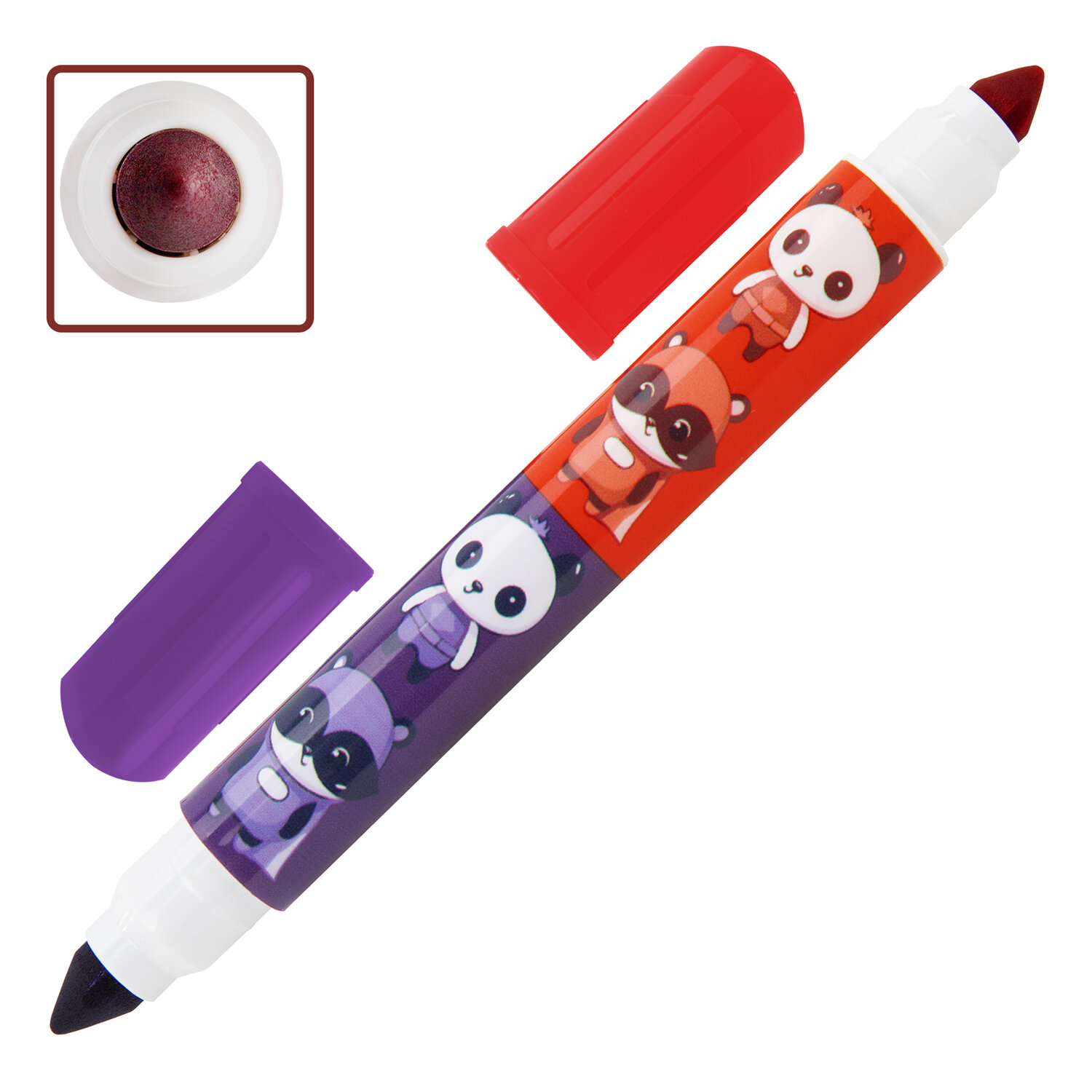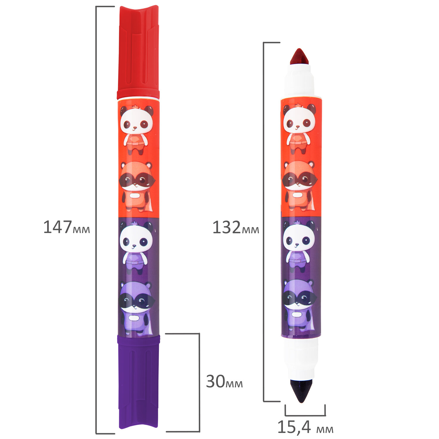 Фломастеры двусторонние толстые для малышей ультрасмываемые 12 штук / 24 цвета, BRAUBERG KIDS Код товара: 152626 455,28 ₽ Купить Производитель:BRAUBERG KIDS Фломастеры двусторонние BRAUBERG KIDS – прекрасные помощники в развитии творческих способностей у детей! Двусторонние толстые фломастеры имеют разные цвета с каждой стороны. На корпусе каждого фломастера нанесён яркий принт с изображением милых зверушек. Утолщенный конический наконечник устойчив к продавливанию, не проваливается внутрь корпуса. Запаса чернил фломастера хватит на 350 метров письма! Быстросохнущие чернила на водной основе безопасны для детей и легко отмываются с кожи и одежды. Круглая форма корпуса с диаметром 15 мм идеально подходит для детских рук. Колпачок оснащен специальными прорезями для вентиляции, которые делают использование фломастеров более безопасным. Рекомендованы для детей от 3-х лет.Производство: КитайКоличество цветов: 24Форма корпуса: круглаяУтолщенный: даЭффект чернил: классическиеДвухсторонний: даТип чернил: ультрасмываемыеСерия: KidsШирина линии письма: 7 ммПишущий узел: 7.8 ммДлина письма: 350 мДлина корпуса: 147 ммДиаметр корпуса: 15.4 ммВентилируемый колпачок: даЗаблокированный пишущий узел: даУпаковка: картонная коробка с европодвесомСрок годности: 60 месВес: 215 грРазмер упаковки: 1.8 × 18 × 19 смОбъём: 0.0007 м3Промежуточная упаковка: 12 штТранспортная упаковка: 72 штШтрих-код: 4606224486024 Файлы Сертификат-1.jpg Сертификат-2.jpg Сертификат-3.jpg