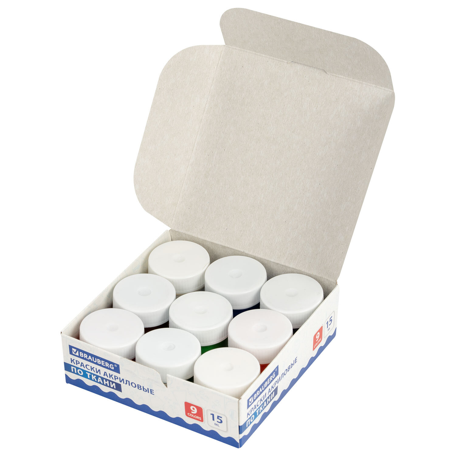 Краски акриловые по ткани 9 цветов по 15 мл, BRAUBERG Код товара: 192691 315,9 ₽ Купить Производитель:BRAUBERG Краски акриловые по ткани BRAUBERG – универсальный рабочий материал для широкой гаммы увлечений. Подходят для декоративно-оформительских работ по ткани. Разбавляются водой (не больше 10% от объема баночки). Обладают высокой кроющей способностью. 9 ярких и насыщенных цветов: белый, желтый, красный, зеленый, синий, черный, желто-зеленый, оранжевый, коричневый. Краски отлично смешиваются, легко наносятся, подходят для кастомизации, не тускнеют после высыхания и не выгорают при воздействии солнечных лучей. При высыхании образуют матовый финиш. Поставляются в баночках объемом 15 мл с закручивающейся крышкой в картонной коробке. Правила ухода за изделием после нанесения краски: - для закрепления рисунка ткань необходимо прогладить с обратной стороны после высыхания краски; - температура стирки 30-40 °C; - умеренная концентрация нейтральных моющих средств (порошок) без отбеливателей; - после стирки не выжимать скручиванием; - при стирке руками, места, где нанесена роспись, не тереть; - перед стиркой изделие лучше вывернуть наизнанку; - сушить в расправленном виде; - не подвергать предварительной стирке (замачиванию); - гладить аккуратно и с изнаночной стороны.Производство: РоссияТип товара: краскиТип краски: акриловые по тканиКоличество цветов в наборе: 9 шт.Цвета: белый, желто-зеленый, желтый, зеленый, коричневый, красный, оранжевый, синий, черныйОбъем фасовки: 15 млСпецэффект цвета: -Фасовка: баночкаСерия: матовые акриловые для рисования и хоббиУпаковка: картонная коробкаСрок годности: 18 месВес: 259 грРазмер упаковки: 4 × 11.8 × 11.5 смОбъём: 0.0008 м3Промежуточная упаковка: 18 штТранспортная упаковка: 18 штШтрих-код: 4606224514727 Файлы Сертификат-1.jpg Сертификат-2.jpg Сертификат-3.jpg Сертификат-4.jpg