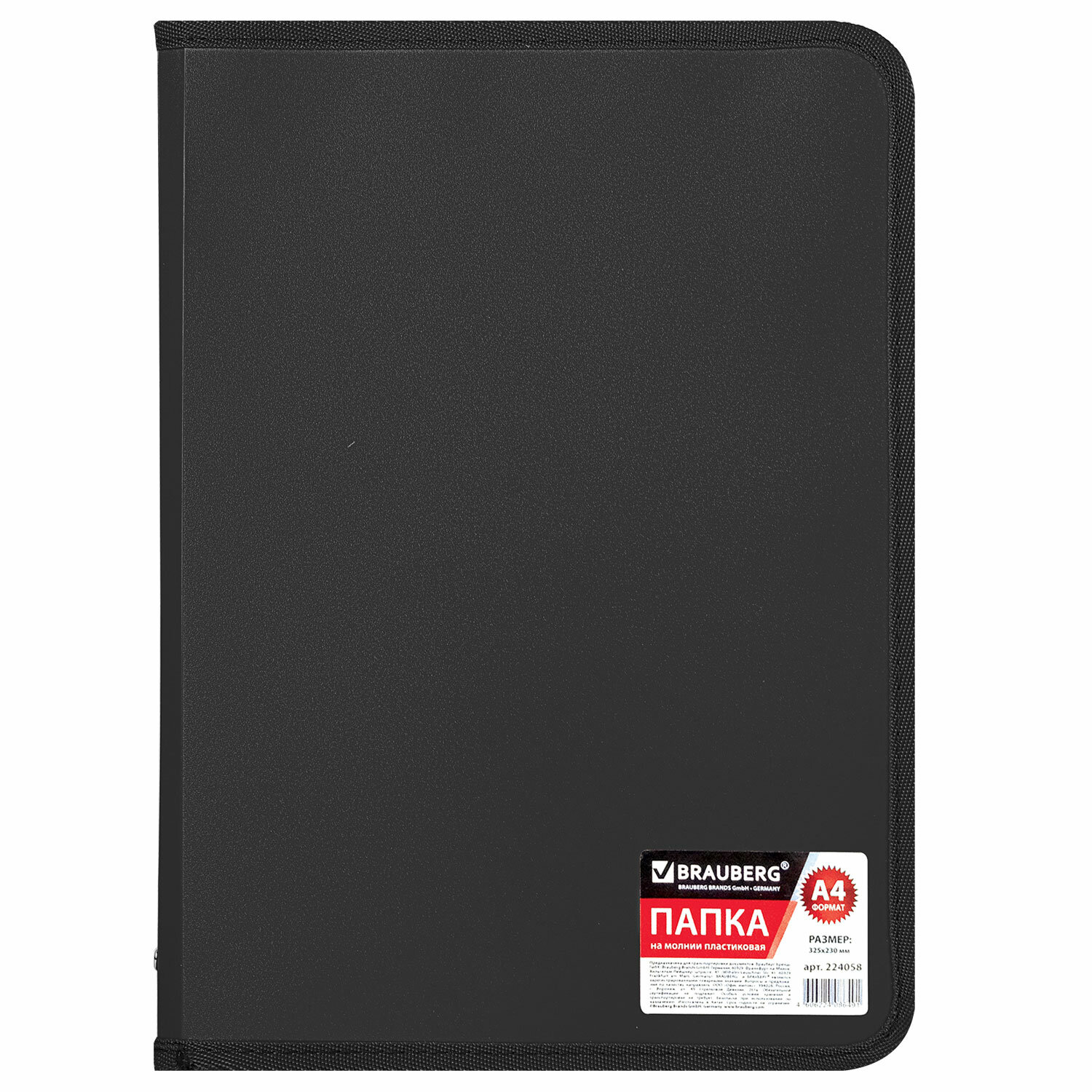 Папка на молнии пластиковая BRAUBERG "Стандарт", стандартная фактура, А4, 325х230 мм, матовая, черная Ликвидация Код товара: 224058 213,64 ₽ Купить Производитель:BRAUBERG Папка на молнии BRAUBERG "Стандарт" предназначена для комфортного хранения и транспортировки документов, тетрадей, различных мелких предметов. Незаменима в работе, учебе, в командировках и деловых поездках, путешествиях. Изготовлена из прочного матового пластика толщиной 0,5 мм. Формат А4 (325х230 мм). Надежный замок-молния защищает документы от механических повреждений, а также пыли и влаги. Цвет папки - черный.Производство: КитайФормат: А4Серия: СтандартОбъемная: даТип пластика: матовыйФактура: песокЦвет пластика: черныйЦвет застежки: черныйЗамок: молнияМатериал: пластикТолщина пластика: 0.5 ммДлина: 325 ммШирина: 230 ммШирина корешка: 20 ммВес: 122 грРазмер упаковки: 1.6 × 32.7 × 24 смОбъём: 0.001 м3Промежуточная упаковка: 12 штТранспортная упаковка: 120 штШтрих-код: 4606224086491 Сертификат-1.jpg Сертификат-2.jpg