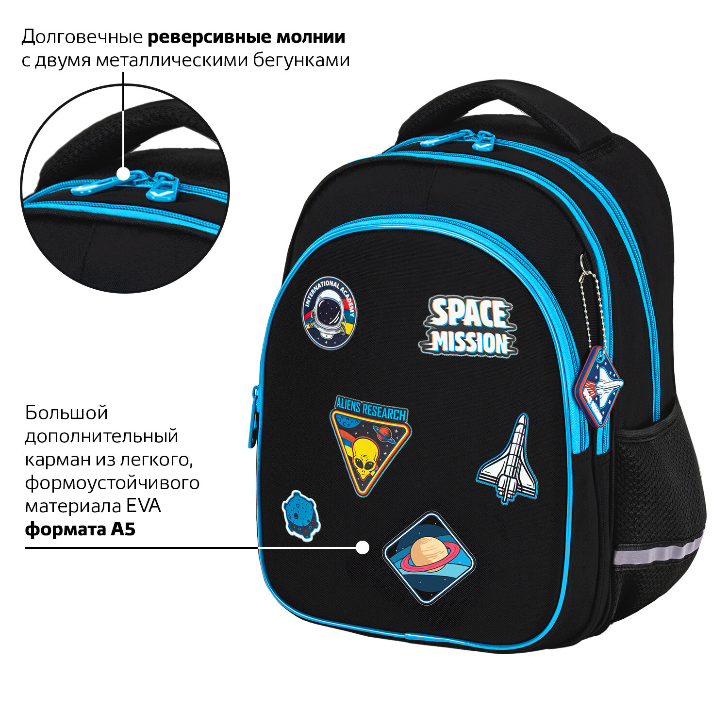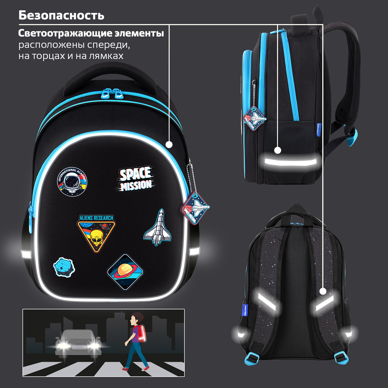 Рюкзак BRAUBERG OPTIMA, 2 отделения, с брелком, "Open space", 36х27х18 см Код товара: 272095 2 446,55 ₽ Купить Производитель:BRAUBERG Серия рюкзаков OPTIMA предназначена для учеников начальной школы. Передний карман рюкзака изготовлен из легкого формоустойчивого материала EVА. Благодаря усиленному дну рюкзак отлично держит форму и защищает содержимое от деформации. Основными преимуществами рюкзака являются вместительность, компактный размер, эргономичность и меньший вес в сравнении с жесткокаркасным ранцем. Рюкзак изготовлен из высококачественной влагоотталкивающей нейлоновой ткани – кордура, в которой за счёт особой структуры нити достигнута четырёхкратная стойкость к истиранию по сравнению с простым нейлоном. Ткань легко чистится. Декоративный брелок-подвеска в подарок! Широкие дышащие лямки имеют S-образную форму, позволяя носить рюкзак с комфортом. Удобная мягкая вентилируемая спинка с воздушными спонжевыми панелями разработана с учетом анатомических особенностей детей младшего и среднего школьного возраста. В процессе эксплуатации равномерное распределение нагрузки позволит сохранить правильную осанку! В основном отделении рюкзака можно легко и быстро разместить учебники и тетради формата А4+, воспользоваться дополнительным карманом. Также в основном отделении находится именная карточка школьника. Фронтальное отделение вмещает тетради и учебники формата А5, внутри находится органайзер для канцтоваров, карман для телефона и отделение из сетки на молнии. Такая организация пространства поможет держать принадлежности в сохранности и приучить ребенка к порядку. Рюкзак легко открывать и закрывать одной рукой с любой стороны – каждое отделение имеет долговечную реверсивную молнию с двумя металлическими бегунками. В боковых карманах на резинке можно разместить бутылочку, термос или зонт. Нести рюкзак будет удобно не только на плечах, но и в руке за прочную уплотненную ручку. Также имеется специальная петелька из плетеной нейлоновой нити, чтобы вешать рюкзак на крючок парты. Светоотражающие элементы рюкзака расположены спереди, на торцах и на лямках. Они необходимы для безопасности пользователя в темное время суток. В основном отделении рюкзака имеется жесткое откидное дно на липучке, которое необходимо для усиления каркаса рюкзака. Яркая этикетка расположена на передней стороне рюкзака, делая его более заметным на полке магазина, а информация на ней отражает главные потребительские свойства, помогая покупателю принять решение о покупке. Рюкзак упакован в плотный ПЭТ-пакет с замком Zip Lock, который сохранит качество и товарный вид изделия при хранении и транспортировке.Производство: КитайПол ребенка: для мальчиковСерия: OPTIMAДизайн: Open spaceВозрастная группа: 7-10 летОбъем: 15 лТип спинки: анатомическая, вентилируемая, формоустойчиваяКоличество отделений: 2Перегородка в основном отделении: даКоличество карманов: 3 шт.Фронтальный карман: даБоковые карманы: даСветоотражающие элементы: даНаличие ручки для переноса: даРегулируемые лямки: даВентилируемые лямки: даМатериал спинки: спонжевые панели анатомической формыМатериал дна: плотная тканьВнутренний органайзер: даПерсонализация: именная карточкаЦвет: черныйУзор: космосВысота: 36 смШирина: 27 смГлубина: 18 смДлина лямок: 72 смВес: 0.64 кгРазмер упаковки: 36 × 27 × 3 смОбъём: 0.0087 м3Промежуточная 