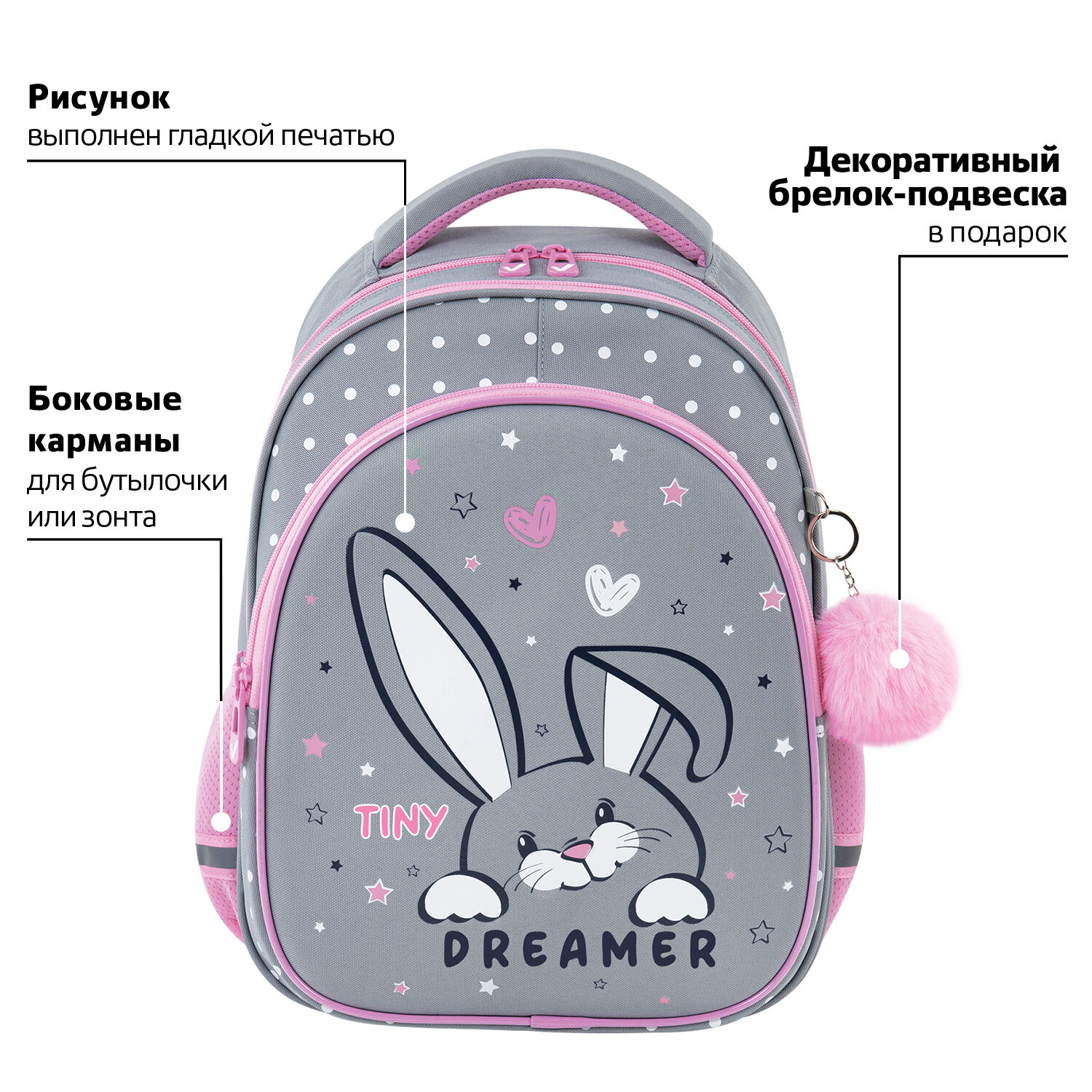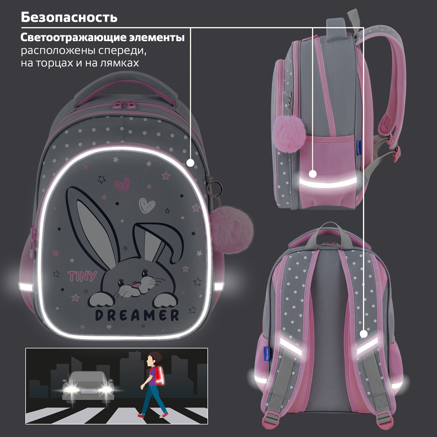 Рюкзак BRAUBERG OPTIMA, 2 отделения, с брелоком, "Curious bunny", 36х27х18 см Код товара: 272098 2 446,55 ₽ Купить Производитель:BRAUBERG Серия рюкзаков OPTIMA предназначена для учеников начальной школы. Передний карман рюкзака изготовлен из легкого формоустойчивого материала EVА. Благодаря усиленному дну рюкзак отлично держит форму и защищает содержимое от деформации. Основными преимуществами рюкзака являются вместительность, компактный размер, эргономичность и меньший вес в сравнении с жесткокаркасным ранцем. Рюкзак изготовлен из высококачественной влагоотталкивающей нейлоновой ткани – кордура, в которой за счёт особой структуры нити достигнута четырёхкратная стойкость к истиранию по сравнению с простым нейлоном. Ткань легко чистится. Декоративный брелок-подвеска в подарок! Широкие дышащие лямки имеют S-образную форму, позволяя носить рюкзак с комфортом. Удобная мягкая вентилируемая спинка с воздушными спонжевыми панелями разработана с учетом анатомических особенностей детей младшего и среднего школьного возраста. В процессе эксплуатации равномерное распределение нагрузки позволит сохранить правильную осанку! В основном отделении рюкзака можно легко и быстро разместить учебники и тетради формата А4+, воспользоваться дополнительным карманом. Также в основном отделении находится именная карточка школьника. Фронтальное отделение вмещает тетради и учебники формата А5, внутри находится органайзер для канцтоваров, карман для телефона и отделение из сетки на молнии. Такая организация пространства поможет держать принадлежности в сохранности и приучить ребенка к порядку. Рюкзак легко открывать и закрывать одной рукой с любой стороны – каждое отделение имеет долговечную реверсивную молнию с двумя металлическими бегунками. В боковых карманах на резинке можно разместить бутылочку, термос или зонт. Нести рюкзак будет удобно не только на плечах, но и в руке за прочную уплотненную ручку. Также имеется специальная петелька из плетеной нейлоновой нити, чтобы вешать рюкзак на крючок парты. Светоотражающие элементы рюкзака расположены спереди, на торцах и на лямках. Они необходимы для безопасности пользователя в темное время суток. В основном отделении рюкзака имеется жесткое откидное дно на липучке, которое необходимо для усиления каркаса рюкзака. Яркая этикетка расположена на передней стороне рюкзака, делая его более заметным на полке магазина, а информация на ней отражает главные потребительские свойства, помогая покупателю принять решение о покупке. Рюкзак упакован в плотный ПЭТ-пакет с замком Zip Lock, который сохранит качество и товарный вид изделия при хранении и транспортировке.Производство: КитайПол ребенка: для девочекСерия: OPTIMAДизайн: Curious bunnyВозрастная группа: 7-10 летОбъем: 15 лТип спинки: анатомическая, вентилируемая, формоустойчиваяКоличество отделений: 2Перегородка в основном отделении: даКоличество карманов: 3 шт.Фронтальный карман: даБоковые карманы: даСветоотражающие элементы: даНаличие ручки для переноса: даРегулируемые лямки: даВентилируемые лямки: даМатериал спинки: спонжевые панели анатомической формыМатериал дна: плотная тканьВнутренний органайзер: даПерсонализация: именная карточкаЦвет: серыйУзор: ЗайчикВысота: 36 смШирина: 27 смГлубина: 18 смДлина лямок: 72 смВес: 0.64 кгРазмер упаковки: 36 × 27 × 3 смОбъём: 0.0087 м3Промежуточная