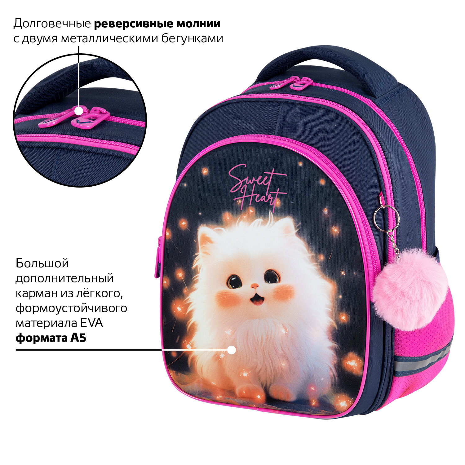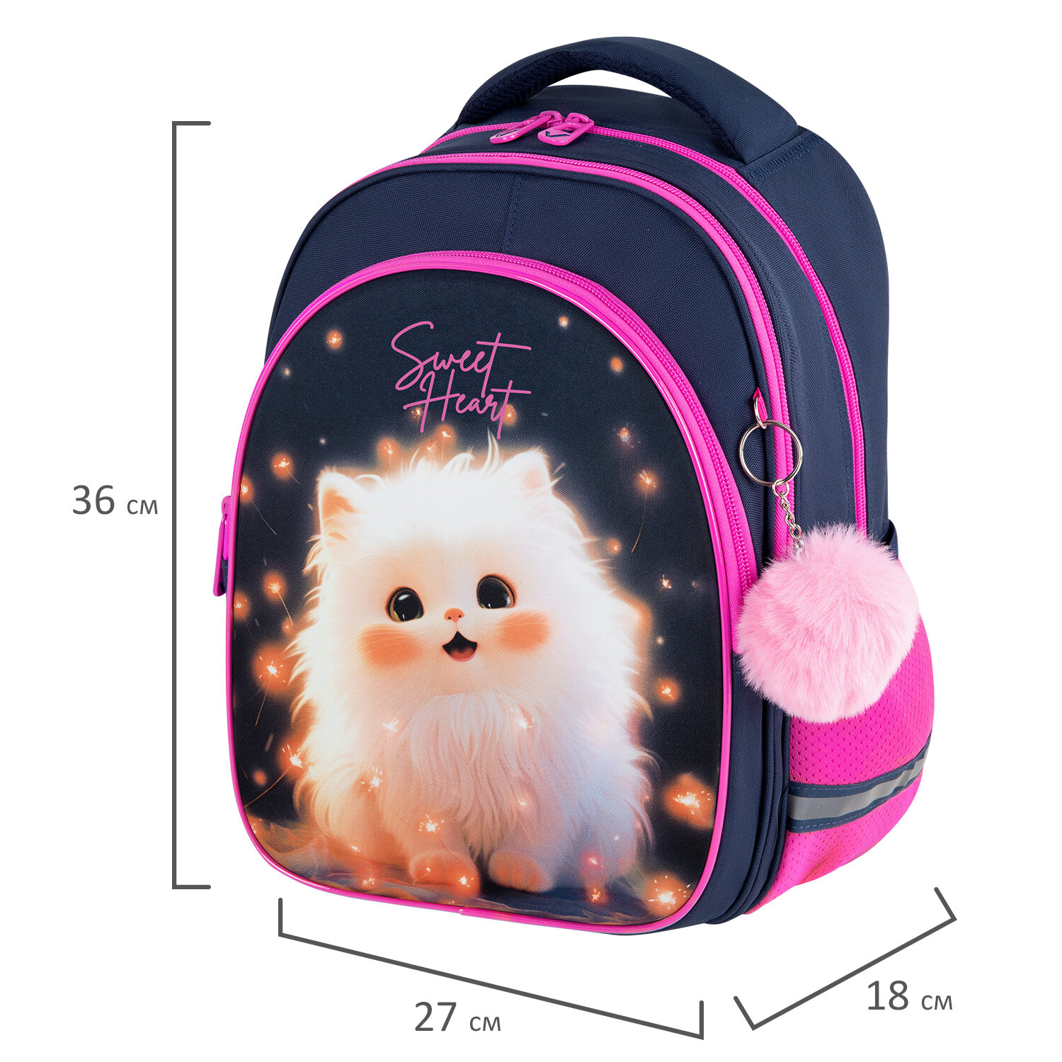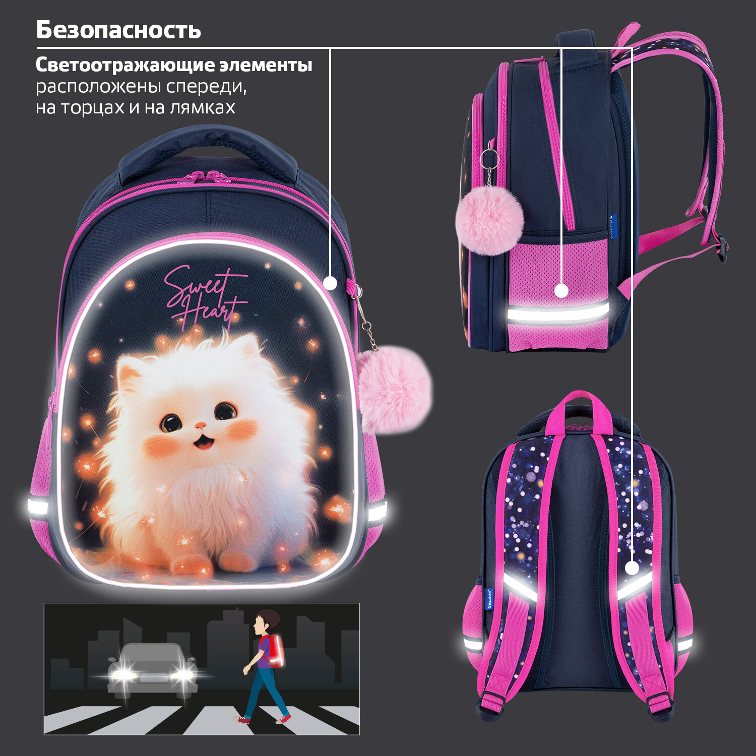 Рюкзак BRAUBERG OPTIMA, 2 отделения, с брелоком, "Tiny beauty", 36х27х18 см Код товара: 273155 2 446,55 ₽ Купить Производитель:BRAUBERG Серия рюкзаков "OPTIMA" предназначена для учеников начальной школы. Передний карман рюкзака изготовлен из легкого формоустойчивого материала EVА. Благодаря усиленному дну рюкзак отлично держит форму и защищает содержимое от деформации. Основными преимуществами рюкзака являются вместительность, компактный размер, эргономичность и меньший вес по сравнению с жесткокаркасным ранцем. Рюкзак изготовлен из высококачественной влагоотталкивающей нейлоновой ткани – кордура, в которой за счёт особой структуры нити достигнута четырёхкратная стойкость к истиранию по сравнению с обычным нейлоном. Ткань легко чистится. Декоративный брелок-подвеска в подарок! Широкие дышащие лямки имеют S-образную форму, что обеспечивает комфорт при ношении рюкзака. Удобная мягкая вентилируемая спинка с воздушными спонжевыми панелями разработана с учётом анатомических особенностей детей младшего и среднего школьного возраста. В процессе эксплуатации равномерное распределение нагрузки поможет сохранить правильную осанку. В основном отделении рюкзака можно легко разместить учебники и тетради формата А4+, воспользоваться дополнительным карманом. Также в основном отделении находится именная карточка школьника. Фронтальное отделение вмещает тетради и учебники формата А5; внутри расположены органайзер для канцтоваров, карман для телефона и отделение из сетки на молнии. Такая организация пространства поможет сохранить принадлежности в порядке и приучить ребёнка к аккуратности. Рюкзак легко открывать и закрывать одной рукой с любой стороны – каждое отделение оснащено долговечной реверсивной молнией с двумя металлическими бегунками. В боковых карманах на резинке можно разместить бутылочку, термос или зонт. Нести рюкзак будет удобно не только на плечах, но и в руке благодаря прочной уплотнённой ручке. Также имеется специальная петелька из плетёной нейлоновой нити для подвешивания рюкзака на крючок парты. Светоотражающие элементы расположены спереди, на торцах и на лямках. Они обеспечивают безопасность пользователя в тёмное время суток. В основном отделении рюкзака предусмотрено жёсткое откидное дно на липучке, которое усиливает каркас рюкзака. Яркая этикетка на передней стороне рюкзака делает его более заметным на полке магазина, а информация на ней отражает ключевые потребительские свойства, помогая покупателю принять решение о покупке. Рюкзак упакован в плотный ПЭТ-пакет с замком Zip Lock, который сохраняет качество и товарный вид изделия при хранении и транспортировке.Производство: КитайПол ребенка: для девочекСерия: OPTIMAДизайн: Tiny beautyВозрастная группа: 7-10 летОбъем: 15 лТип спинки: анатомическая, вентилируемая, формоустойчиваяКоличество отделений: 2Перегородка в основном отделении: даКоличество карманов: 3 шт.Фронтальный карман: даБоковые карманы: даСветоотражающие элементы: даНаличие ручки для переноса: даРегулируемые лямки: даВентилируемые лямки: даМатериал спинки: спонжевые панели анатомической формыМатериал дна: плотная тканьВнутренний органайзер: даПерсонализация: именная карточкаЦвет: темно-синийУзор: кошкаВысота: 36 смШирина: 27 смГлубина: 18 смДлина лямок: 72 смВес: 0.64 кгРазмер упаковки: 36 × 27 × 3 смОбъём: 0.0087 м3Промежуточная 