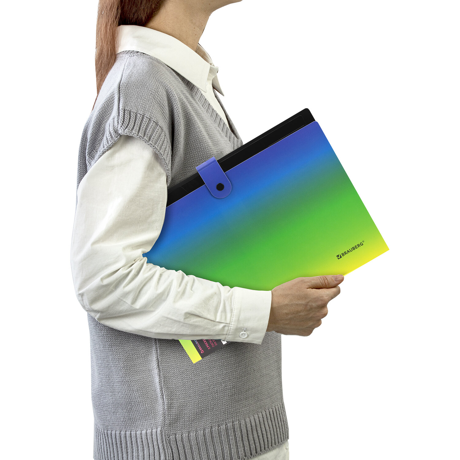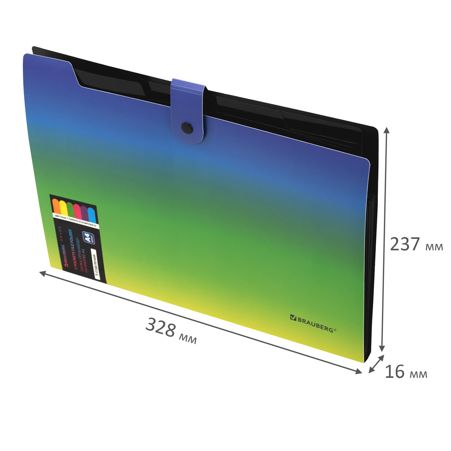 Папка-органайзер на кнопке 5 отделений, BRAUBERG GRADE, A4, зелено-голубой градиент Код товара: 274092 261,16 ₽ Купить Производитель:BRAUBERG Папка-органайзер BRAUBERG GRADE предназначена для хранения, транспортировки и систематизации ваших документов и ценных бумаг. Благодаря своей компактности и вместительности незаменима в учебе, работе, деловых поездках, командировках и путешествиях. Папка-органайзер изготовлена из качественного пластика толщиной 0,5 мм с ярким градиентным дизайном и с фактурой "песок", снабжена разделителями черного цвета. Имеет 5 отделений с ярлыками на разделителях и стикерами (в комплекте), что упрощает процесс поиска нужного документа и позволяет структурировать информацию. Удобный и надежный замок-кнопка дает возможность быстро открывать и закрывать папку, не позволяя содержимому выпасть, и защищает его от влаги, пыли и механических повреждений. Органайзер отлично подойдет для хранения личных и офисных документов, школьных тетрадей, рисунков, тетрадей для нот, курсовых работ и многого другого.Производство: КитайФормат: А4Серия: GRADEКоличество отделений: 5 шт.Фактура: песокЗастежка: КнопкаКоличество карманов: 0 шт.Толщина материала: 0.5 ммИндексные ярлычки: даВысота: 237 ммШирина: 328 ммГлубина: 16 ммМатериал: полипропиленЦвет: зелено-голубой градиентВес: 141 грРазмер упаковки: 2 × 32.9 × 24.5 смОбъём: 0.0012 м3Промежуточная упаковка: 24 штТранспортная упаковка: 24 штШтрих-код: 4606224514505 Файлы Сертификат-1.jpg Сертификат-2.jpg Сертификат-3.jpg Сертификат-4.jpg Сертификат-5.jpg Сертификат-6.jpg Сертификат-7.jpg Сертификат-8.jpg Сертификат-9.jpg Сертификат-10.jpg Сертификат-11.jpg Сертификат-12.jpg Сертификат-13.jpg Сертификат-14.jpg Сертификат-15.jpg Сертификат-16.jpg Сертификат-17.jpg Сертификат-18.jpg Сертификат-19.jpg Сертификат-20.jpg Сертификат-21.jpg Сертификат-22.jpg Сертификат-23.jpg Сертификат-24.jpg Сертификат-25.jpg Сертификат-26.jpg Сертификат-27.jpg Сертификат-28.jpg
