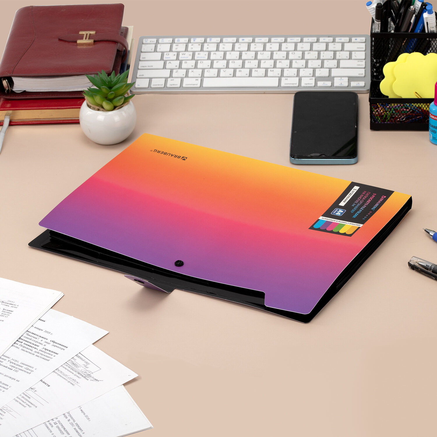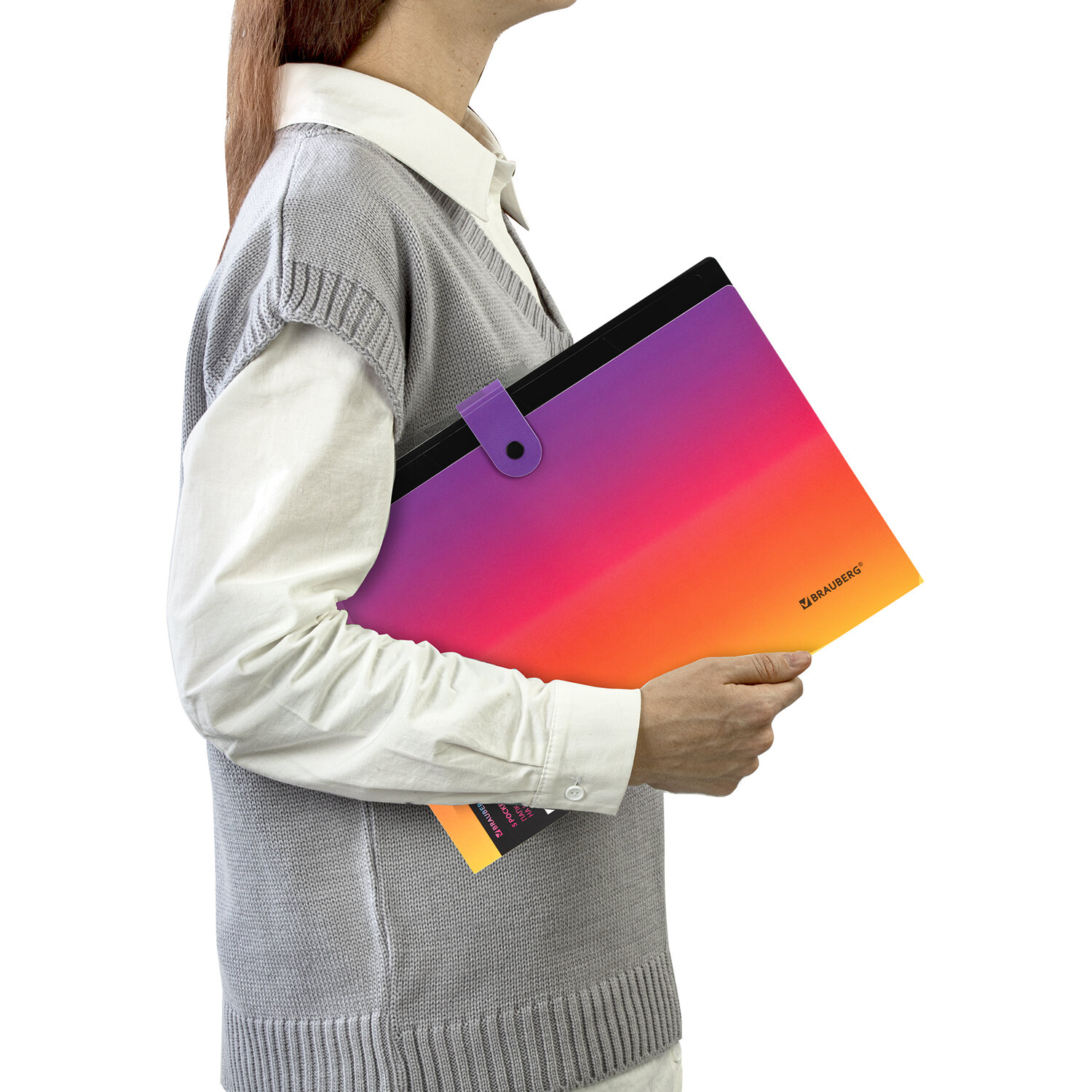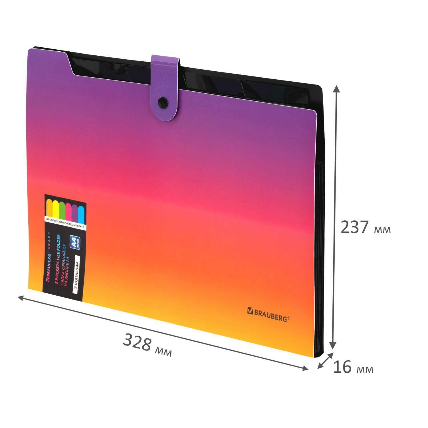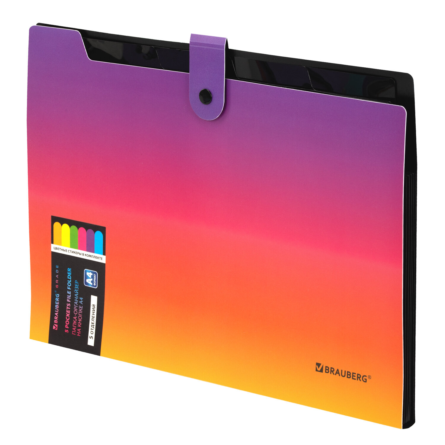 Папка-органайзер на кнопке 5 отделений, BRAUBERG GRADE, A4, желто-розовый градиент Код товара: 274093 261,16 ₽ Купить Производитель:BRAUBERG Папка-органайзер BRAUBERG GRADE предназначена для хранения, транспортировки и систематизации ваших документов и ценных бумаг. Благодаря своей компактности и вместительности незаменима в учебе, работе, деловых поездках, командировках и путешествиях. Папка-органайзер изготовлена из качественного пластика толщиной 0,5 мм с ярким градиентным дизайном и с фактурой "песок", снабжена разделителями черного цвета. Имеет 5 отделений с ярлыками на разделителях и стикерами (в комплекте), что упрощает процесс поиска нужного документа и позволяет структурировать информацию. Удобный и надежный замок-кнопка дает возможность быстро открывать и закрывать папку, не позволяя содержимому выпасть, и защищает его от влаги, пыли и механических повреждений. Органайзер отлично подойдет для хранения личных и офисных документов, школьных тетрадей, рисунков, тетрадей для нот, курсовых работ и многого другого.Производство: КитайФормат: А4Серия: GRADEКоличество отделений: 5 шт.Фактура: песокЗастежка: КнопкаКоличество карманов: 0 шт.Толщина материала: 0.5 ммИндексные ярлычки: даВысота: 237 ммШирина: 328 ммГлубина: 16 ммМатериал: полипропиленЦвет: желто-розовый градиентВес: 142 грРазмер упаковки: 1.9 × 32.9 × 24.6 смОбъём: 0.0012 м3Промежуточная упаковка: 24 штТранспортная упаковка: 24 штШтрих-код: 4606224514512 Файлы Сертификат-1.jpg Сертификат-2.jpg Сертификат-3.jpg Сертификат-4.jpg Сертификат-5.jpg Сертификат-6.jpg Сертификат-7.jpg Сертификат-8.jpg Сертификат-9.jpg Сертификат-10.jpg Сертификат-11.jpg Сертификат-12.jpg Сертификат-13.jpg Сертификат-14.jpg Сертификат-15.jpg Сертификат-16.jpg Сертификат-17.jpg Сертификат-18.jpg Сертификат-19.jpg Сертификат-20.jpg Сертификат-21.jpg Сертификат-22.jpg Сертификат-23.jpg Сертификат-24.jpg Сертификат-25.jpg Сертификат-26.jpg Сертификат-27.jpg Сертификат-28.jpg