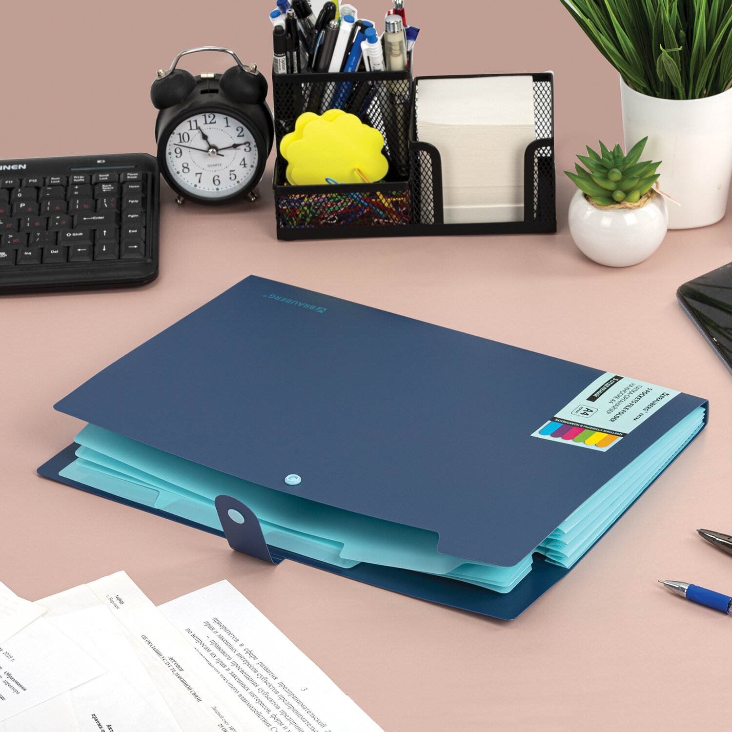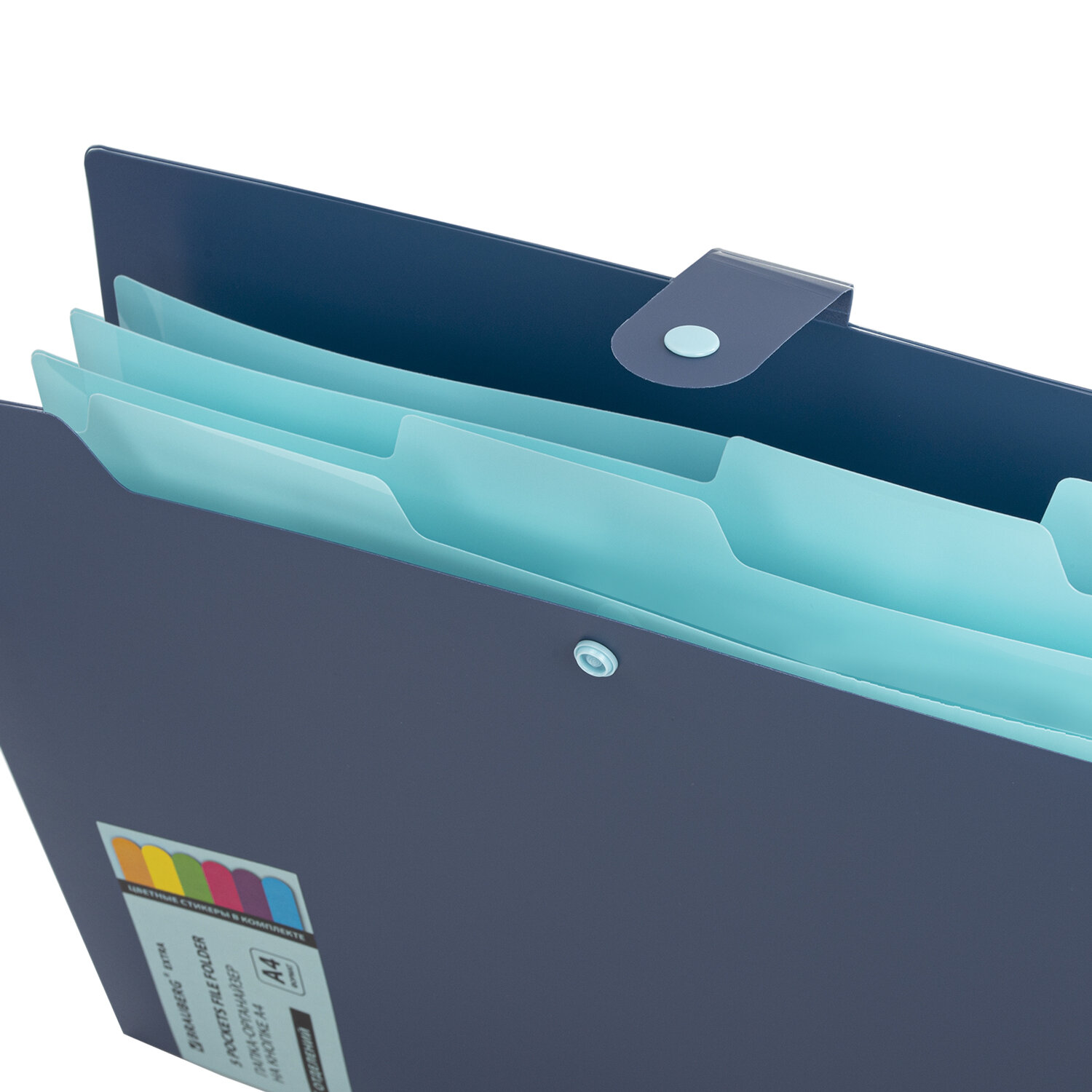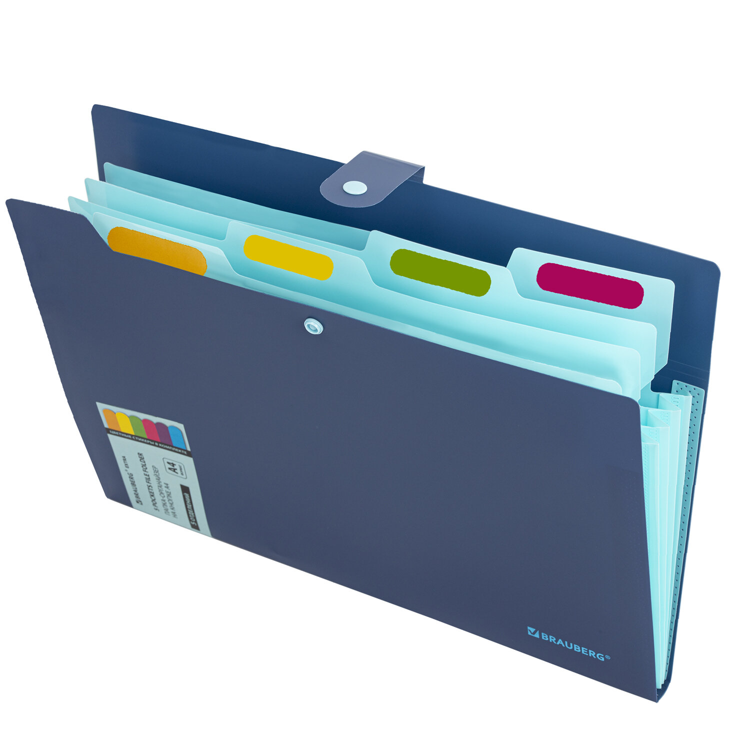 Папка-органайзер на кнопке 5 отделений, BRAUBERG "Extra", А4, синяя с голубым Код товара: 274096 261,16 ₽ Купить Производитель:BRAUBERG Папка-органайзер BRAUBERG "Extra" предназначена для хранения, транспортировки и систематизации ваших документов и ценных бумаг. Благодаря своей компактности и вместительности незаменима в учебе, работе, деловых поездках, командировках и путешествиях. Папка-органайзер изготовлена из качественного пластика солидного синего цвета толщиной 0,5 мм с фактурой "песок", снабжена разделителями голубого цвета. Имеет 5 отделений с ярлыками на разделителях и яркими стикерами (в комплекте), что существенно упрощает процесс поиска нужного документа и позволяет структурировать информацию. Удобный и надежный замок-кнопка дает возможность быстро открывать и закрывать папку, не позволяя содержимому выпасть, и защищает его от влаги, пыли и механических повреждений. Органайзер отлично подойдет для хранения паспортов, СНИЛС, свидетельств о рождении, дипломов, ИНН, офисных документов, школьных тетрадей, рисунков, тетрадей для нот, курсовых работ и многого другого.Производство: КитайФормат: А4Серия: EXTRAКоличество отделений: 5 шт.Фактура: песокЗастежка: КнопкаКоличество карманов: 0 шт.Толщина материала: 0.5 ммИндексные ярлычки: даВысота: 237 ммШирина: 328 ммГлубина: 16 ммМатериал: полипропиленЦвет: голубой/синийВес: 139 грРазмер упаковки: 1.9 × 32.9 × 24.5 смОбъём: 0.0012 м3Промежуточная упаковка: 24 штТранспортная упаковка: 24 штШтрих-код: 4606224514543 Файлы Сертификат-1.jpg Сертификат-2.jpg Сертификат-3.jpg Сертификат-4.jpg Сертификат-5.jpg Сертификат-6.jpg Сертификат-7.jpg Сертификат-8.jpg Сертификат-9.jpg Сертификат-10.jpg Сертификат-11.jpg Сертификат-12.jpg Сертификат-13.jpg Сертификат-14.jpg Сертификат-15.jpg Сертификат-16.jpg Сертификат-17.jpg Сертификат-18.jpg Сертификат-19.jpg Сертификат-20.jpg Сертификат-21.jpg Сертификат-22.jpg Сертификат-23.jpg Сертификат-24.jpg Сертификат-25.jpg Сертификат-26.jpg Сертификат-27.jpg Сертификат-28.jpg