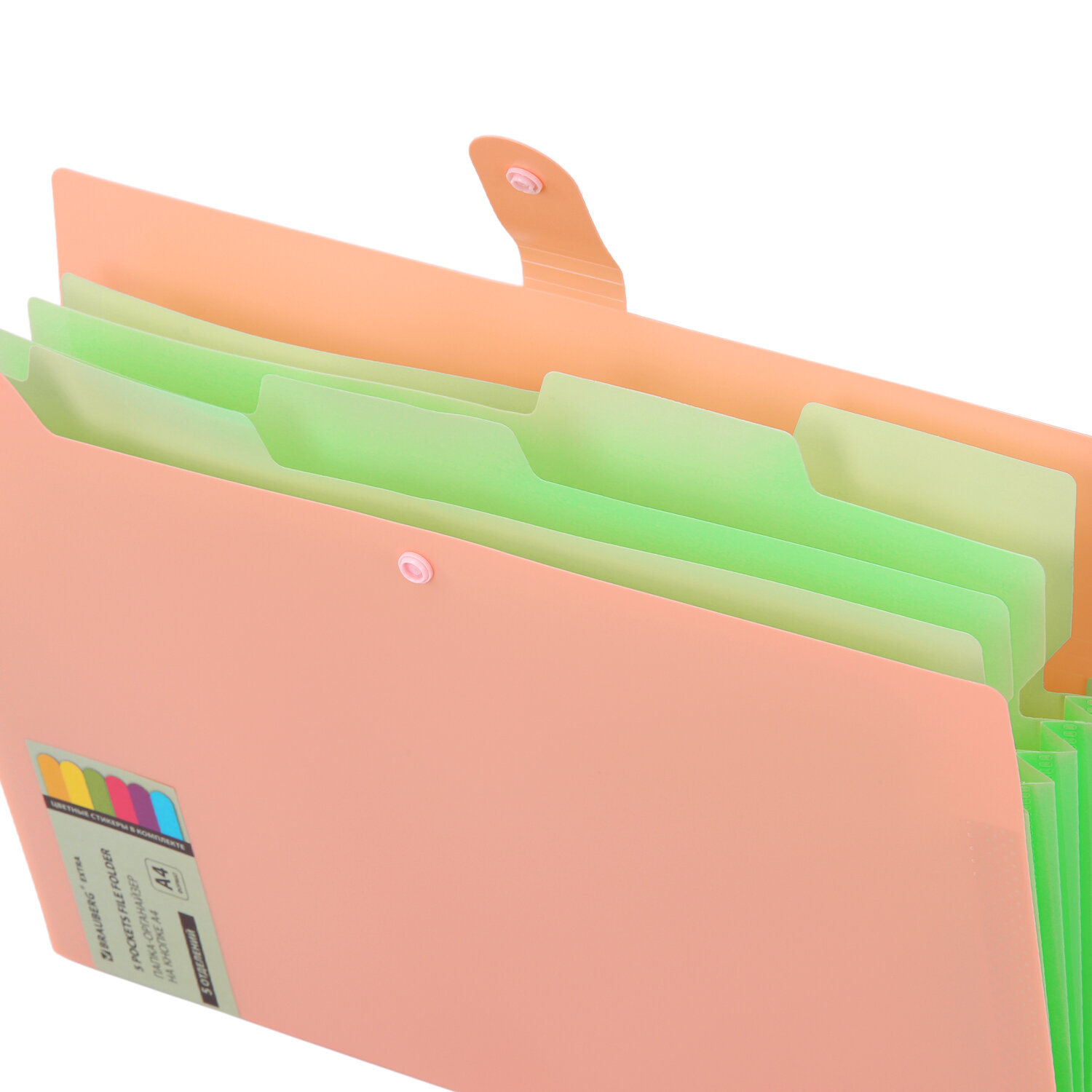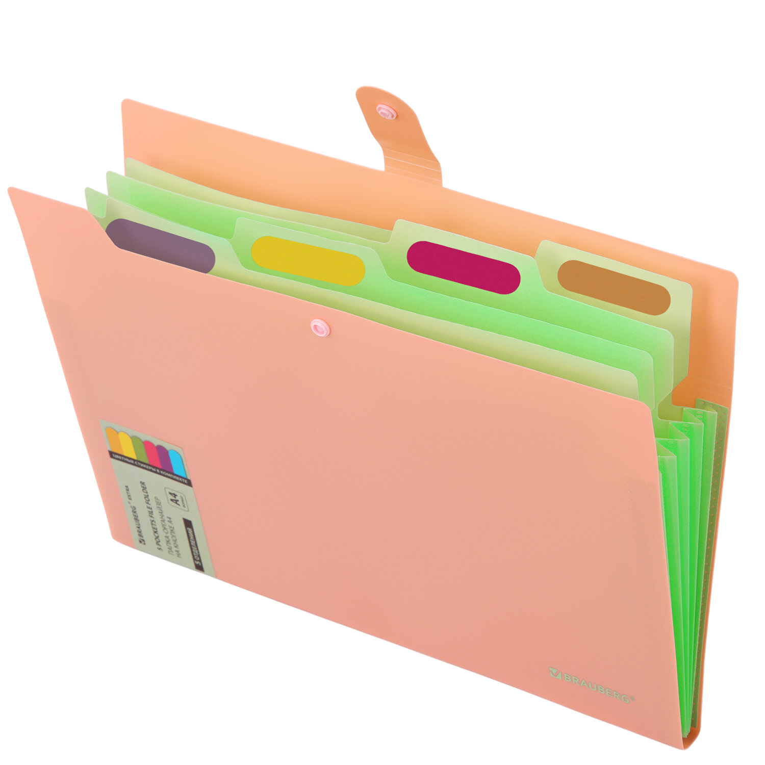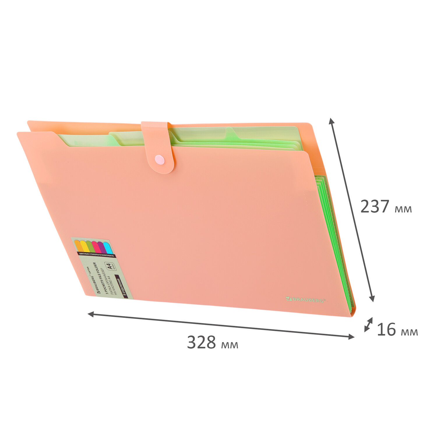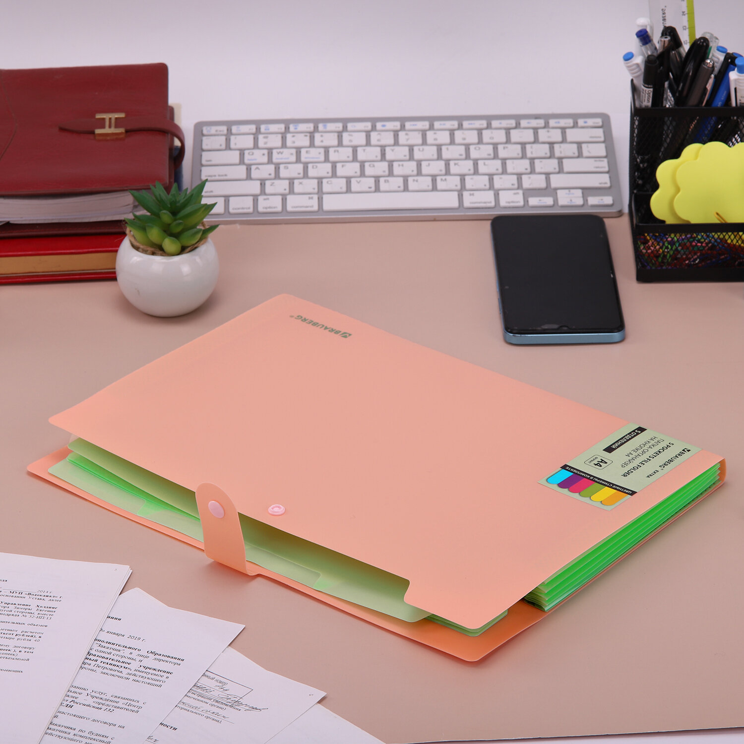 Папка-органайзер на кнопке 5 отделений, BRAUBERG "Extra", А4, персиковая с мятным Код товара: 274097 261,16 ₽ Купить Производитель:BRAUBERG Папка-органайзер BRAUBERG "Extra" предназначена для хранения, транспортировки и систематизации ваших документов и ценных бумаг. Благодаря своей компактности и вместительности незаменима в учебе, работе, деловых поездках, командировках и путешествиях. Папка-органайзер изготовлена из качественного пластика привлекательного персикового цвета толщиной 0,5 мм с фактурой "песок", снабжена разделителями мятного цвета. Имеет 5 отделений с ярлыками на разделителях и яркими стикерами (в комплекте), что существенно упрощает процесс поиска нужного документа и позволяет структурировать информацию. Удобный и надежный замок-кнопка дает возможность быстро открывать и закрывать папку, не позволяя содержимому выпасть, и защищает его от влаги, пыли и механических повреждений. Органайзер отлично подойдет для хранения паспортов, СНИЛС, свидетельств о рождении, дипломов, ИНН, офисных документов, школьных тетрадей, рисунков, тетрадей для нот, курсовых работ и многого другого.Производство: КитайФормат: А4Серия: EXTRAКоличество отделений: 5 шт.Фактура: песокЗастежка: КнопкаКоличество карманов: 0 шт.Толщина материала: 0.5 ммИндексные ярлычки: даВысота: 237 ммШирина: 328 ммГлубина: 16 ммМатериал: полипропиленЦвет: мятный/розовыйВес: 140 грРазмер упаковки: 2 × 32.9 × 24.4 смОбъём: 0.0012 м3Промежуточная упаковка: 24 штТранспортная упаковка: 24 штШтрих-код: 4606224514550 Файлы Сертификат-1.jpg Сертификат-2.jpg Сертификат-3.jpg Сертификат-4.jpg Сертификат-5.jpg Сертификат-6.jpg Сертификат-7.jpg Сертификат-8.jpg Сертификат-9.jpg Сертификат-10.jpg Сертификат-11.jpg Сертификат-12.jpg Сертификат-13.jpg Сертификат-14.jpg Сертификат-15.jpg Сертификат-16.jpg Сертификат-17.jpg Сертификат-18.jpg Сертификат-19.jpg Сертификат-20.jpg Сертификат-21.jpg Сертификат-22.jpg Сертификат-23.jpg Сертификат-24.jpg Сертификат-25.jpg Сертификат-26.jpg Сертификат-27.jpg Сертификат-28.jpg