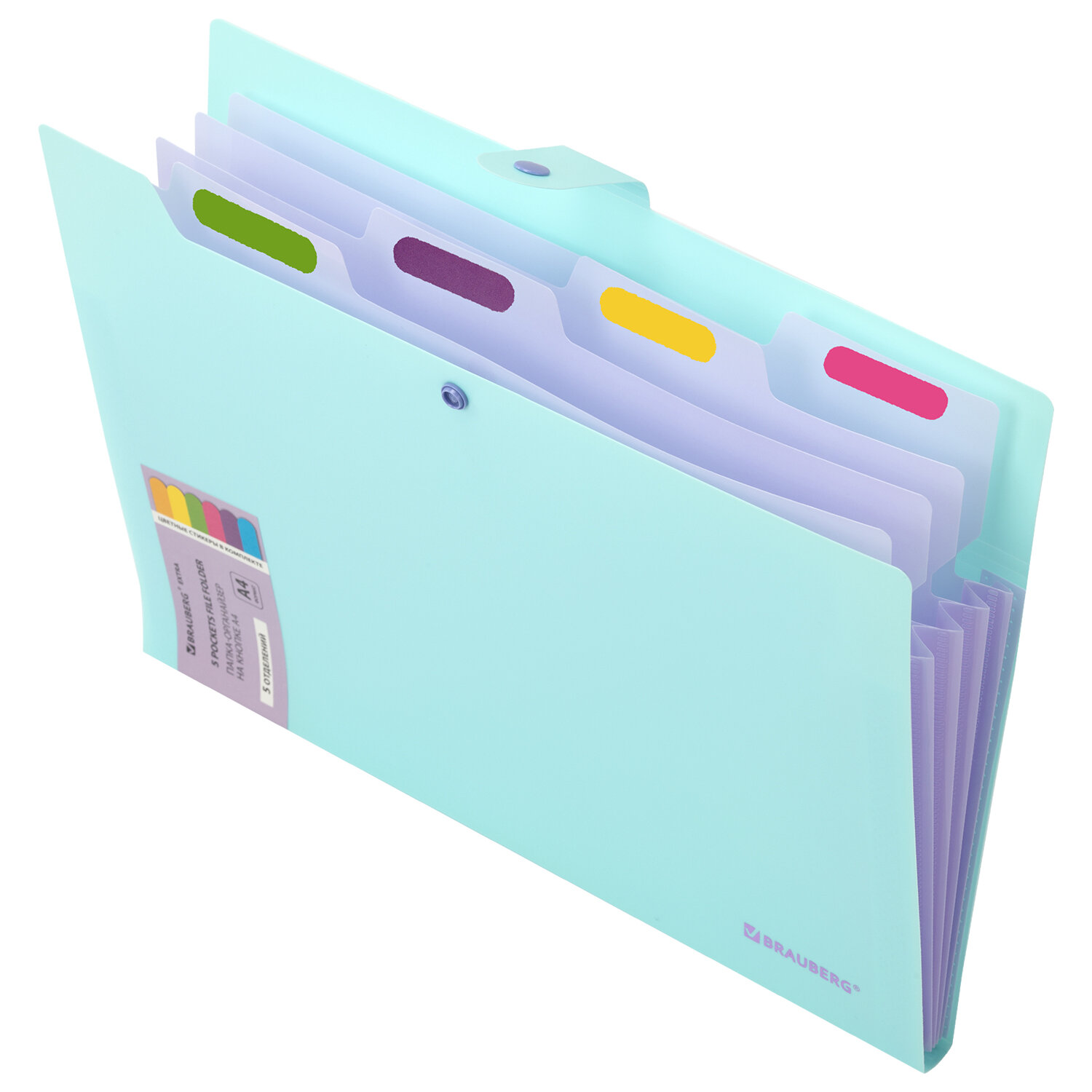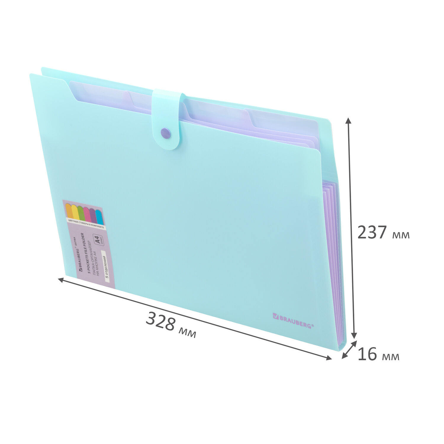 Папка-органайзер на кнопке 5 отделений, BRAUBERG "Extra", А4, голубая с лиловым Код товара: 274099 261,16 ₽ Купить Производитель:BRAUBERG Папка-органайзер BRAUBERG "Extra" предназначена для хранения, транспортировки и систематизации ваших документов и ценных бумаг. Благодаря своей компактности и вместительности незаменима в учебе, работе, деловых поездках, командировках и путешествиях. Папка-органайзер изготовлена из качественного пластика голубого цвета толщиной 0,5 мм с фактурой "песок", снабжена разделителями лилового цвета. Имеет 5 отделений с ярлыками на разделителях и яркими стикерами (в комплекте), что существенно упрощает процесс поиска нужного документа и позволяет структурировать информацию. Удобный и надежный замок-кнопка дает возможность быстро открывать и закрывать папку, не позволяя содержимому выпасть, и защищает его от влаги, пыли и механических повреждений. Органайзер отлично подойдет для хранения паспортов, СНИЛС, свидетельств о рождении, дипломов, ИНН, офисных документов, школьных тетрадей, рисунков, тетрадей для нот, курсовых работ и многого другого.Производство: КитайФормат: А4Серия: EXTRAКоличество отделений: 5 шт.Фактура: песокЗастежка: КнопкаКоличество карманов: 0 шт.Толщина материала: 0.5 ммИндексные ярлычки: даВысота: 237 ммШирина: 328 ммГлубина: 16 ммМатериал: полипропиленЦвет: голубой/розовыйВес: 141 грРазмер упаковки: 1.9 × 32.8 × 24.4 смОбъём: 0.0012 м3Промежуточная упаковка: 24 штТранспортная упаковка: 24 штШтрих-код: 4606224514574 Файлы Сертификат-1.jpg Сертификат-2.jpg Сертификат-3.jpg Сертификат-4.jpg Сертификат-5.jpg Сертификат-6.jpg Сертификат-7.jpg Сертификат-8.jpg Сертификат-9.jpg Сертификат-10.jpg Сертификат-11.jpg Сертификат-12.jpg Сертификат-13.jpg Сертификат-14.jpg Сертификат-15.jpg Сертификат-16.jpg Сертификат-17.jpg Сертификат-18.jpg Сертификат-19.jpg Сертификат-20.jpg Сертификат-21.jpg Сертификат-22.jpg Сертификат-23.jpg Сертификат-24.jpg Сертификат-25.jpg Сертификат-26.jpg Сертификат-27.jpg Сертификат-28.jpg