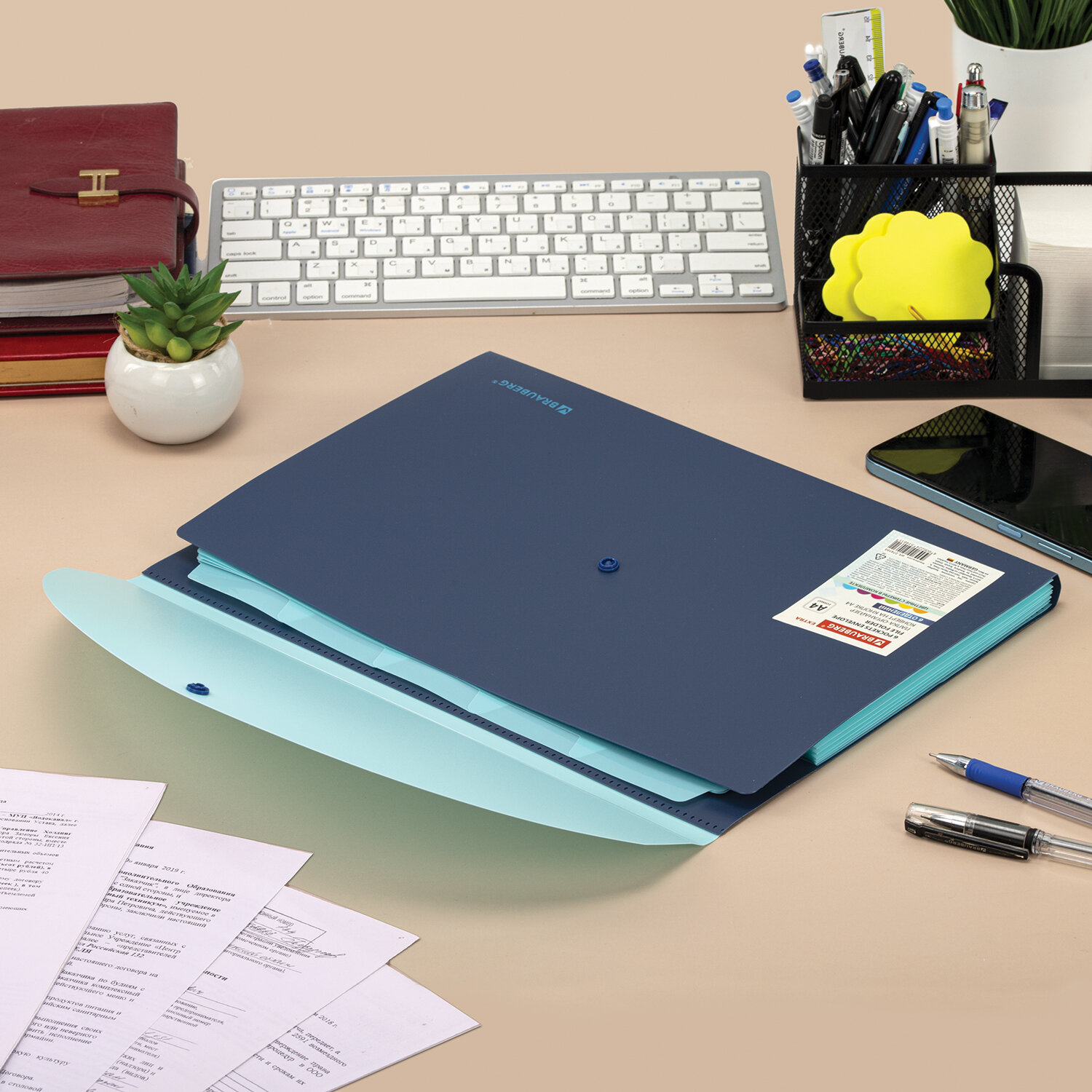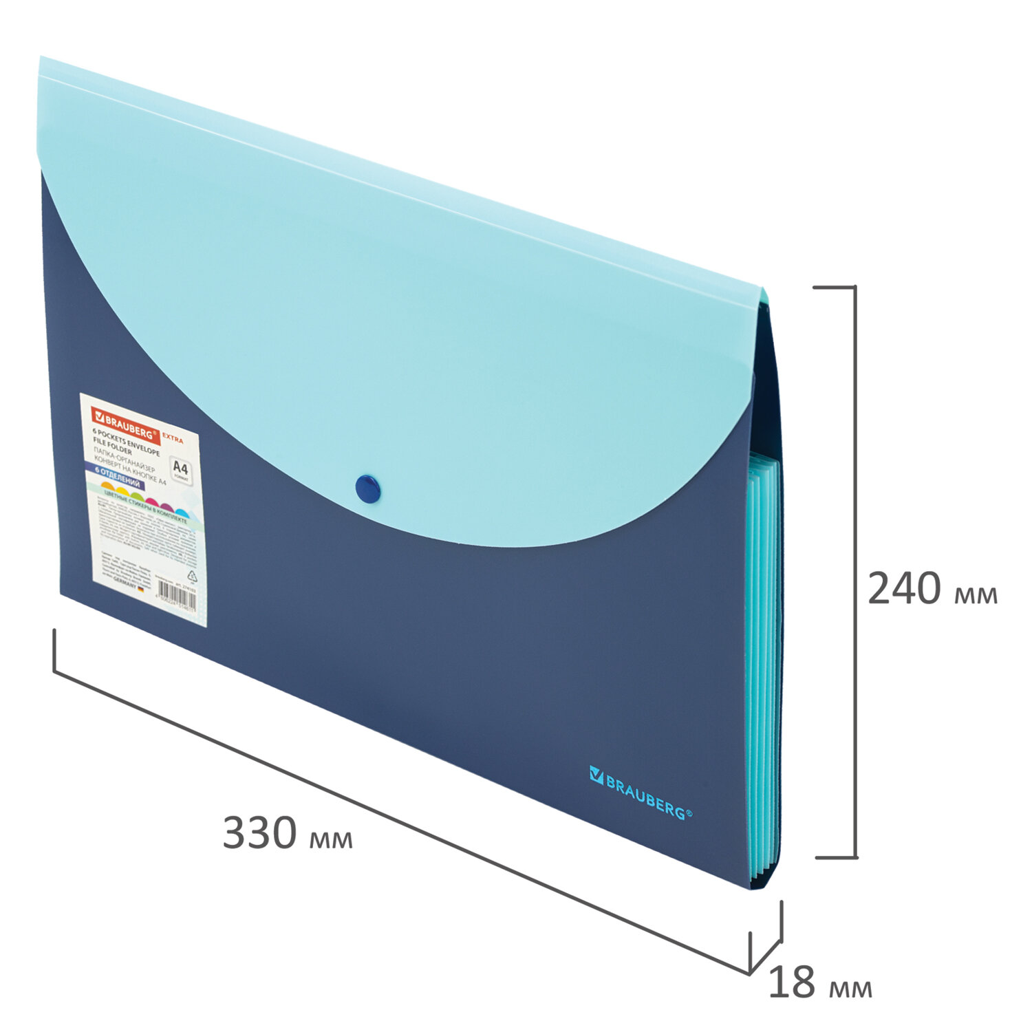 Папка-органайзер конверт на кнопке 6 отделений, BRAUBERG "Extra", A4, синяя с голубым Код товара: 274103 278,12 ₽ Купить Производитель:BRAUBERG Папка-органайзер BRAUBERG "Extra" предназначена для хранения, транспортировки и систематизации ваших документов и ценных бумаг. Благодаря своей компактности и вместительности незаменима в учебе, работе, деловых поездках, командировках и путешествиях. Папка-органайзер изготовлена из качественного пластика солидного синего цвета толщиной 0,5 мм с фактурой "песок", снабжена разделителями голубого цвета. Имеет 6 отделений с ярлыками на разделителях и яркими стикерами (в комплекте), что существенно упрощает процесс поиска нужного документа и позволяет структурировать информацию. Удобный и надежный замок-кнопка дает возможность быстро открывать и закрывать папку, не позволяя содержимому выпасть, и защищает его от влаги, пыли и механических повреждений. Органайзер отлично подойдет для хранения паспортов, СНИЛС, свидетельств о рождении, дипломов, ИНН, офисных документов, школьных тетрадей, рисунков, тетрадей для нот, курсовых работ и многого другого.Производство: КитайФормат: А4Серия: EXTRA_1Количество отделений: 6 шт.Фактура: песокЗастежка: КнопкаКоличество карманов: 0 шт.Толщина материала: 0.5 ммИндексные ярлычки: даВысота: 240 ммШирина: 330 ммГлубина: 18 ммМатериал: полипропиленЦвет: голубой/синийВес: 168 грРазмер упаковки: 2 × 33 × 24.7 смОбъём: 0.0013 м3Промежуточная упаковка: 24 штТранспортная упаковка: 24 штШтрих-код: 4606224514611 Файлы Сертификат-1.jpg Сертификат-2.jpg Сертификат-3.jpg Сертификат-4.jpg Сертификат-5.jpg Сертификат-6.jpg Сертификат-7.jpg Сертификат-8.jpg Сертификат-9.jpg Сертификат-10.jpg Сертификат-11.jpg Сертификат-12.jpg Сертификат-13.jpg Сертификат-14.jpg Сертификат-15.jpg Сертификат-16.jpg Сертификат-17.jpg Сертификат-18.jpg Сертификат-19.jpg Сертификат-20.jpg Сертификат-21.jpg Сертификат-22.jpg Сертификат-23.jpg Сертификат-24.jpg Сертификат-25.jpg Сертификат-26.jpg Сертификат-27.jpg Сертификат-28.jpg