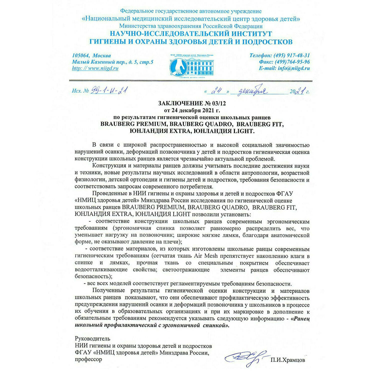 Ранцы BRAUBERG PREMIUM протестированы НИИ гигиены и охраны здоровья детей и подростков ФГАУ "Национальный медицинский исследовательский центр здоровья детей". В рамках проведенных исследований* было установлено, что конструкции и материалы ученических ранцев соответствуют современным эргономическим требованиям и способствуют формированию здоровой осанки у школьников.