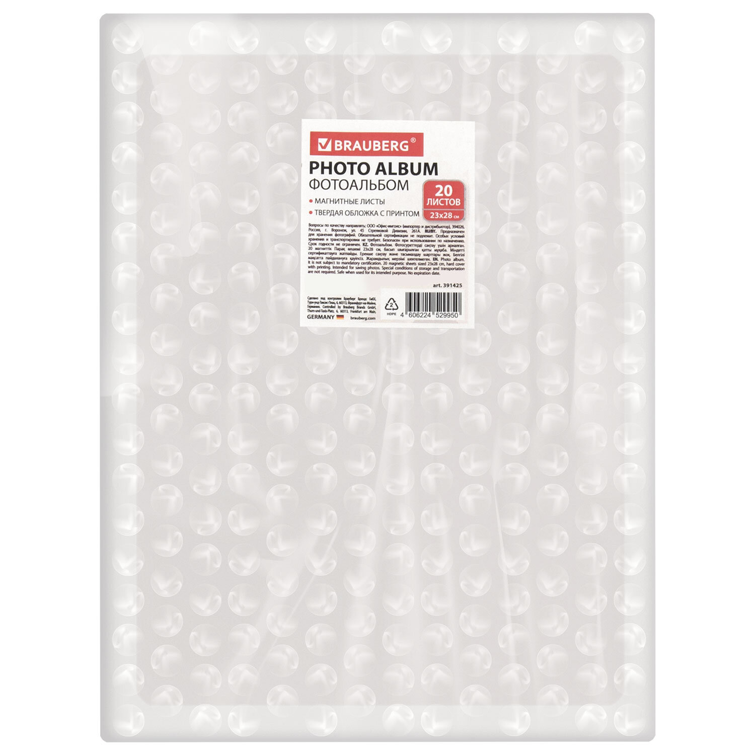 Фотоальбом BRAUBERG "Blossom", на 20 магнитных листов, 23х28 см, твердая обложка, спираль Код товара: 391425 886,8 ₽ Купить Производитель:BRAUBERG Фотоальбом BRAUBERG станет настоящей коллекцией памятных дат и событий, а также отличным подарком. Состоит из 20 магнитных листов размером 23х28 см, что позволяет комбинировать и размещать до 120 фотографий различных форматов: 18х24 см, 10х15 см, 13х18 см. Обложка фотоальбома выполнена в белых и розовых цветах с изображением цветов. Способ крепления страниц – спираль. Размер альбома – 29х25 см. Упакован в термоусадку и дополнительно в воздушно-пузырчатый пакет, который защитит фотоальбом от любых повреждений во время транспортировки.Производство: КитайТип листов: магнитныеМакс. количество фотографий: 120 штРазмер фотографий: 10х15 см, 13х18 см, 18х24 смТип обложки: твердаяБазовый цвет обложки: розовый/нежно-розовый/белыйДизайн: Цветочный принтКоличество листов: 20 шт.Размер листа: 23х28 смСкрепление страниц: спиральЦвет страниц: белыйВысота альбома: 29 смШирина альбома: 25 смШирина корешка: 3 смУпаковка: воздушно-пузырчатый пакетВес: 723 грРазмер упаковки: 3.7 × 29.4 × 27.3 смОбъём: 0.0031 м3Промежуточная упаковка: 12 штТранспортная упаковка: 12 штШтрих-код: 4606224529950 Файлы Сертификат-1.jpg Сертификат-2.jpg Сертификат-3.jpg Сертификат-4.jpg Сертификат-5.jpg Сертификат-6.jpg Сертификат-7.jpg Сертификат-8.jpg Сертификат-9.jpg Сертификат-10.jpg Сертификат-11.jpg Сертификат-12.jpg Сертификат-13.jpg Сертификат-14.jpg Сертификат-15.jpg Сертификат-16.jpg Сертификат-17.jpg Сертификат-18.jpg Сертификат-19.jpg Сертификат-20.jpg Сертификат-21.jpg Сертификат-22.jpg Сертификат-23.jpg Сертификат-24.jpg Сертификат-25.jpg Сертификат-26.jpg