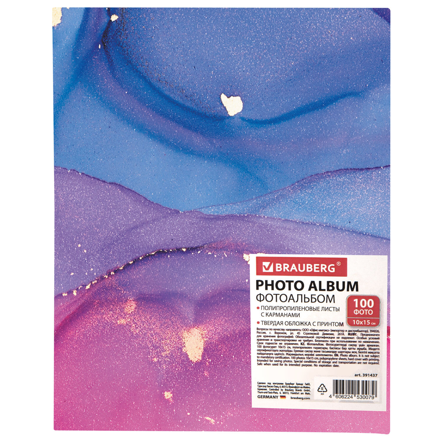 Фотоальбом BRAUBERG "Dreamy marble" на 100 фото 10х15 см, твердая обложка Код товара: 391437 302,33 ₽ Купить Производитель:BRAUBERG Фотоальбом BRAUBERG станет настоящей коллекцией памятных дат и событий, а также отличным подарком. Состоит из 50 полипропиленовых листов размером 12х15,15 см с карманами и вмещает 100 фотографий размером 10х15 см по 2 штуки на странице. Обложка альбома выполнена под мраморный принт, а листы склеены в единый блок. Размер альбома – 13х17 см.Производство: КитайТип листов: полипропиленовые листы с карманамиМакс. количество фотографий: 100 штРазмер фотографий: 10х15 смТип обложки: твердаяБазовый цвет обложки: мраморДизайн: МраморКоличество листов: 50 шт.Размер листа: 12х15,15 смСкрепление страниц: термосваркаЦвет страниц: белыйВысота альбома: 17 смШирина альбома: 13 смШирина корешка: 5 смУпаковка: термоусадочная пленкаВес: 215 грРазмер упаковки: 5.1 × 16.8 × 12.9 смОбъём: 0.001 м3Промежуточная упаковка: 24 штТранспортная упаковка: 24 штШтрих-код: 4606224530079 Файлы Сертификат-1.jpg Сертификат-2.jpg Сертификат-3.jpg Сертификат-4.jpg Сертификат-5.jpg Сертификат-6.jpg Сертификат-7.jpg Сертификат-8.jpg Сертификат-9.jpg Сертификат-10.jpg Сертификат-11.jpg Сертификат-12.jpg Сертификат-13.jpg Сертификат-14.jpg Сертификат-15.jpg Сертификат-16.jpg Сертификат-17.jpg Сертификат-18.jpg Сертификат-19.jpg Сертификат-20.jpg Сертификат-21.jpg Сертификат-22.jpg Сертификат-23.jpg Сертификат-24.jpg Сертификат-25.jpg Сертификат-26.jpg