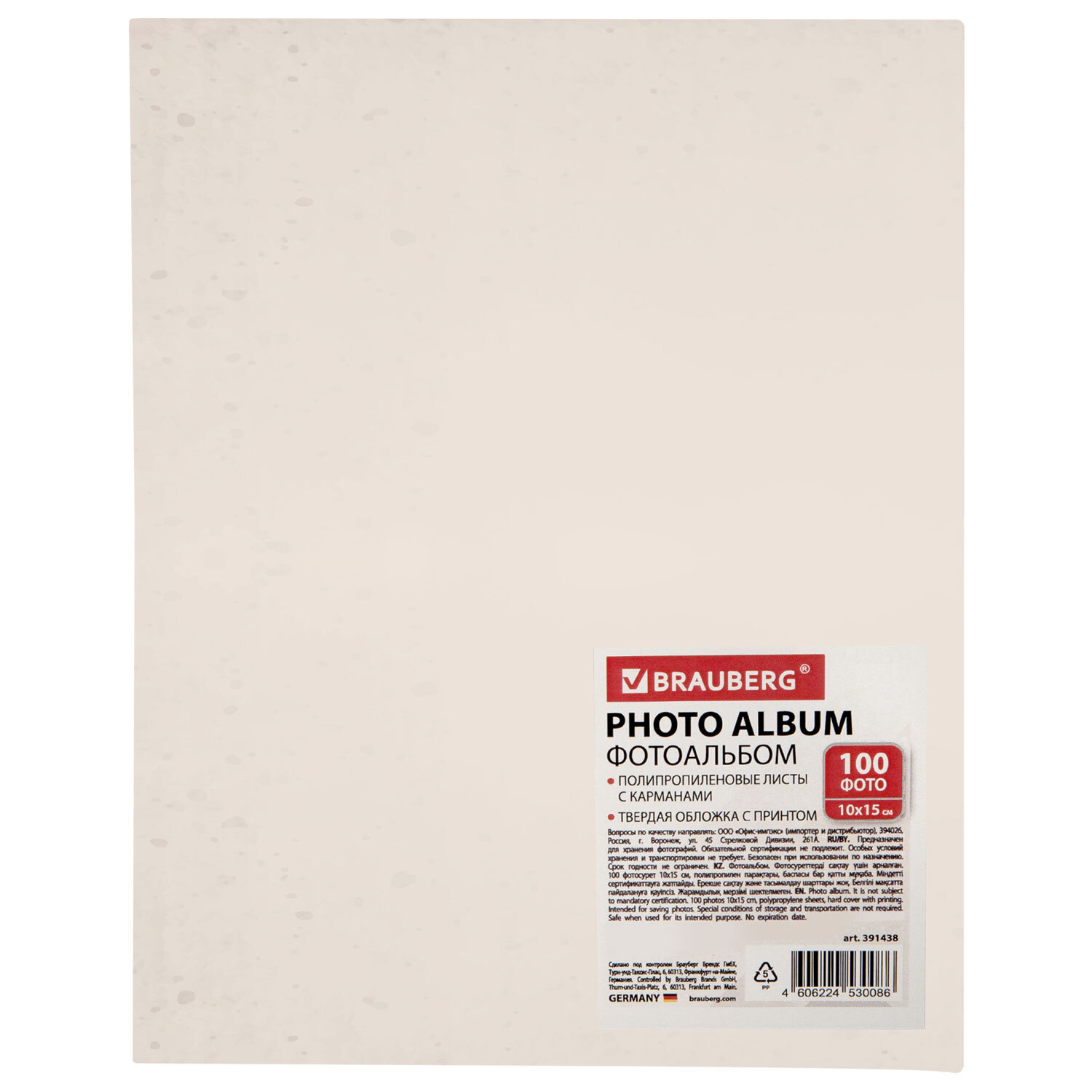 Фотоальбом BRAUBERG "Tender flowers" на 100 фото 10х15 см, твердая обложка Код товара: 391438 302,33 ₽ Купить Производитель:BRAUBERG Фотоальбом BRAUBERG станет настоящей коллекцией памятных дат и событий, а также отличным подарком. Состоит из 50 полипропиленовых листов размером 12х15,15 см с карманами и вмещает 100 фотографий размером 10х15 см по 2 штуки на странице. На обложке фотоальбома изображен цветочный принт, а листы склеены в единый блок. Размер альбома – 13х17 см.Производство: КитайТип листов: полипропиленовые листы с карманамиМакс. количество фотографий: 100 штРазмер фотографий: 10х15 смТип обложки: твердаяБазовый цвет обложки: бежево-розовыйДизайн: Цветочный принтКоличество листов: 50 шт.Размер листа: 12х15,15 смСкрепление страниц: термосваркаЦвет страниц: белыйВысота альбома: 17 смШирина альбома: 13 смШирина корешка: 5 смУпаковка: термоусадочная пленкаВес: 211 грРазмер упаковки: 5.3 × 16.7 × 12.5 смОбъём: 0.001 м3Промежуточная упаковка: 24 штТранспортная упаковка: 24 штШтрих-код: 4606224530086 Файлы Сертификат-1.jpg Сертификат-2.jpg Сертификат-3.jpg Сертификат-4.jpg Сертификат-5.jpg Сертификат-6.jpg Сертификат-7.jpg Сертификат-8.jpg Сертификат-9.jpg Сертификат-10.jpg Сертификат-11.jpg Сертификат-12.jpg Сертификат-13.jpg Сертификат-14.jpg Сертификат-15.jpg Сертификат-16.jpg Сертификат-17.jpg Сертификат-18.jpg Сертификат-19.jpg Сертификат-20.jpg Сертификат-21.jpg Сертификат-22.jpg Сертификат-23.jpg Сертификат-24.jpg Сертификат-25.jpg Сертификат-26.jpg