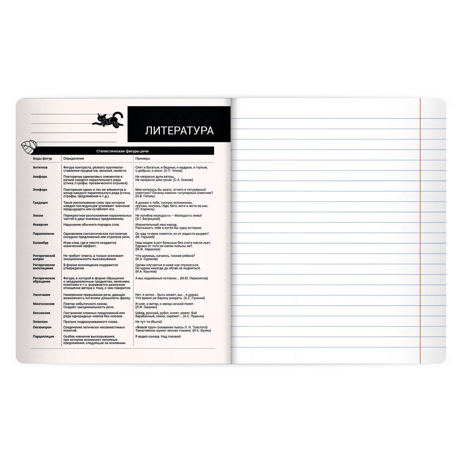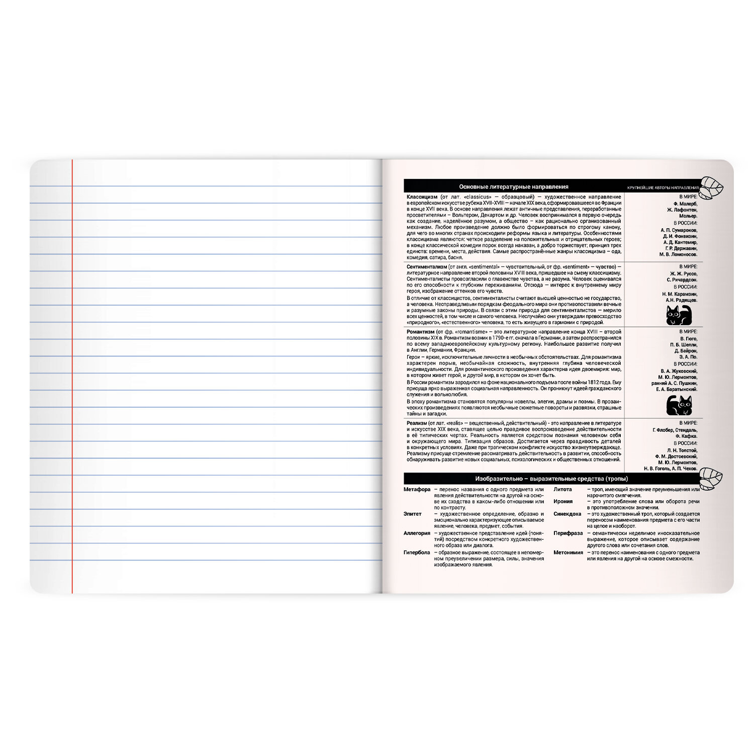 Тетрадь предметная КОТ-НЕПОСЕДА 48 л., пластиковая обложка, ЛИТЕРАТУРА, линия, подсказ, BRAUBERG Код товара: 405535 57,4 ₽ Купить Производитель:BRAUBERG Предметная тетрадь BRAUBERG из серии "КОТ-НЕПОСЕДА" предназначена для учащихся средних и старших классов. Выполнена в стильном и лаконичном дизайне. Тетрадь по литературе формата А5 с двойной обложкой: внешняя выполнена из высококачественного износостойкого прозрачного пластика, внутренняя – из качественной офсетной бумаги. Преимущество таких тетрадей заключается в том, что для сохранения внешнего вида не нужно покупать дополнительную обложку. На подкладных листах содержится справочный материал по предмету. Внутренний блок плотностью 60 г/м2 из офсетной бумаги содержит 48 листов в линию с полями. Белизна блока – 100%. Скрепка надежно соединяет листы между собой.Производство: КитайПредмет: литератураСерия: КОТ-НЕПОСЕДАКоличество листов: 48Формат: А5Линовка блока: линияКрасные поля: даТип скрепления: скобаВнутренний блок: офсетПлотность внутренного блока: 60 г/м2Белизна: 100 %Обложка: пластикДизайн: КОТ-НЕПОСЕДАПлотность обложки: 300 г/м2Тип спецэффектов на обложке: шелкографияСправочный материал: даДлина: 202 ммШирина: 165 ммВес: 120 грРазмер упаковки: 0.5 × 20.4 × 16.5 смОбъём: 0.0002 м3Промежуточная упаковка: 10 штТранспортная упаковка: 80 штШтрих-код: 4606224516141 Файлы Сертификат-1.jpg Сертификат-2.jpg