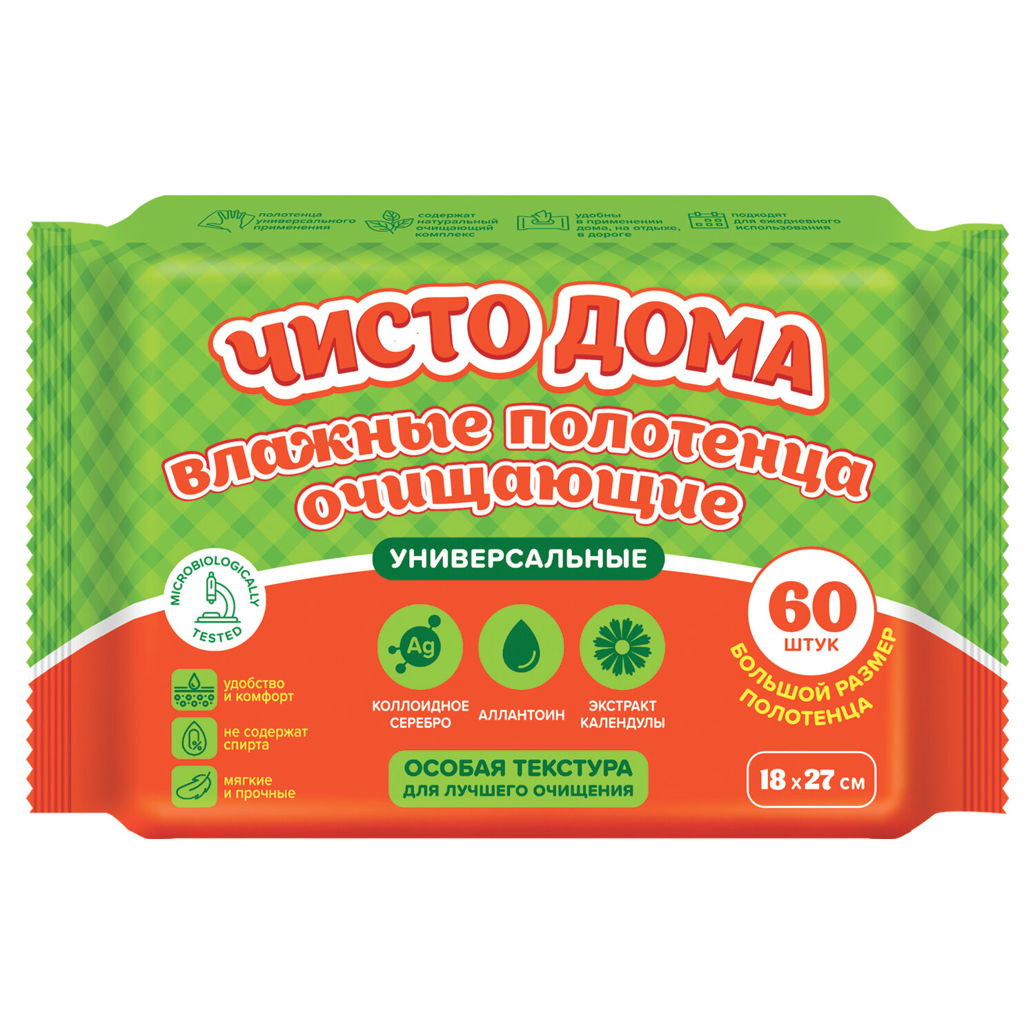 Полотенца влажные хозяйственные "УНИВЕРСАЛЬНЫЕ", 18х27 см, антибак, 60 шт, ЧИСТО ДОМА, ш/к 28433 Код товара: 702933 176,32 ₽ Купить Производитель:ЧИСТО ДОМА Влажные очищающие полотенца Чисто дома большого размера предназначены для мягкого очищения без использования воды и мыла. Используются в различных местах, при первой необходимости и если нет возможности провести полноценный уход. Влажные очищающие полотенца Чисто дома предназначены для бережного очищения кожи и эффективного удаления загрязнений. Благодаря экстракту календулы, входящему в состав, обладают противовоспалительным действием и дарят коже ощущение нежности и увлажнения. Не содержат спирт. Размер салфетки в развернутом виде - 180х270 мм. 60 штук в упаковке. Данный товар - отличный пример соотношения цены и качества.Производство: РоссияПрименение: универсальныеКоличество в упаковке: 60 шт.Особенности: антибактериальныеДлина салфетки: 27 смШирина салфетки: 18 смУпаковка: флоупакСрок годности: 30 месВес: 465 грРазмер упаковки: 25 × 13 × 4.5 смОбъём: 0.0013 м3Промежуточная упаковка: 18 штТранспортная упаковка: 18 штШтрих-код: 4610080728433