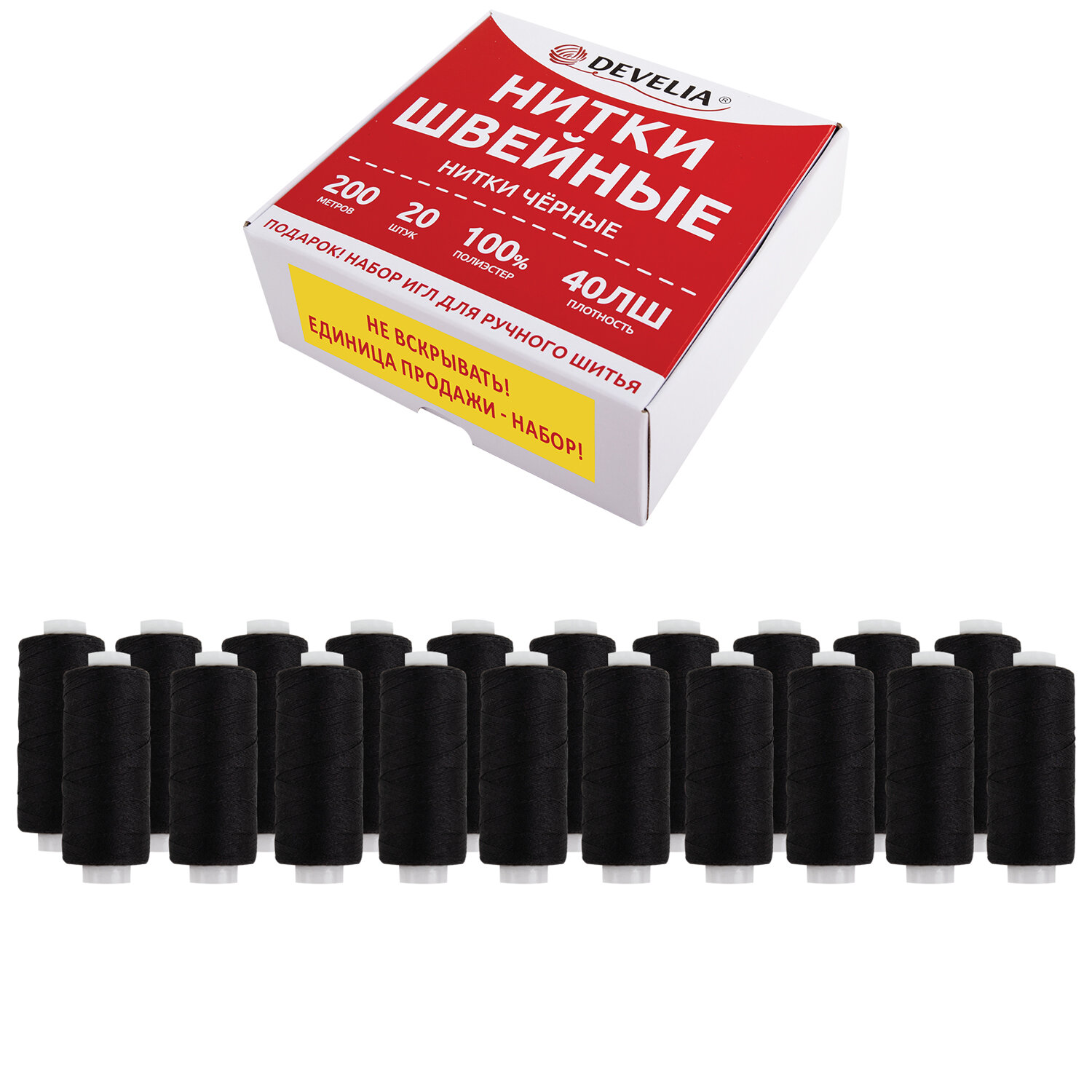 Нитки швейные 40 ЛШ, 200 м, полиэстер, НАБОР 20 шт., черные, в ПОДАРОК иглы, DEVELIA (Девелиа) Код товара: 609622 261,33 ₽ Купить Производитель:DEVELIA Набор ниток DEVELIA характеризуется высоким качеством исполнения. Нитки в наборе применяются для всех видов одежды, обладают отличными пошивочными свойствами и подходят как для ручного шитья, так и для всех видов швейных машин. В набор входит 20 катушек 40 ЛШ черного цвета в намотке 200 м и набор игл для ручного шитья (15 штук). Поставляются в картонной коробке. Материал ниток – лавсан штапельный толщиной 40 ЛШ. Нитки штапельные (ЛШ) изготавливаются из качественного штапельного полиэфирного волокна. По структуре и внешнему виду они близки к хлопчатобумажным, но их отличает большая прочность, меньшая усадка. Они мягче и более устойчивы к воздействию высоких температур. Штапельная нитка универсальна в применении. Она не линяет, не усаживается и не боится влаги. Учитывая это, такие нитки можно использовать для изделий из тонких и средних костюмных материалов, из джинсовой ткани, трикотажа и деликатных тонких тканей. Нитки устойчивы к кислоте, щелочи, органическим растворителям, плесени, химической и мокрой стирке. Благодаря гладкой и однородной структуре нитки обладают отличными пошивочными свойствами, подходят для всех типов автоматических швейных машин, обеспечивают качественный и изящный стежок как на ткани, так и на трикотажном полотне. Нитки выпускаются на паковке современного вида – малый конус, чрезвычайно удобной для использования как на обычных, так и на портативных промышленных машинах. Набор ниток DEVELIA станет незаменимым помощником для каждой хозяйки, которая занимается пошивом на любительском уровне. Также нитки пригодятся и в бытовых целях: подшить шторы или джинсы/брюки, отремонтировать одежду или подогнать ее по размеру и пр. Кроме ремонта одежды нитки DEVELIA отлично подойдут для других видов рукоделия – шитья аппликаций, пришивания бисера, бусин и иной фурнитуры, плетения, создания браслетов и украшений, пришивания бирок, создания мягких игрушек. Набор ниток DEVELIA можно взять с собой в дорогу, в состав набора включена вся необходимая повседневная (и не только) цветовая гамма. Цвета ниток в наборе могут незначительно отличаться от представленных на фото.Производство: КитайТип ниток: ЛШСерия: Швейные Количество цветов: 1Количество в комплекте: 20 шт.Длина намотки: 200 мОсобенности: армированныеМатериал ниток: 100% полиэстерКомплектация: иглыЦвет: черныйВес: 275 грРазмер упаковки: 5.1 × 13.5 × 12.6 смОбъём: 0.001 м3Промежуточная упаковка: 50 штТранспортная упаковка: 50 штШтрих-код: 4606224451404 Файлы Сертификат-1.jpg Сертификат-2.jpg Сертификат-3.jpg Сертификат-4.jpg Сертификат-5.jpg