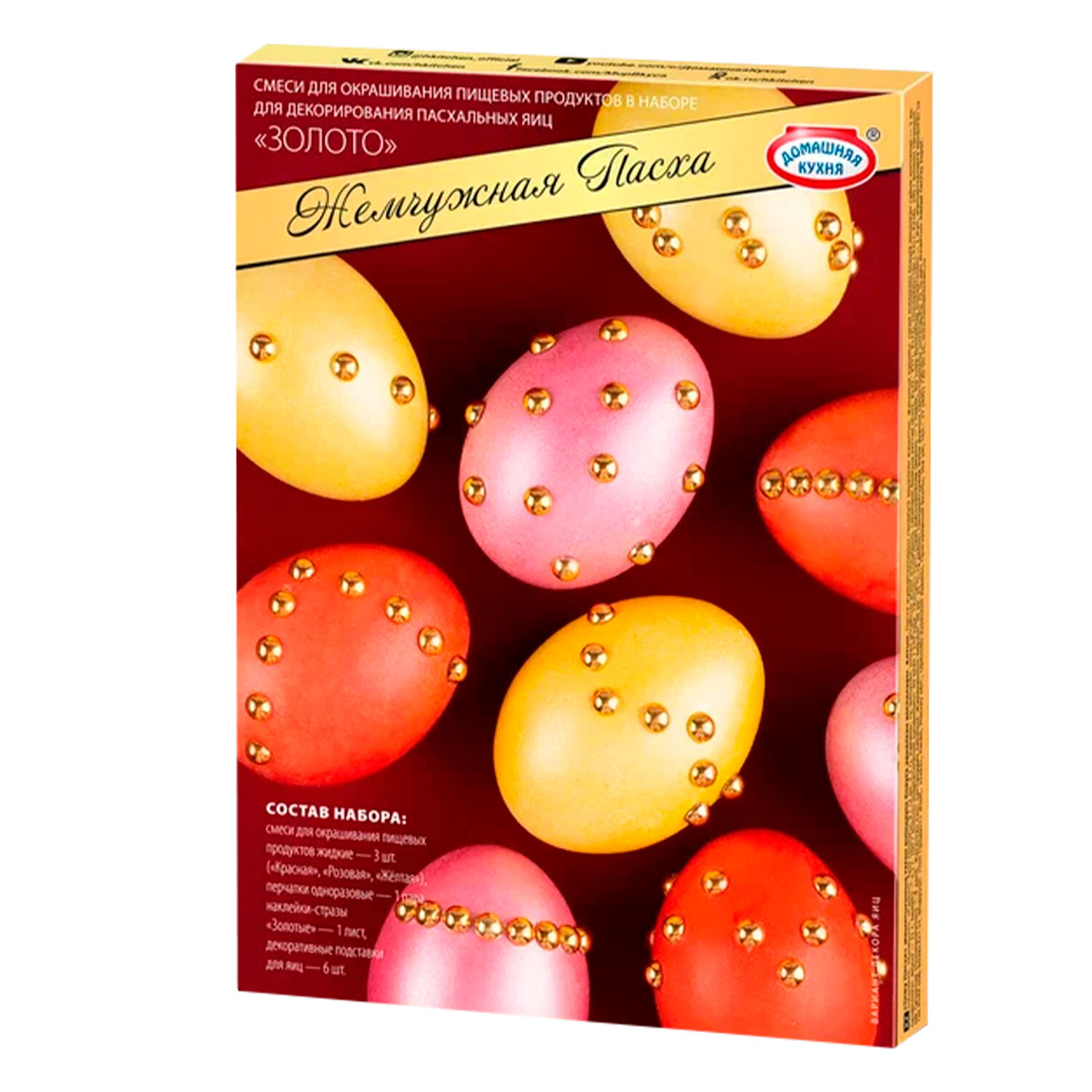 Красители пасхальные для яиц ЖИДКИЕ "Жемчужная Пасха", 3 цвета в наборе, наклейки-стразы, ассорти, 81895 Код товара: 592673 156,93 ₽ Купить Производитель:ДОМАШНЯЯ КУХНЯ Яркие моменты праздника с пищевыми красителями для яиц! Дайте волю своему творчеству и добавьте ярких красок! Красители пасхальные пищевые для окрашивания яиц жидкие, упакованы в колорбокс. В набор входят: - смеси для окрашивания пищевых продуктов жидкие в 3 цветах (3 шт. х 3 г.); - "Жемчужные" наклейки-стразы (акрил) – 1 лист; - перчатки одноразовые (полиэтилен) – 1 пара; - декоративные подставки для яиц (полипропилен) – 6 шт. Яркие и насыщенные цвета, разнообразие оттенков, легкость в использовании! Идеально для всей семьи: окрашивание яиц – это увлекательное занятие, которое объединяет близких. Создавайте незабываемые моменты вместе, превращая процесс в веселое и креативное времяпрепровождение.Производство: РоссияТип товара: красители для яицВид: жидкийВес: 9 гЦвет: ассортиДополнительный декор: даКоличество в комплекте: 1 шт.Упаковка: колорбоксСрок годности: 36 месРазмер упаковки: 13.2 × 18.4 × 1.9 смОбъём: 0.0005 м3Промежуточная упаковка: 9 штТранспортная упаковка: 27 штШтрих-код: 4606134060307 Сертификат-1.jpg Сертификат-2.jpg