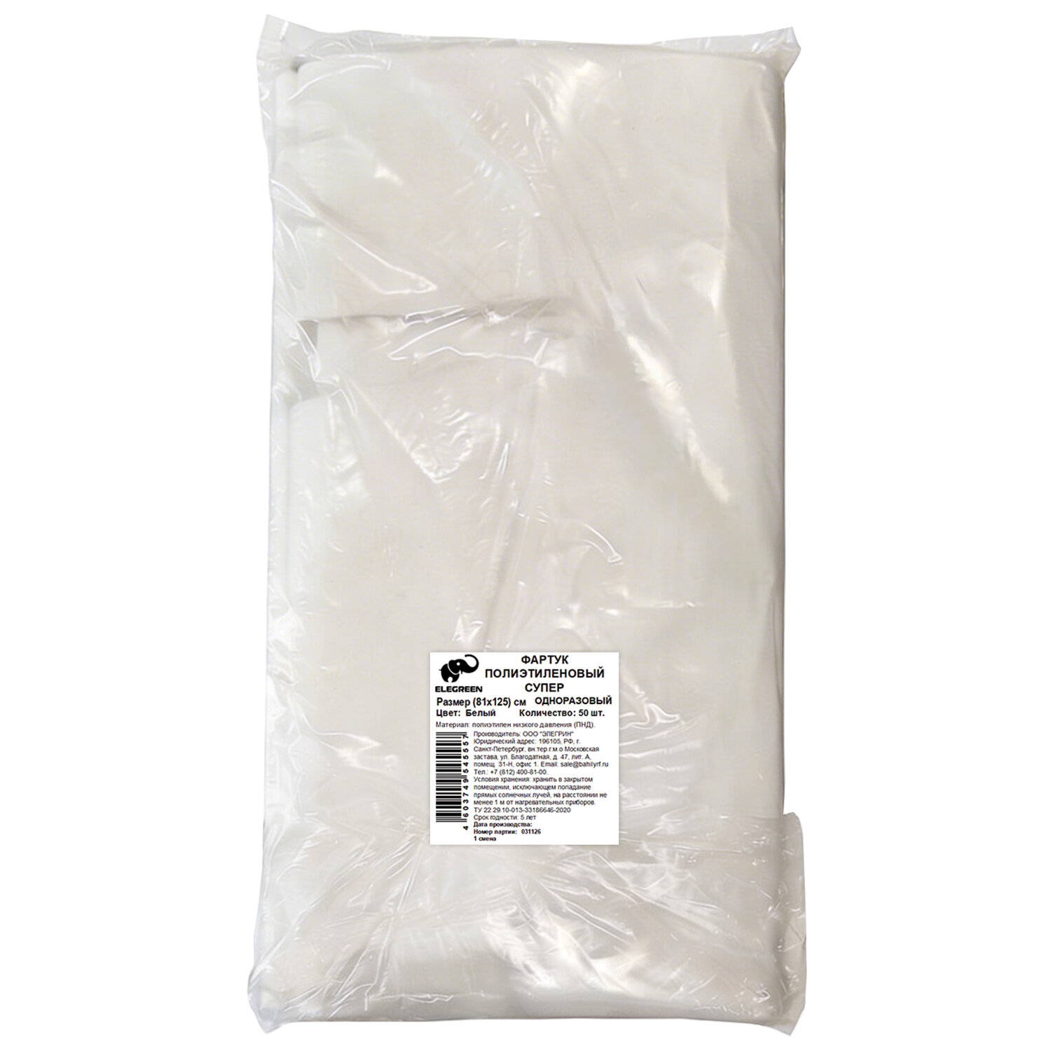 Фартуки полиэтиленовые, КОМПЛЕКТ 50 шт., одноразовые, СУПЕР, 81х125 см, 25 мкм, ELEGREEN Код товара: 611037 499,5 ₽ Купить Производитель:ELEGREEN Фартук одноразовый используется для защиты формы и кожи персонала лечебно-оздоровительных и медицинских учреждений, салонов красоты, работников сферы общественного питания и лабораторий. Фартук полиэтиленовый отлично защищает от загрязнений, не пропускает влагу. Одноразовый фартук легко раскрывается и надевается, при этом не ощущается при ношении. Подходит для многих сфер работы, утилизируется после использования. Плотность – 25 мкм. Размер: 81х125 см. Цвет – белый. Кол-во в упаковке: 50 штук.Производство: РоссияМатериал: полиэтиленДлина: 125 смШирина (без завязок): 81 смПлотность : 25 мкмОдноразовый: даКоличество в комплекте: 50 шт.Соответствует требованиям ГОСТа: нетЦвет: белыйУпаковка: пакетВес: 855 грРазмер упаковки: 2.7 × 40.8 × 22 смОбъём: 0.002 м3Промежуточная упаковка: 10 штТранспортная упаковка: 10 штШтрих-код: 4603749545557 Файлы Сертификат-1.jpg Сертификат-2.jpg Сертификат-3.jpg Сертификат-4.jpg Сертификат-5.jpg