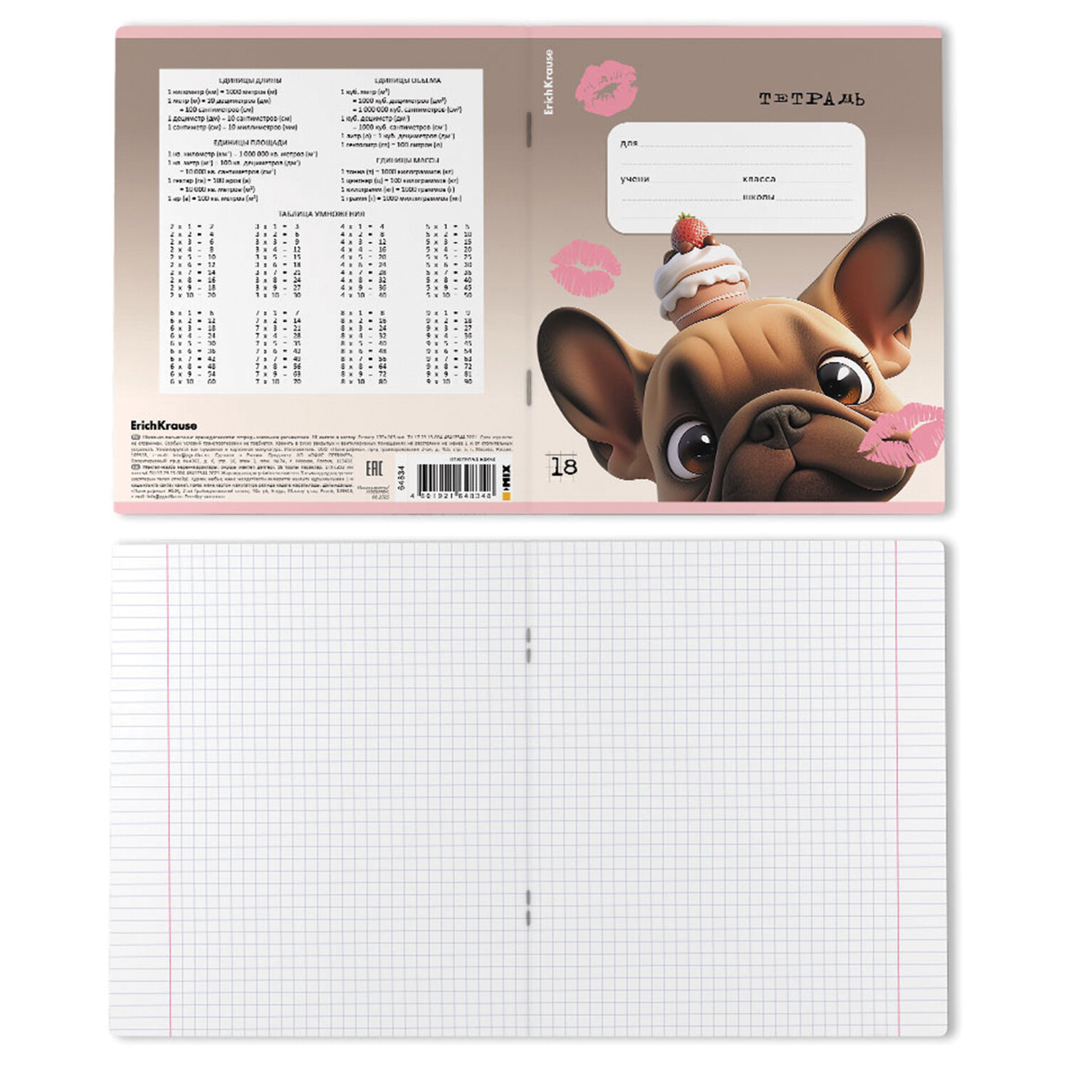 Тетрадь 18л. ErichKrause клетка, выборочный УФ-лак, Frenchie (микс в спайке) Код товара: 107795 40,68 ₽ Купить Производитель:ERICH KRAUSE Тетрадь школьная ученическая Erich Krause с ярким принтом на обложке обеспечит настрой на учебу. Подходит для всех видов пишущих принадлежностей, включая гелевые, капиллярные и перьевые ручки Тетрадь школьная ученическая формата А5. Обложка из высококачественного мелованного картона плотностью 170 г/м2. Отделка обложки - выборочный УФ-лак. В блоке 18 листов в клетку с полями. Бумага офсетная плотностью 60 г/м2. Цвет линовки - синий. Скругленные уголки обложки и блока. Тип скрепления - скоба. Тетради разного дизайна упакованы в термоусадочную пленку по 10 штук.Производство: РоссияЛиновка блока: клеткаКоличество листов: 18Обложка: мелованный картонФормат: А5Наличие полей: даТип скрепления: скобаСерия: Тетради обложка пластик Erich Krause 12-24 л.Дизайн: FrenchieВнутренний блок: офсетПлотность внутреннего блока: 60 г/м2Белизна: 100 %Тип спецэффектов на обложке: выборочный лакКоличество дизайнов в минимальной упаковке: 5 шт.Количество дизайнов в транспортной упаковке: 5 шт.Длина: 203 ммШирина: 170 ммВес: 52 грРазмер упаковки: 0.3 × 20.4 × 16.9 смОбъём: 0.0001 м3Промежуточная упаковка: 10 штТранспортная упаковка: 200 штШтрих-код: 4601921648348 Файлы