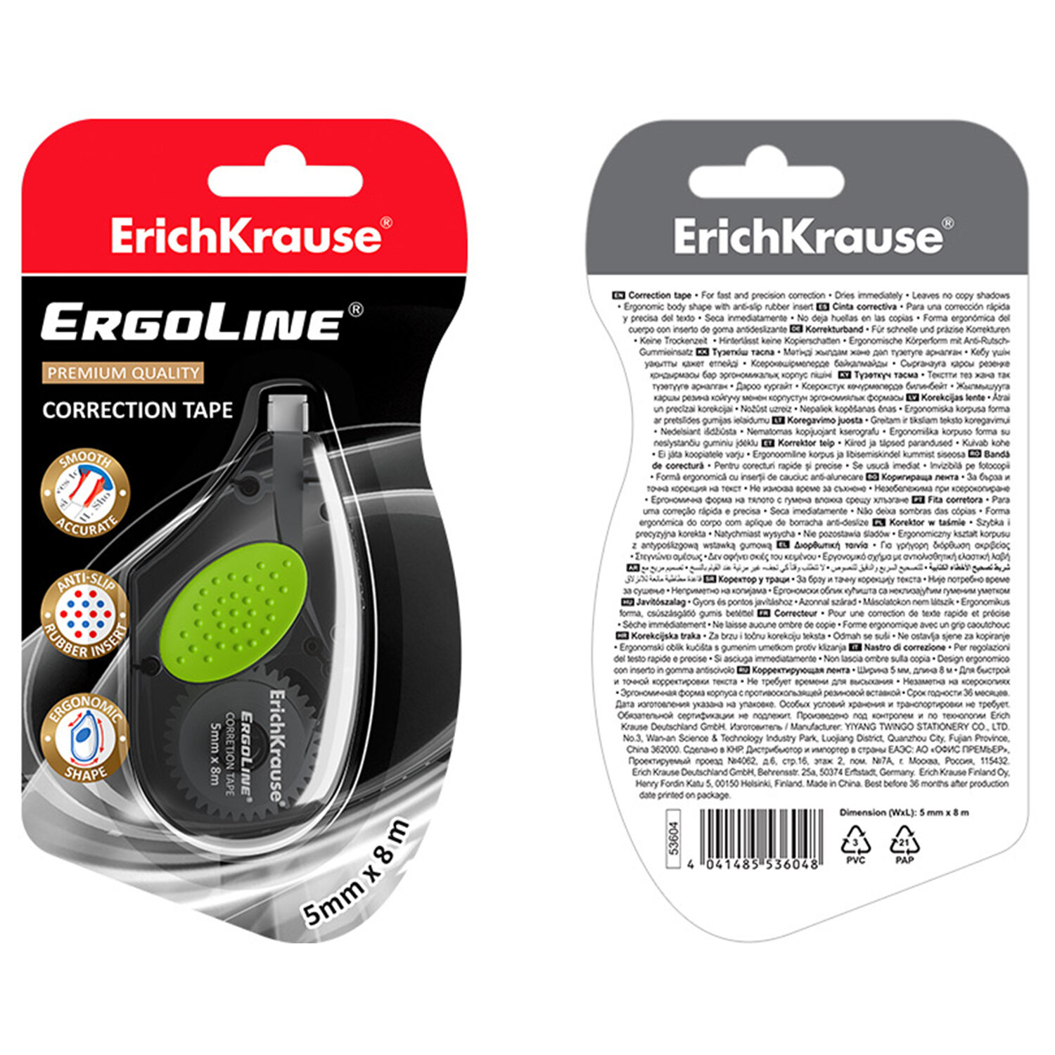 Корректирующая лента ERICH KRAUSE "ErgoLine", с резиновой вставкой, 5 мм х 8 м, серый, 5360 Код товара: 274869 230,25 ₽ Купить Производитель:ERICH KRAUSE Корректирующая лента ERICH KRAUSE "ErgoLine" с эргономичной формой корпуса и противоскользящей резиновой вставкой. Цвет – серый. Длина ленты – 8 м. Ширина ленты – 5 мм. Идеальна для аккуратного и быстрого исправления строчного текста. Показывает отличный результат на всех типах и цветах чернил. На основе растворителя. Не требует времени для высыхания и позволяет сразу писать поверх корректировки.Производство: КитайШирина ленты: 5 ммДлина ленты: 8 мСерия: ErgoLine®Количество в комплекте: 1 шт.Цвет корпуса: серый/зеленыйУпаковка: блистер с европодвесомСрок годности: 36 месВес: 32 грРазмер упаковки: 2.1 × 15.9 × 8.1 смОбъём: 0.0002 м3Промежуточная упаковка: 24 штТранспортная упаковка: 288 штШтрих-код: 4041485536048 Файлы Сертификат-1.jpg Сертификат-2.jpg Сертификат-3.jpg Сертификат-4.jpg Сертификат-5.jpg Сертификат-6.jpg Сертификат-7.jpg Сертификат-8.jpg Сертификат-9.jpg Сертификат-10.jpg Сертификат-11.jpg Сертификат-12.jpg Сертификат-13.jpg Сертификат-14.jpg Сертификат-15.jpg Сертификат-16.jpg Сертификат-17.jpg Сертификат-18.jpg Сертификат-19.jpg Сертификат-20.jpg Сертификат-21.jpg Сертификат-22.jpg Сертификат-23.jpg Сертификат-24.jpg