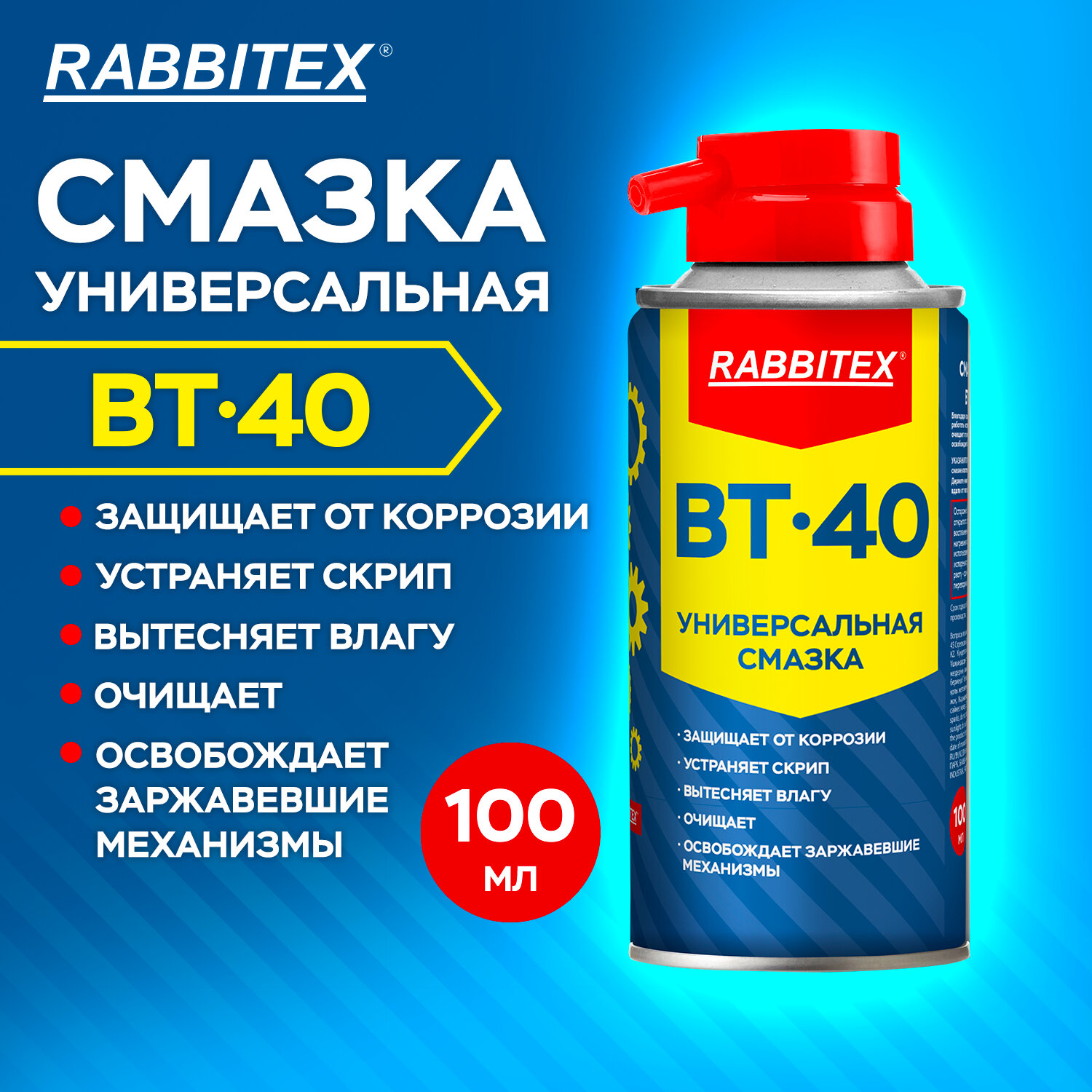 Смазка универсальная проникающая BT-40 (аналог WD-40) 100 мл, аэрозоль с трубочкой, RABBITEX Код товара: 700295 80,38 ₽ Купить Производитель:FORMIX Смазка RABBITEX BT-40 - это ваш надежный помощник дома, в гараже, на производстве и в дороге. Этот универсальный аэрозоль решает сразу 5 задач: смазывает, защищает, очищает, вытесняет влагу и устраняет коррозию. Один флакон - десяток применений! Многофункциональная проникающая смазка RABBITEX BT-40 - это универсальное средство аэрозольного типа, предназначенное для защиты от коррозии, смазывания, вытеснения влаги и очистки металлических поверхностей. Благодаря высокой проникающей способности "вэтэшка" эффективно ослабляет заржавевшие и заклинившие соединения, облегчает демонтаж, устраняет скрипы и предотвращает дальнейшее окисление. Область применения: - автомобильная промышленность - бытовое и промышленное обслуживание - строительство и ремонт - электромонтаж - механические мастерские Почему выбирают RABBITEX BT-40? 1. Работает при любых погодных условиях 2. Не оставляет жирного налета 3. Удобный аэрозоль - быстро, точно, без лишнего расхода 4. Безопасен для большинства пластиков и резины Применение: Встряхните баллон. Нанесите средство с небольшого расстояния на обрабатываемую поверхность (для более точного нанесения используйте трубочку). Дайте смазке впитаться. Для большего эффекта - не вытирайте. Условия хранения: в сухом, прохладном и хорошо проветриваемом помещении, вдали от источников огня и прямых солнечных лучей. Объем: 100 млПроизводство: КитайТип: смазка универсальнаяСерия: BT-40Объем: 100 млЭффект: вытесняет влагу, защищает от коррозии, смазывает механизмыДозатор: даФорма выпуска: аэрозольСрок годности: 84 месВес: 127 грРазмер упаковки: 5.2 × 5.2 × 10 смОбъём: 0.0004 м3Промежуточная упаковка: 48 штТранспортная упаковка: 48 штШтрих-код: 4606224472911
