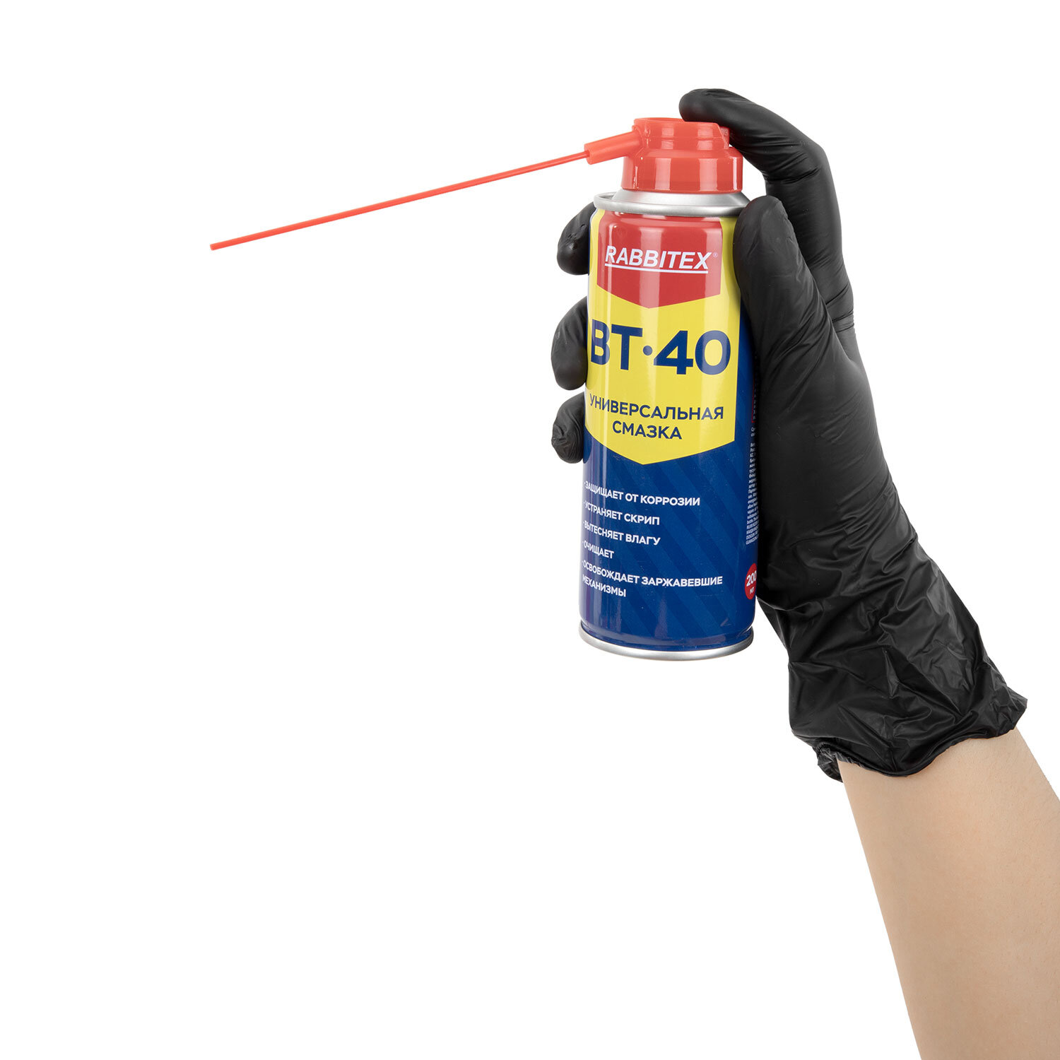 Смазка универсальная проникающая BT-40 (аналог WD-40) 200 мл, аэрозоль с трубочкой, RABBITEX (РАББИТЕКС) Код товара: 700296 217,03 ₽ Купить Производитель:RABBITEX Смазка RABBITEX BT-40 – это ваш надежный помощник дома, в гараже, на производстве и в дороге. Этот универсальный аэрозоль решает сразу 5 задач: смазывает, защищает, очищает, вытесняет влагу и устраняет коррозию. Один флакон – десяток применений! Многофункциональная проникающая смазка RABBITEX BT-40 – это универсальное средство аэрозольного типа, предназначенное для защиты от коррозии, смазывания, вытеснения влаги и очистки металлических поверхностей. Благодаря высокой проникающей способности эффективно ослабляет заржавевшие и заклинившие соединения, облегчает демонтаж, устраняет скрипы и предотвращает дальнейшее окисление. Область применения: - автомобильная промышленность, - бытовое и промышленное обслуживание, - строительство и ремонт, - электромонтаж, - механические мастерские. Почему выбирают RABBITEX BT-40? 1. Работает при любых погодных условиях. 2. Не оставляет жирного налета. 3. Удобный аэрозоль – быстро, точно, без лишнего расхода. 4. Безопасен для большинства пластиков и резины. Применение: встряхните баллон. Нанесите средство с небольшого расстояния на обрабатываемую поверхность (для более точного нанесения используйте трубочку). Дайте смазке впитаться. Для большего эффекта – не вытирайте. Рекомендуется использовать при температуре от -20 до +45 °С. Условия хранения и транспортировки: в сухом, прохладном и хорошо проветриваемом помещении, вдали от источников огня и прямых солнечных лучей при температуре от +5 до +45 °С. Объем: 200 мл.Производство: КитайТип: смазка универсальнаяСерия: BT-40Объем: 200 млЭффект: вытесняет влагу, защищает от коррозии, смазывает механизмыДозатор: даФорма выпуска: аэрозольСрок годности: 84 месВес: 220 грРазмер упаковки: 5.3 × 15.1 × 5.3 смОбъём: 0.0006 м3Промежуточная упаковка: 24 штТранспортная упаковка: 24 штШтрих-код: 4606224472928 Файлы Сертификат-1.jpg