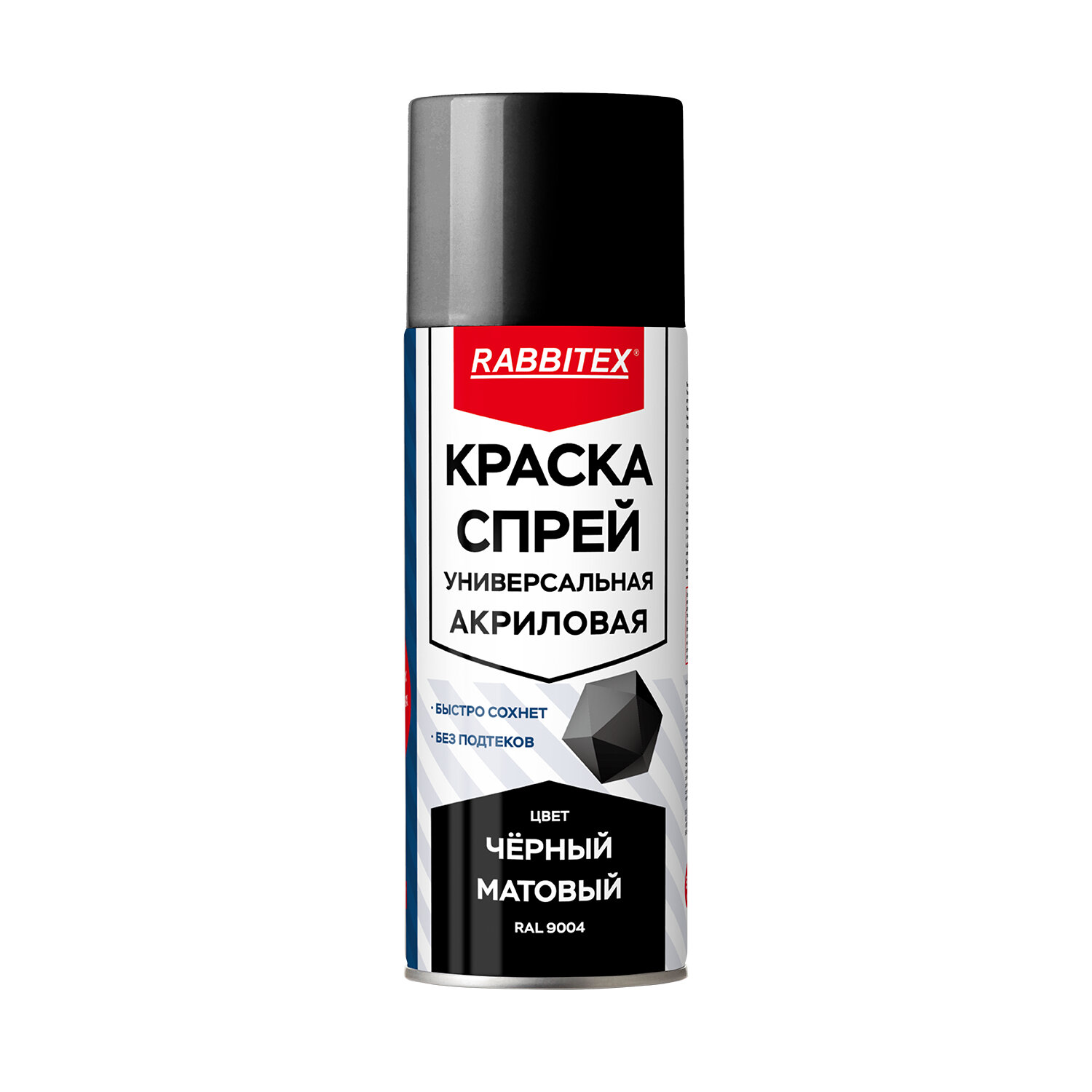 Краска-спрей акриловая универсальная черная матовая RAL 9004, 520 мл, нетто-вес 265 грамм, RABBITEX Код товара: 700300 134,92 ₽ Купить Производитель:FORMIX Краска-спрей акриловая RABBITEX предназначена для качественного окрашивания различных деталей из пластика, металла, дерева и других материалов. Она обеспечивает устойчивое и равномерное покрытие, стойкое ко внешним воздействиям. Краска-спрей акриловая универсальная RABBITEX обладает рядом преимуществ благодаря своему составу. Она быстро сохнет, образует плотное и долгосрочное покрытие, сохраняет насыщенность цвета и подходит как для профессионального так и для домашнего использования. Полное покрытие и ровный цвет достигается в 2 слоя. Равномерно распыляется и не растекается по поверхности. Легко наносится в труднодоступных местах. Способ применения: 1. Защитите поверхности, не подлежащие окрашиванию. 2. Окрашиваемую поверхность очистите от грязи, ржавчины, краски. Обезжирьте и высушите. 3. Встряхните баллон в течении 1-3 минут пока шарики внутри не начнут свободно перемещаться. 4. Нанесите слой краски с расстояния 15-25 см. Интервал нанесения между слоями 5-15 минут. Условия хранения: в сухом, прохладном и хорошо проветриваемом помещении, вдали от источников огня и прямых солнечных лучей. Цвет: черный матовый RAL 9004 Объем: 520 млПроизводство: КитайТип: краскаМесто применения: на улице и внутри помещенияЦвет: черныйВид покрытия: матовоеОбъем/Вес: 520 мл/гОснова: акриловаяЦвет RAL: 9004Влагостойкость: даНазначение: универсальноеСрок годности: 84 месРазмер упаковки: 6.5 × 6.5 × 15.8 смОбъём: 0.001 м3Промежуточная упаковка: 12 штТранспортная упаковка: 12 штШтрих-код: 4606224472966